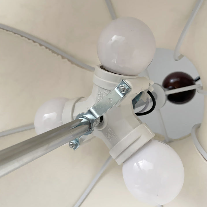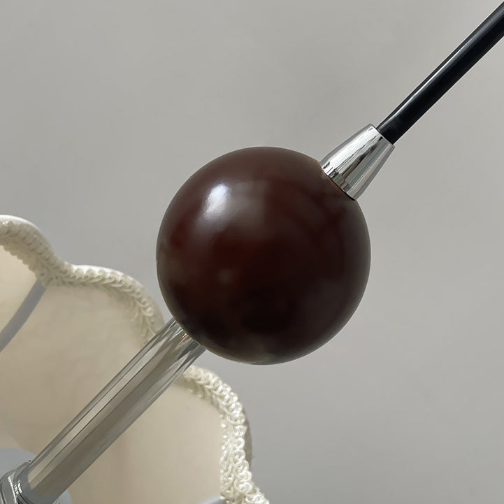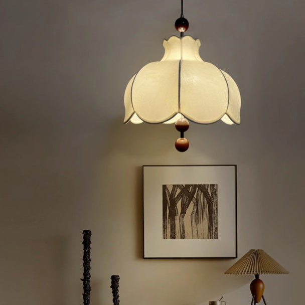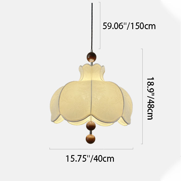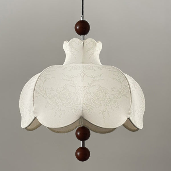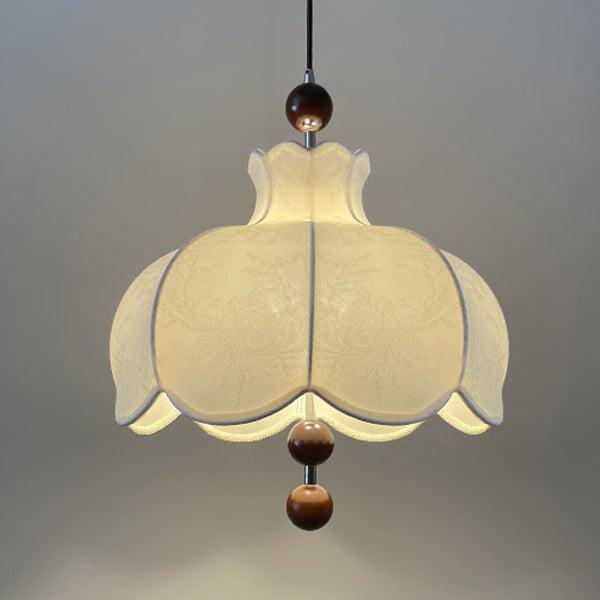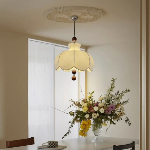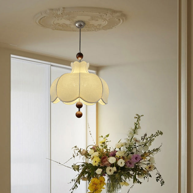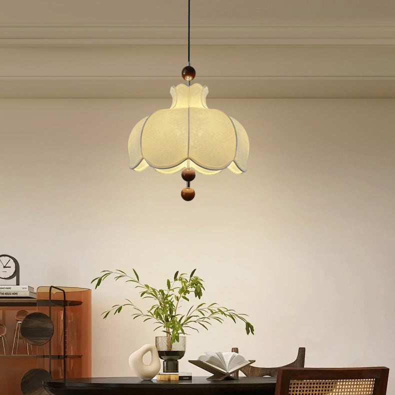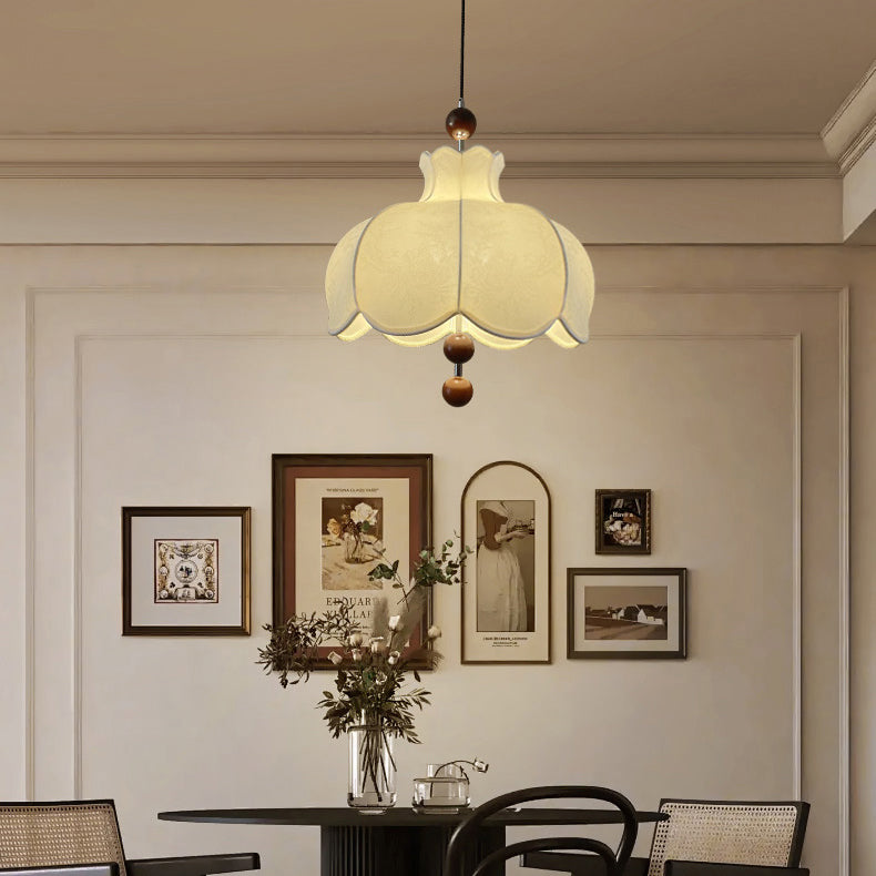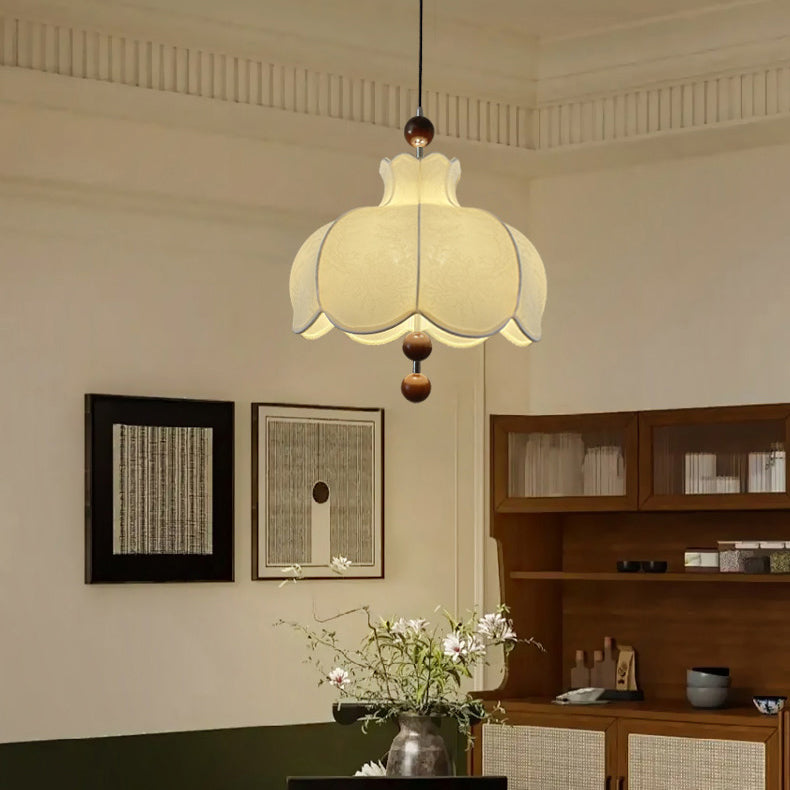 Traditional French Round Wavy Edge Fabric Shade Solid Wood 3-Light Pendant Light For Living Room