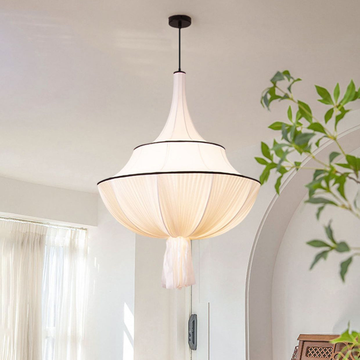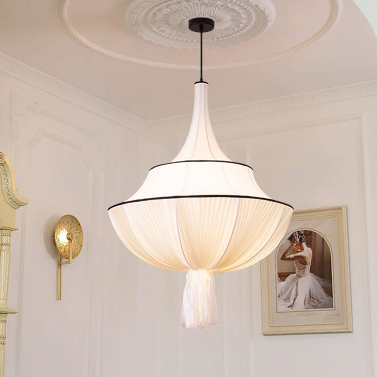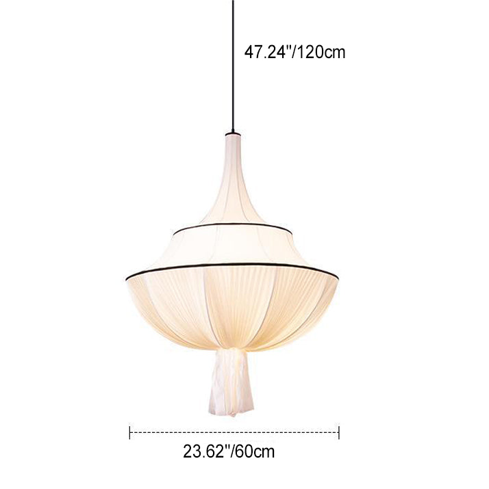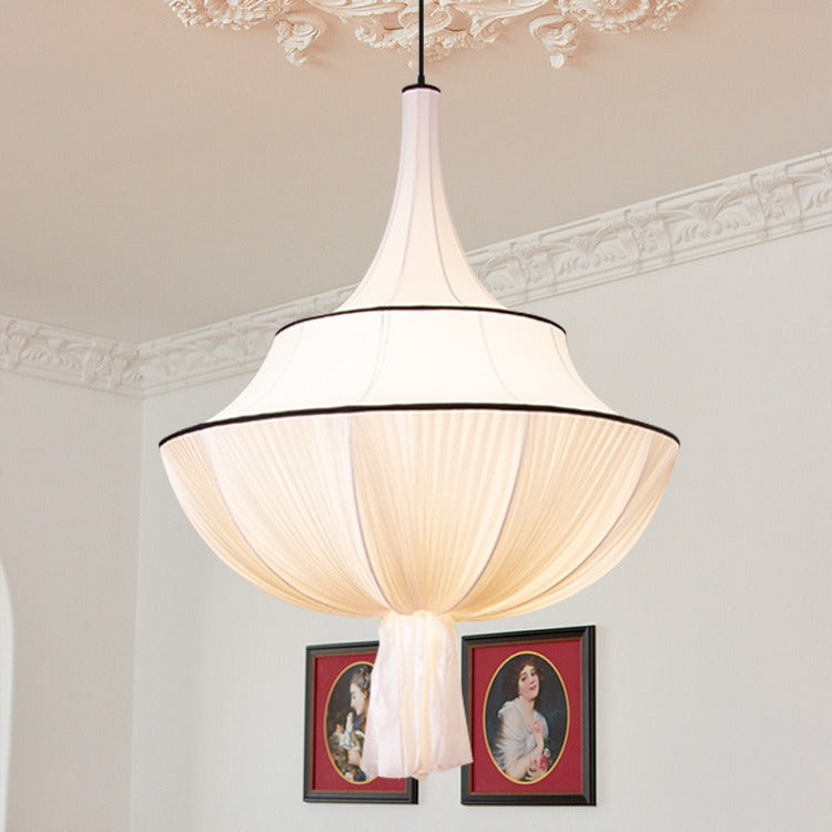 Traditional French Semi-Circular Tower Hardware Fabric 1-Light Pendant Light For Living Room