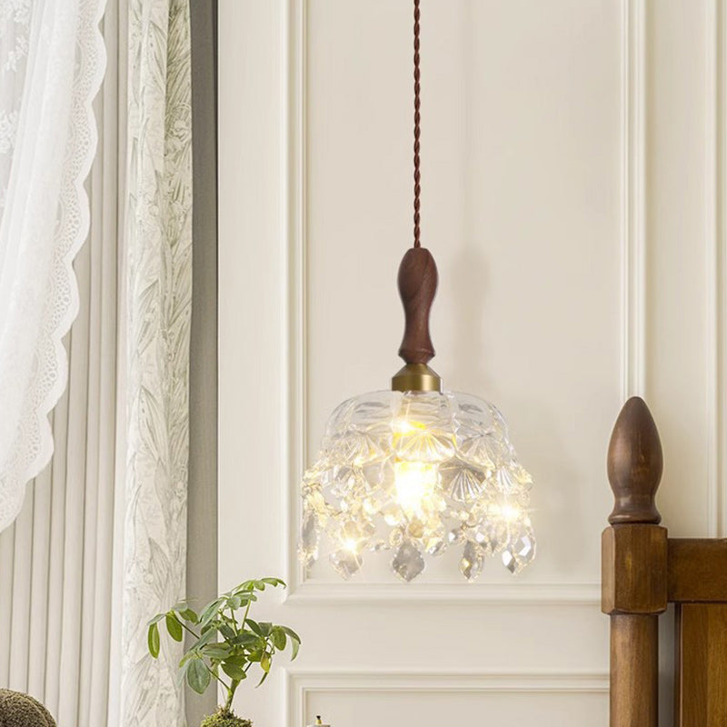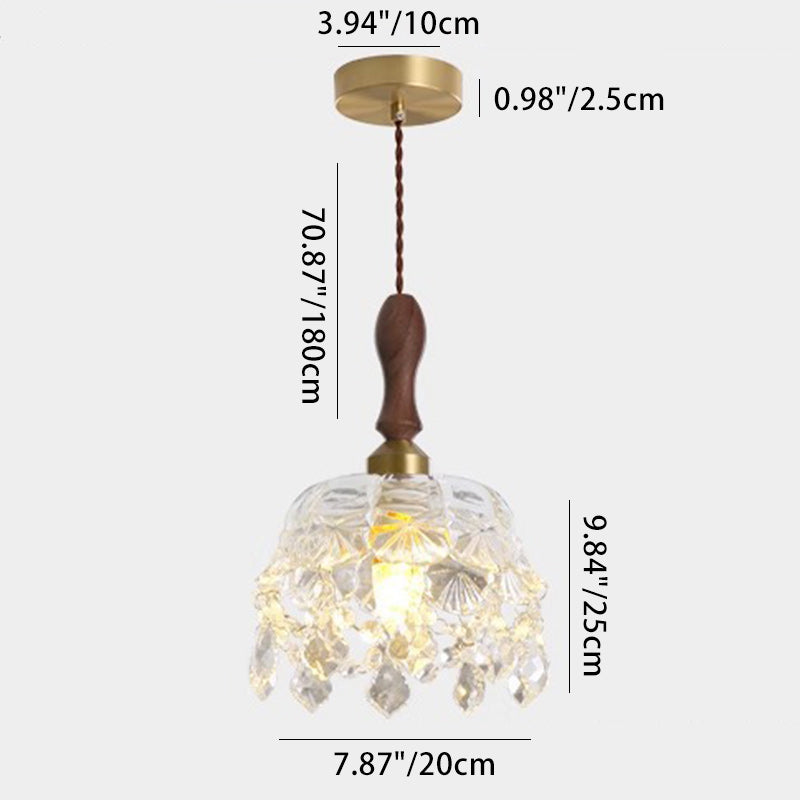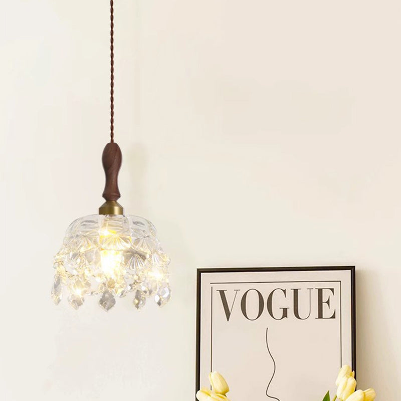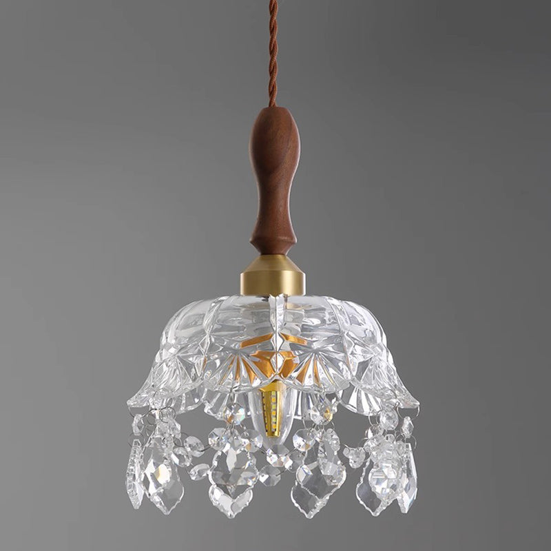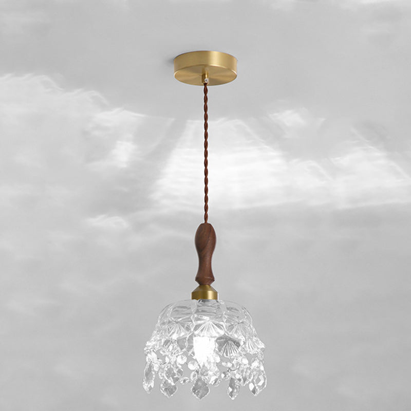 Traditional French Teardrop Copper Wood Glass 1-Light Pendant Light For Living Room