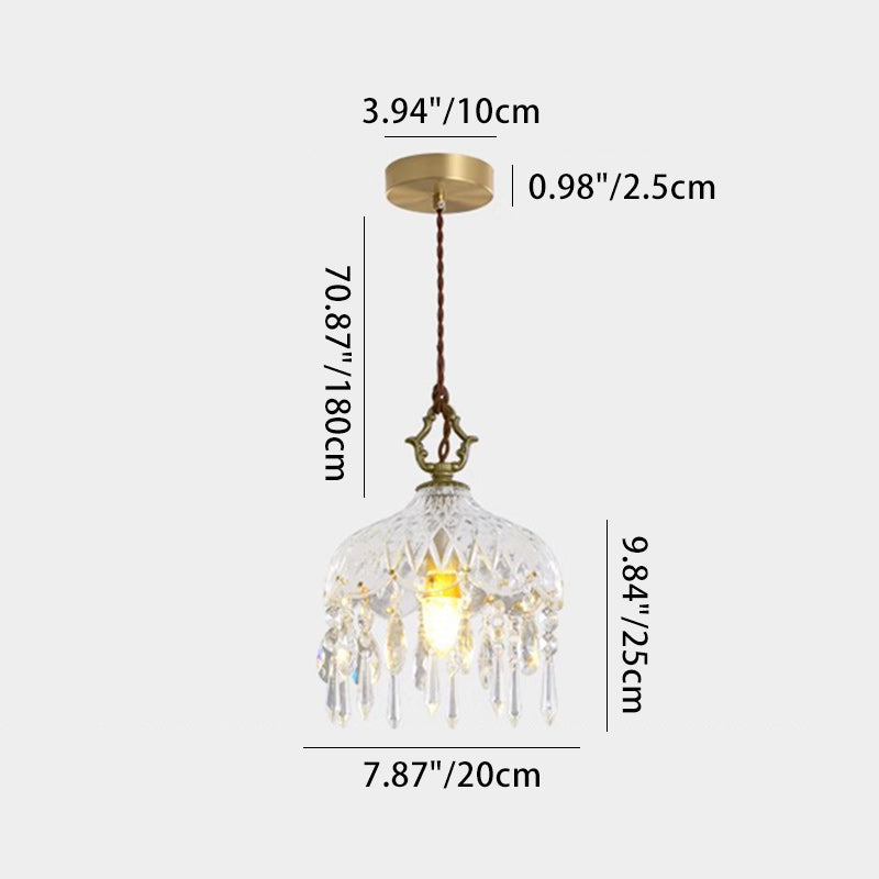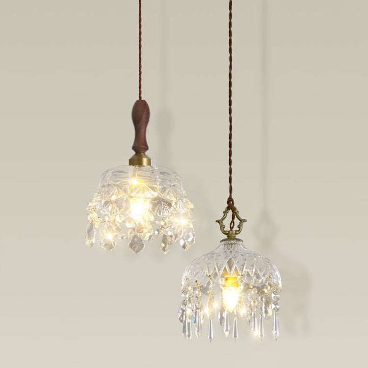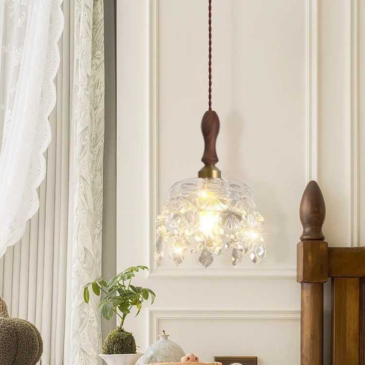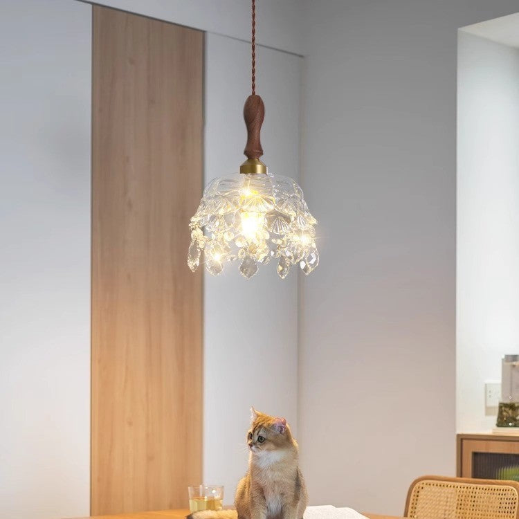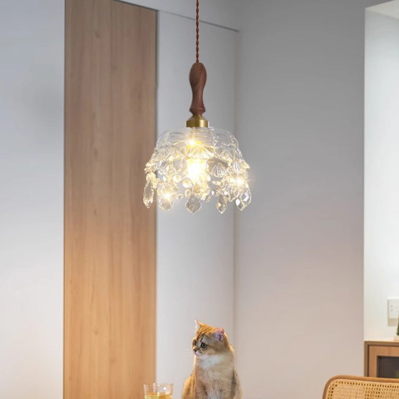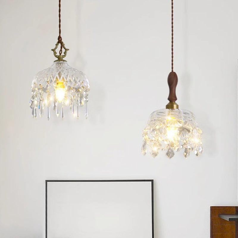 Traditional French Teardrop Copper Wood Glass 1-Light Pendant Light For Living Room