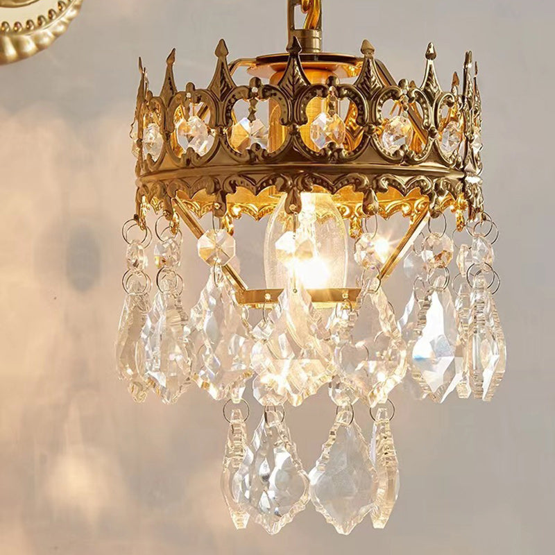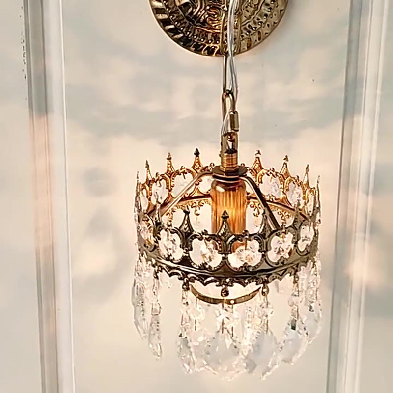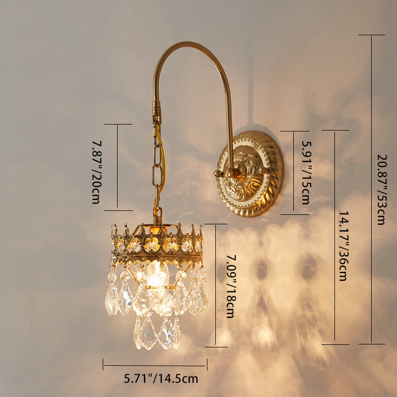 Traditional French Teardrop Crystal Iron 1-Light Wall Sconce Lamp For Living Room