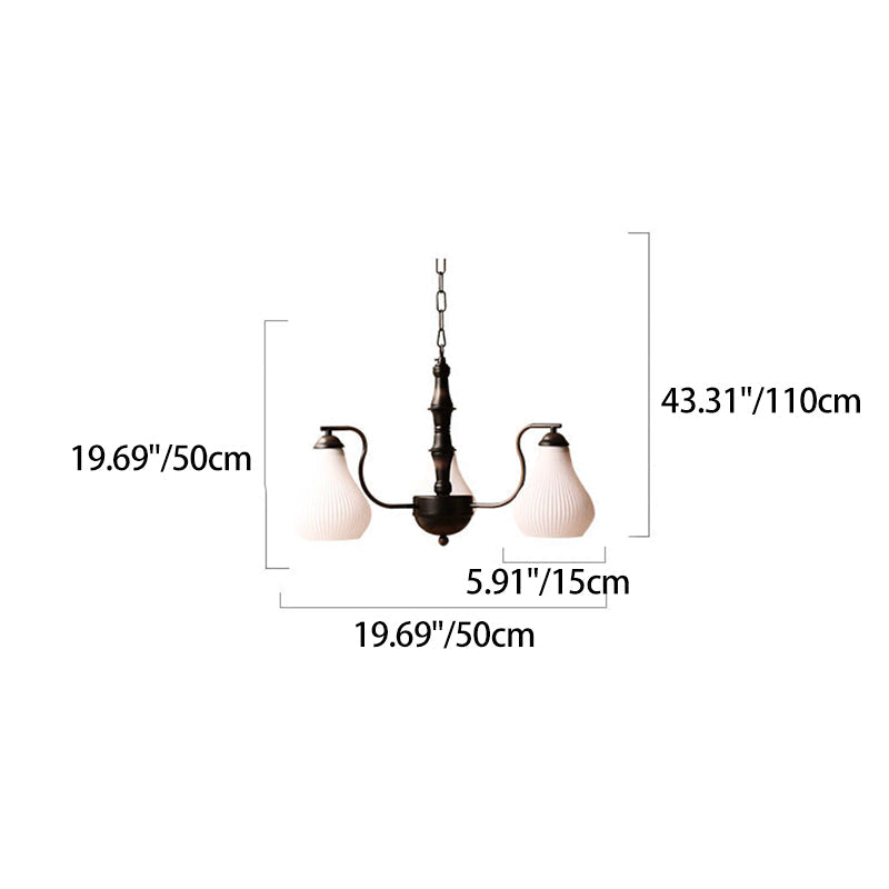 Traditional French Vase Iron Glass 3/5-Light Chandelier For Living Room