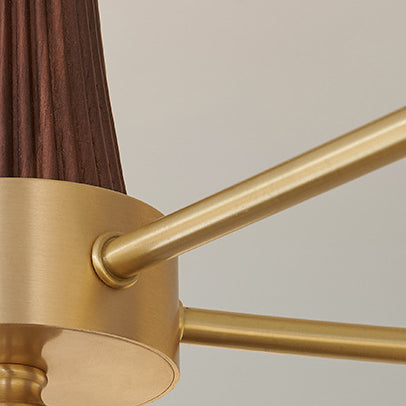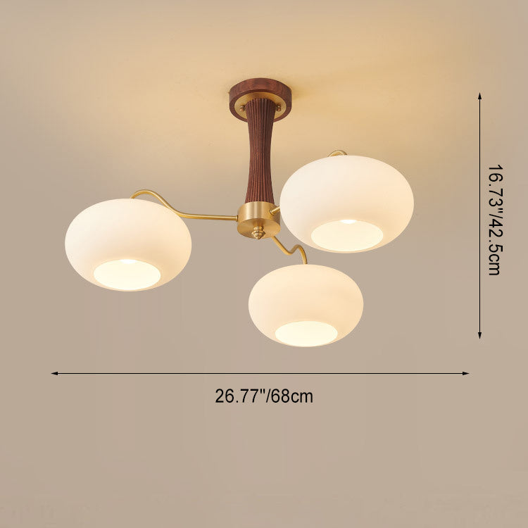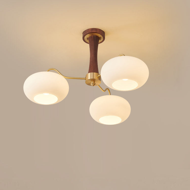 Traditional French Walnut Brass Frame Glass Persimmon Shade 3/5-Light Semi-Flush Mount Ceiling Light For Living Room