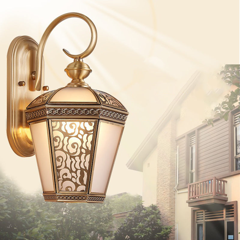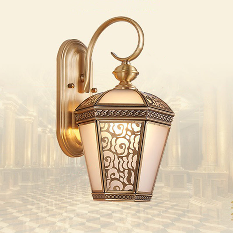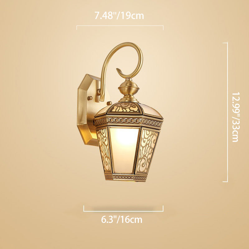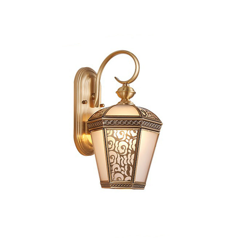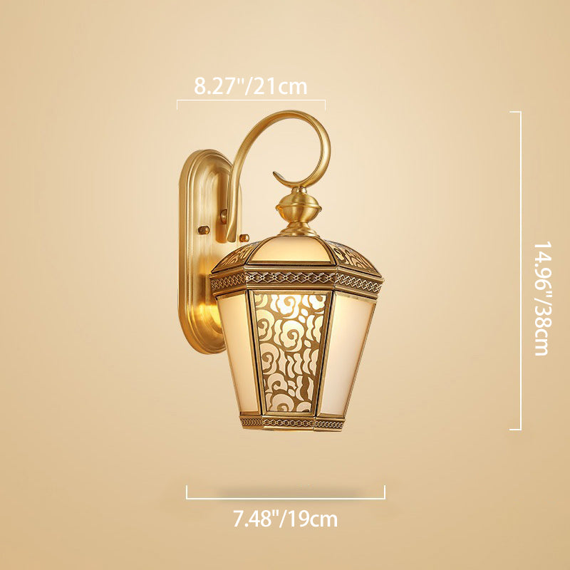 Traditional French Waterproof Lantern-Shaped Copper Glass 1-Light Outdoor Wall Sconce Lamp For Gardens