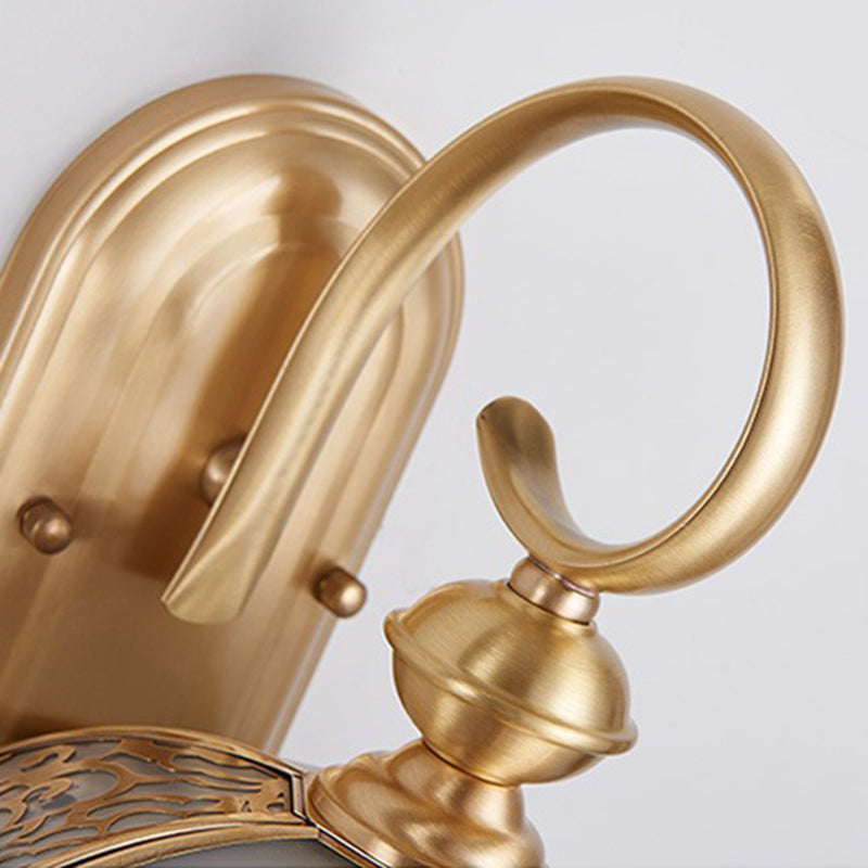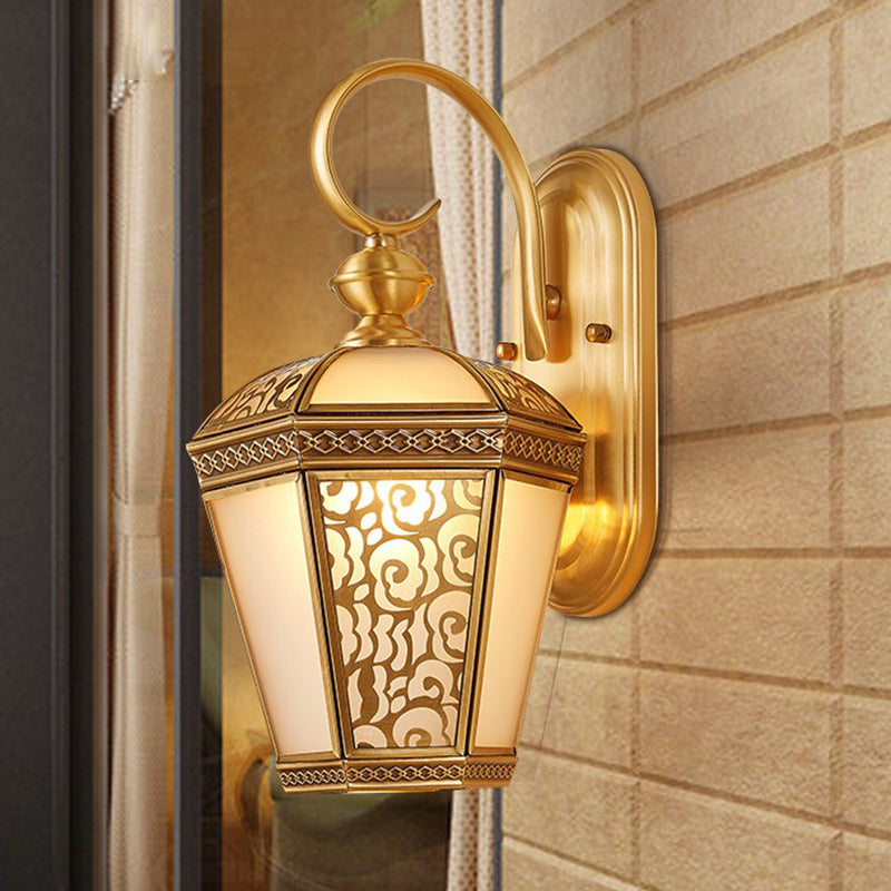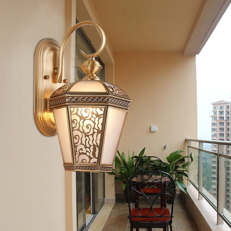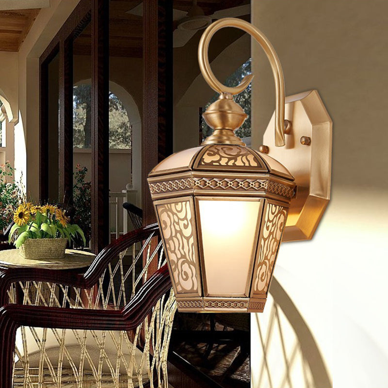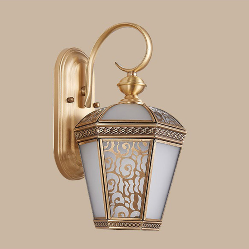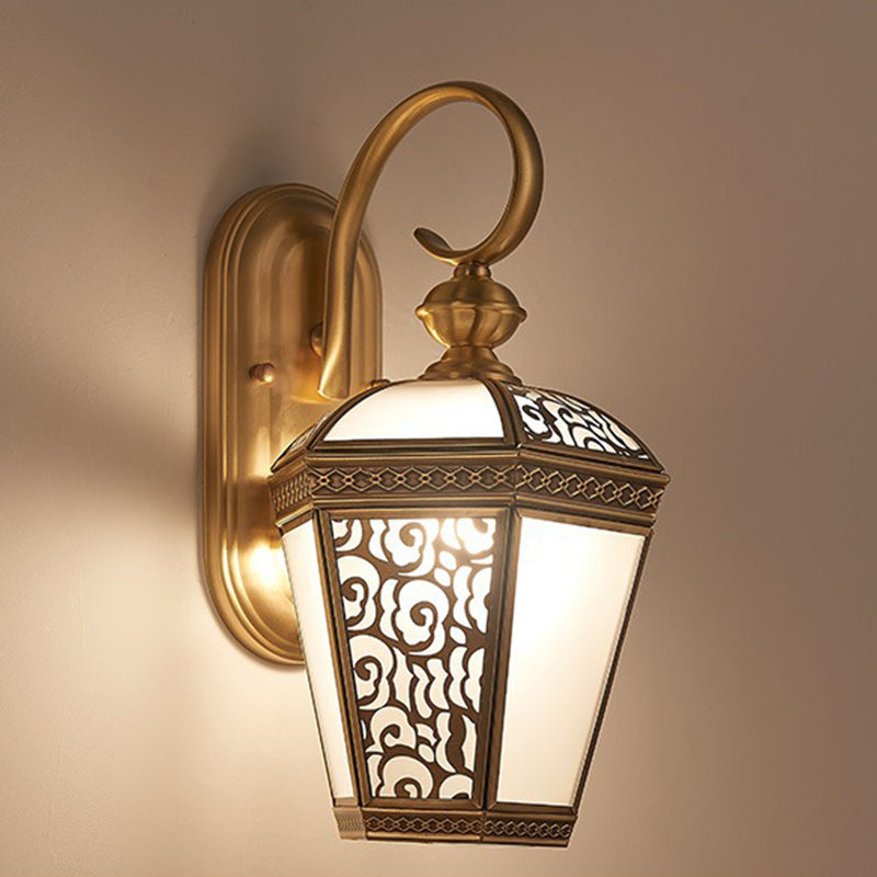 Traditional French Waterproof Lantern-Shaped Copper Glass 1-Light Outdoor Wall Sconce Lamp For Gardens