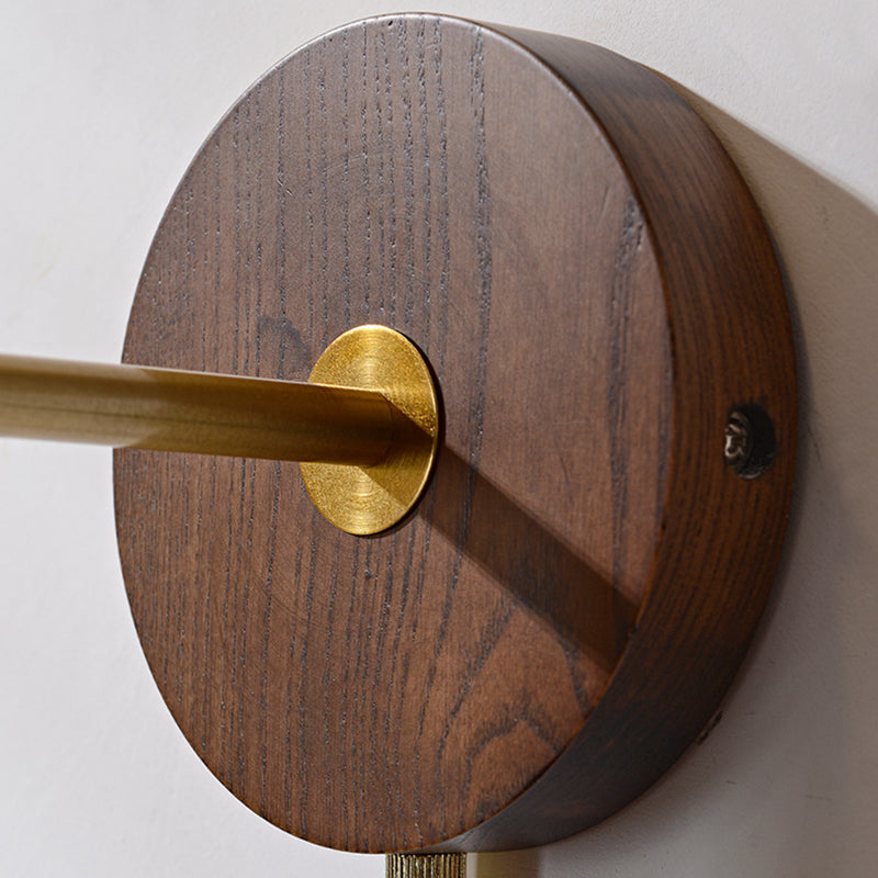 Traditional French White Polka Dot Fabric Cylinder Shade Ash Wood 1-Light Wall Sconce Lamp For Bedroom