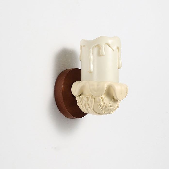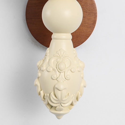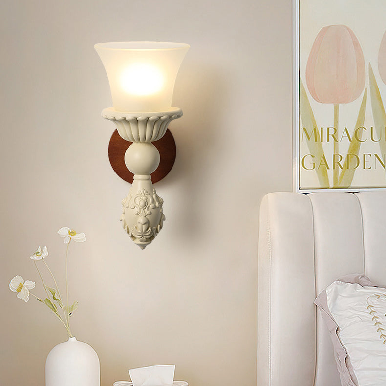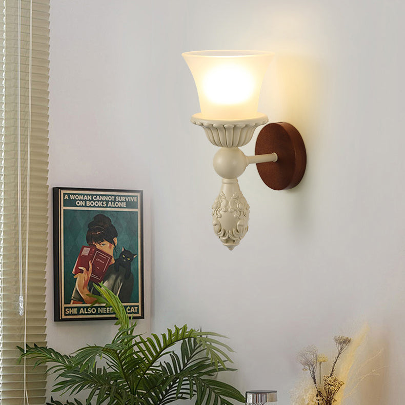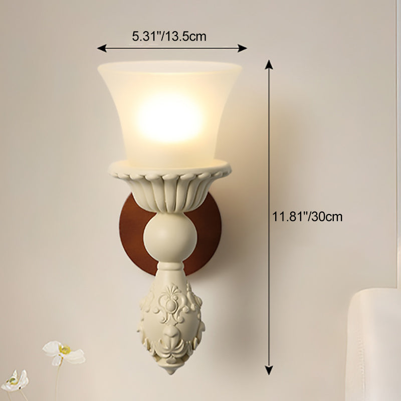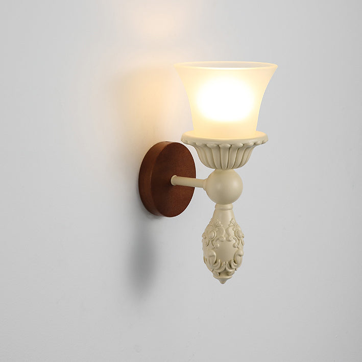 Traditional French Wood Resin Glass Carved Candelabra 1-Light Wall Sconce Lamp For Bedroom & Living Room