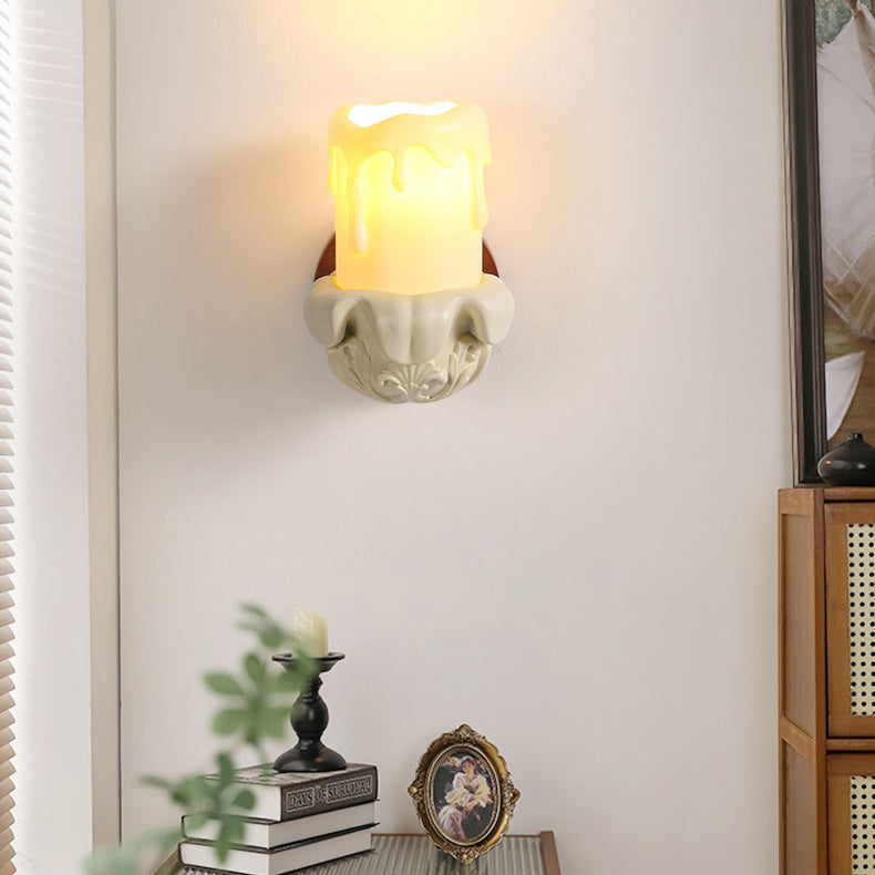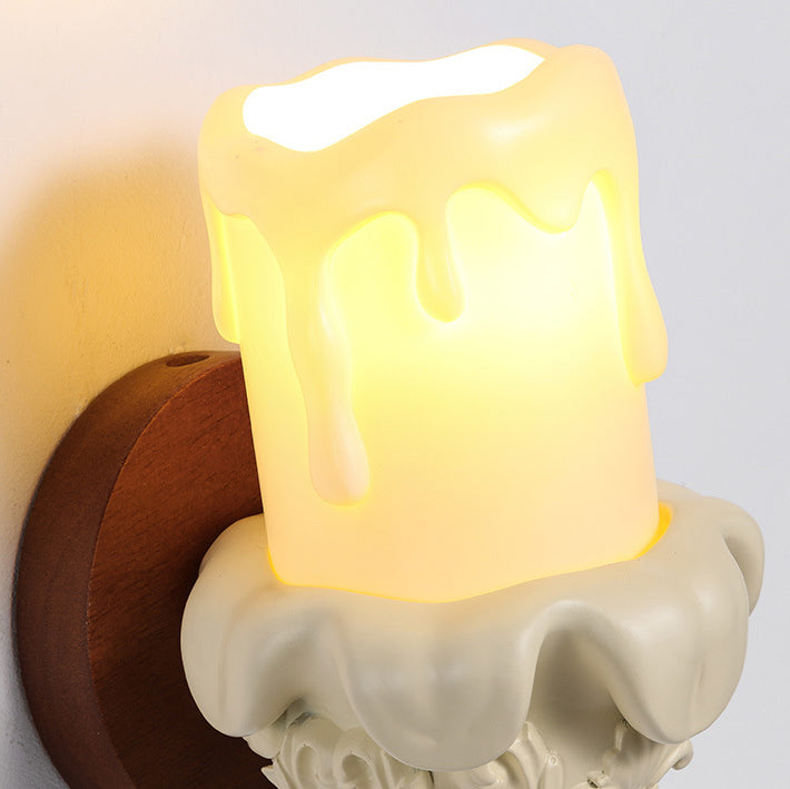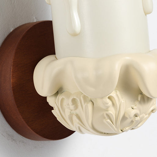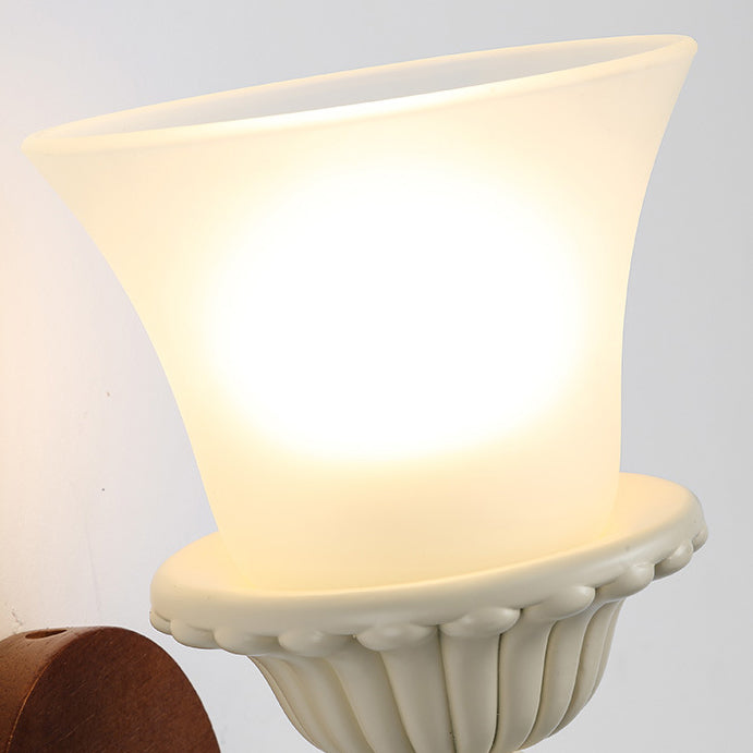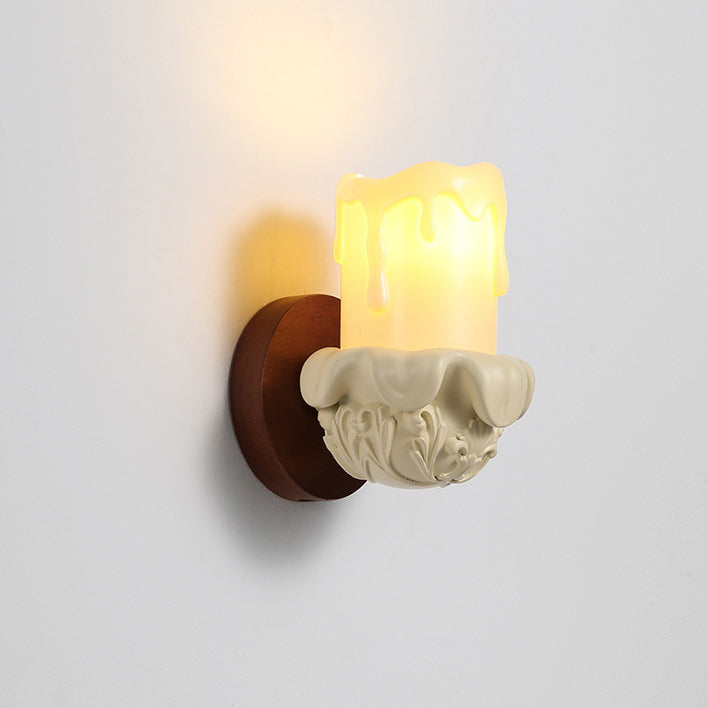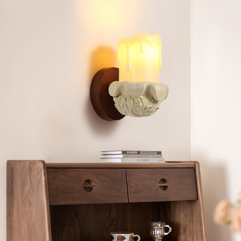 Traditional French Wood Resin Glass Carved Candelabra 1-Light Wall Sconce Lamp For Bedroom & Living Room