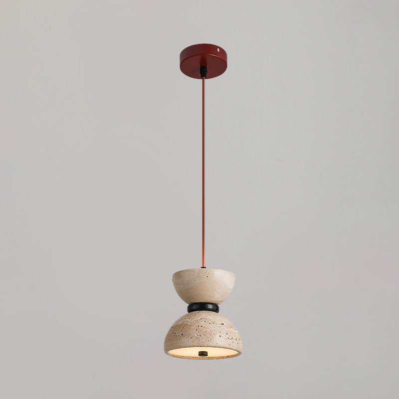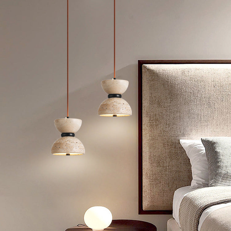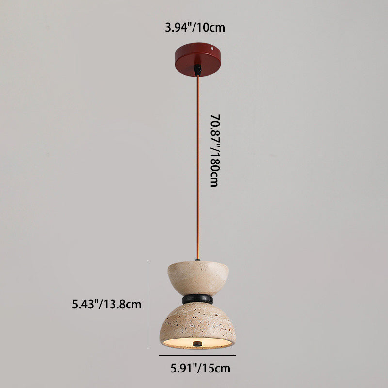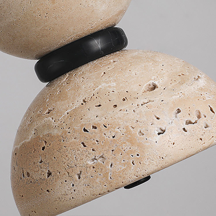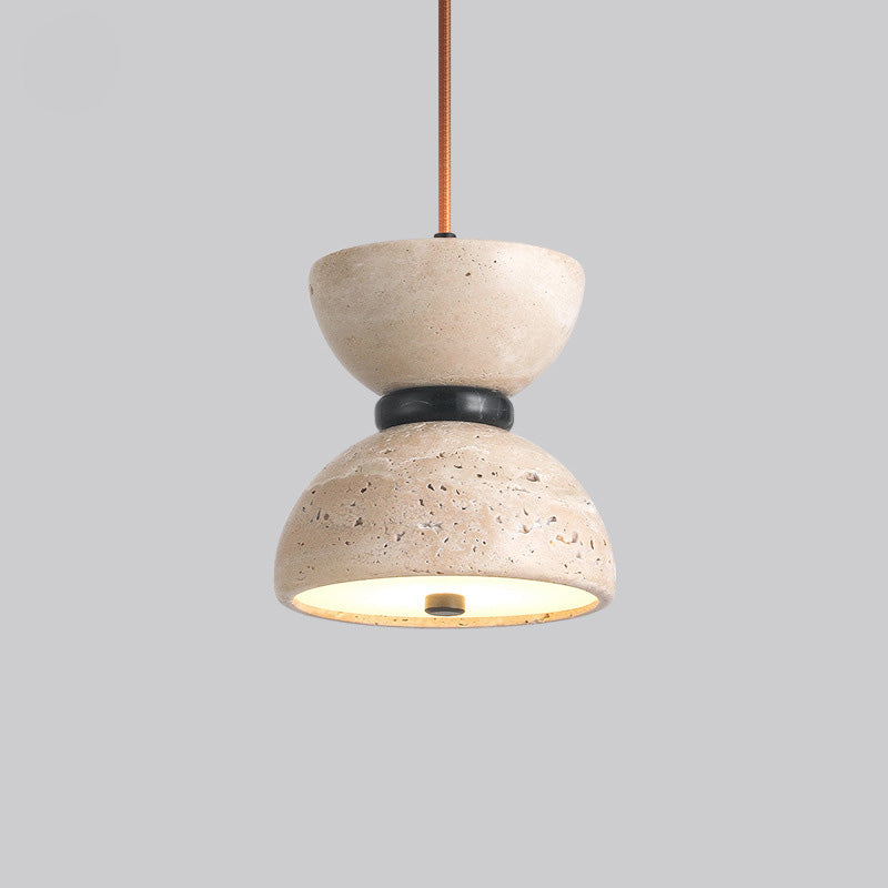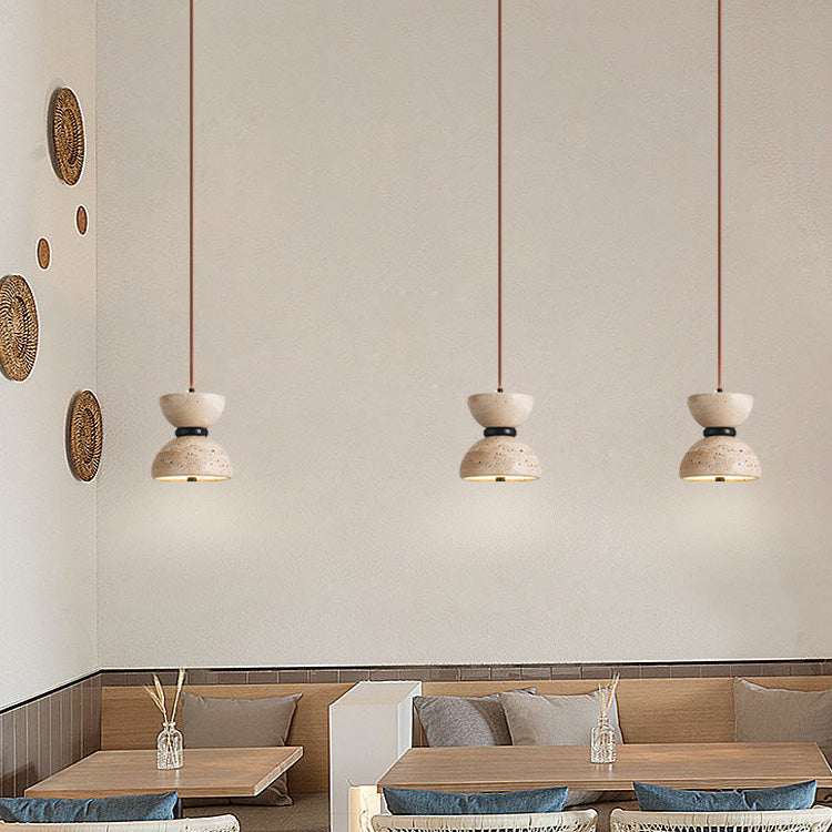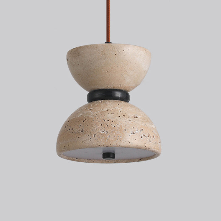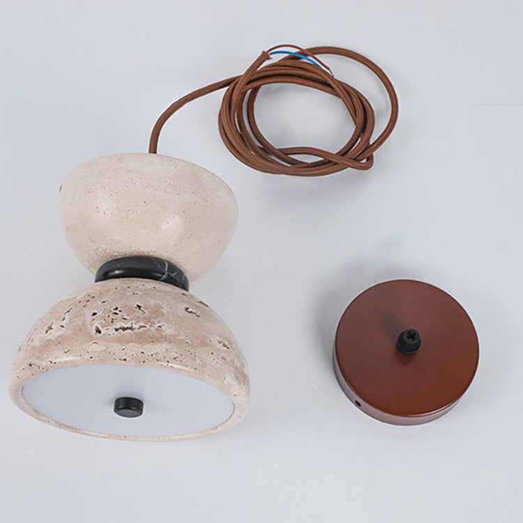 Traditional Japanese Bidirectional Dome Travertine Stone Shade LED Pendant Light For Dining Room