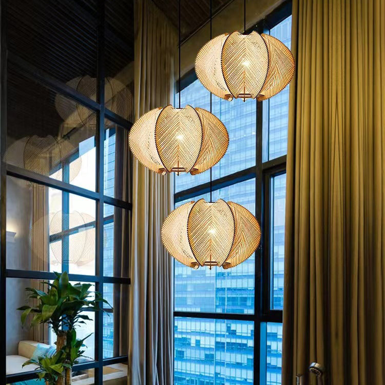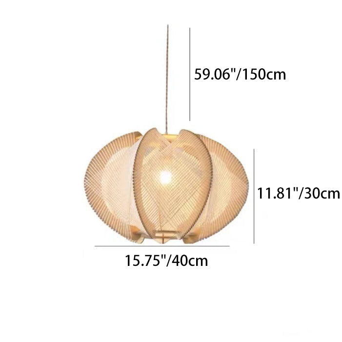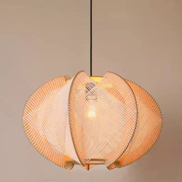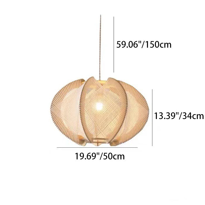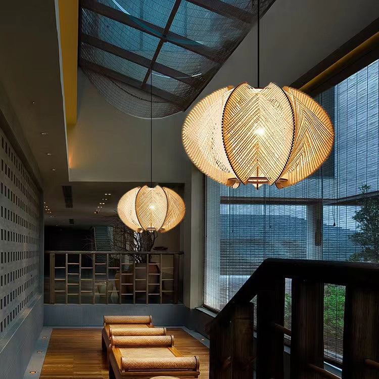 Traditional Japanese Birdcage Oval Hemp Rope Wood 1-Light Pendant Light For Dining Room