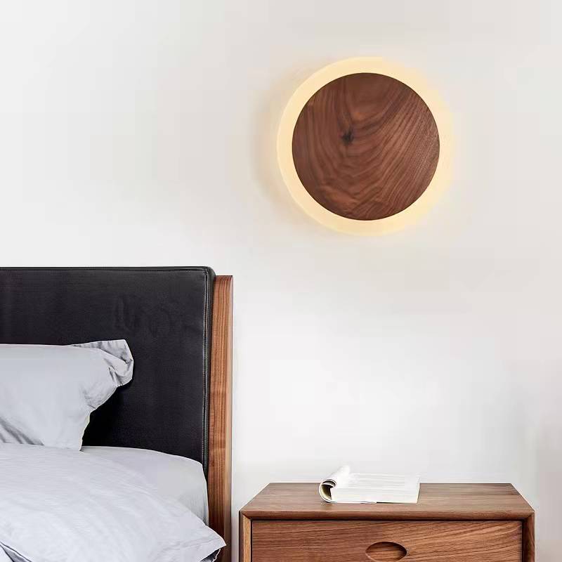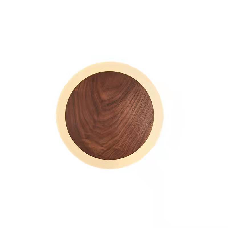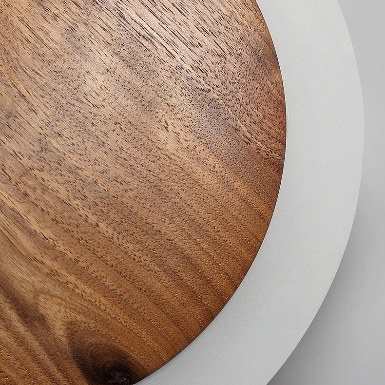 Traditional Japanese Black Walnut Round Shade LED Wall Sconce Lamp For Living Room