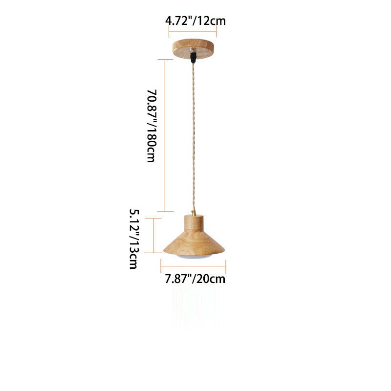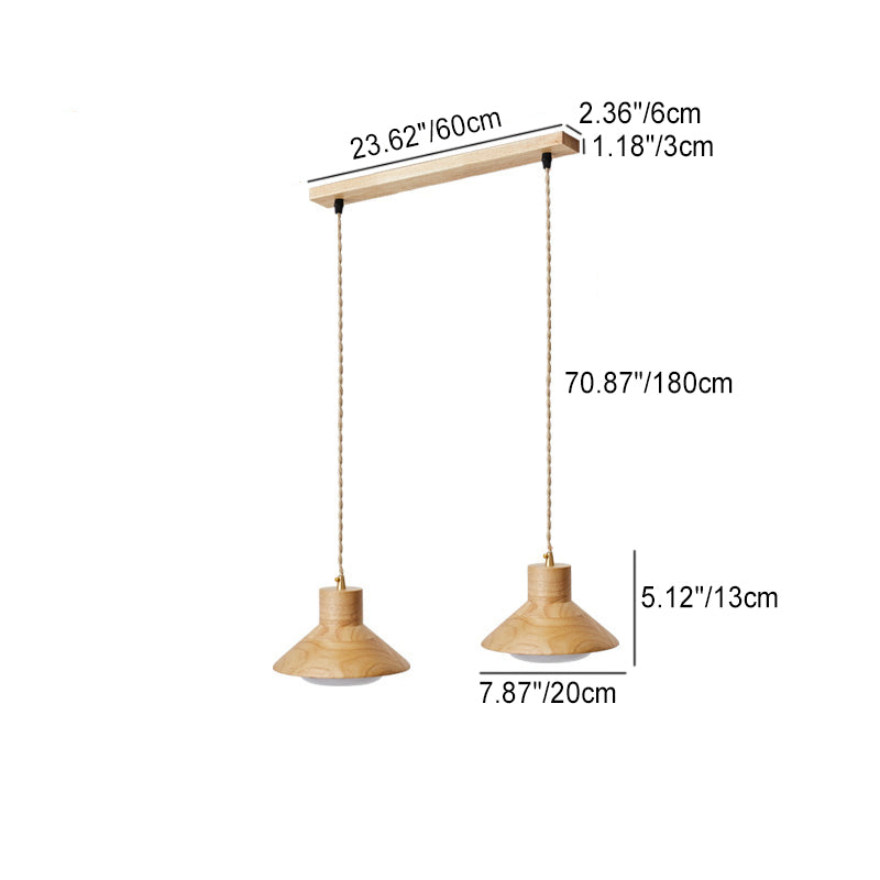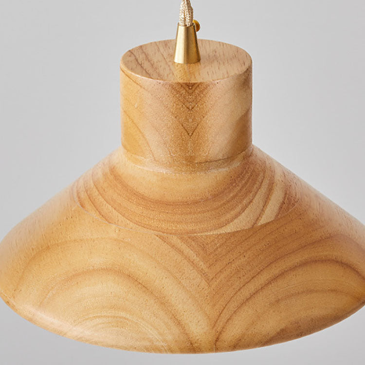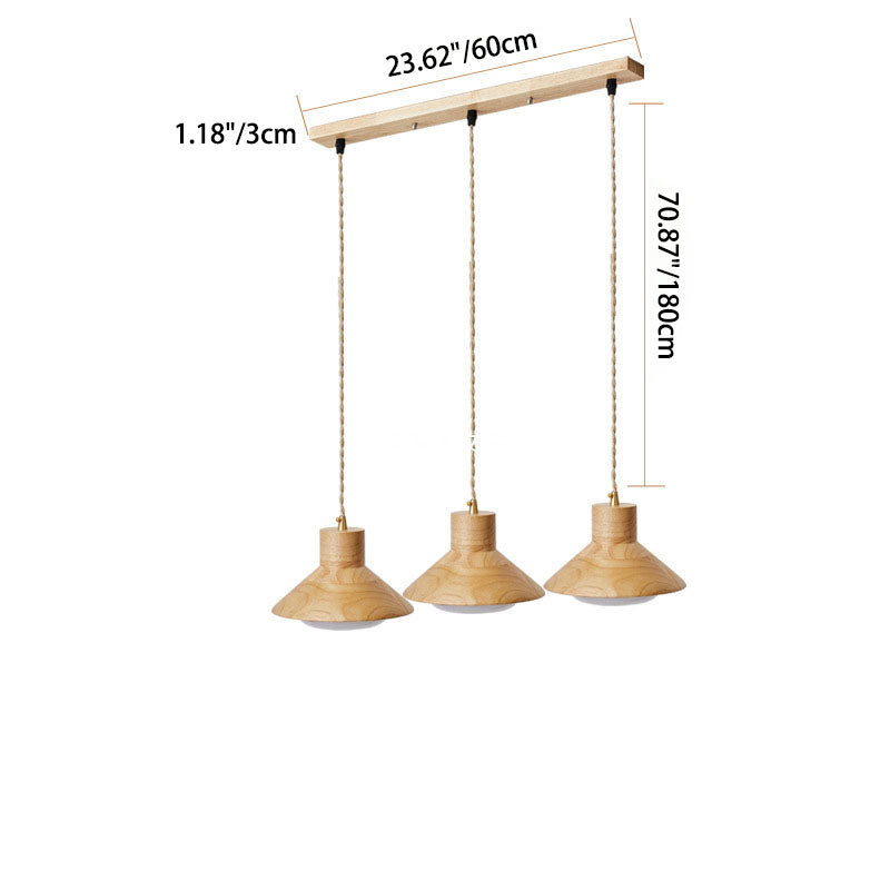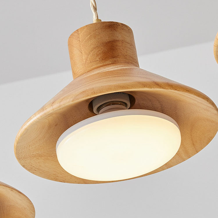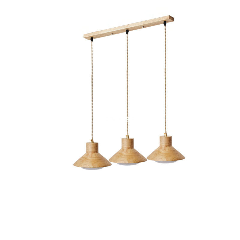 Traditional Japanese Bowl Conic Rubber Wood 1/2/3 Light Pendant Light Chandeliers For Dining Room