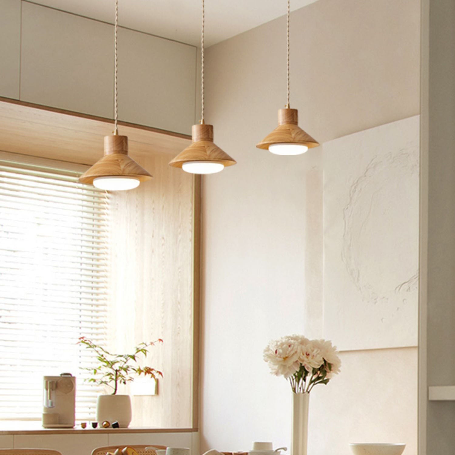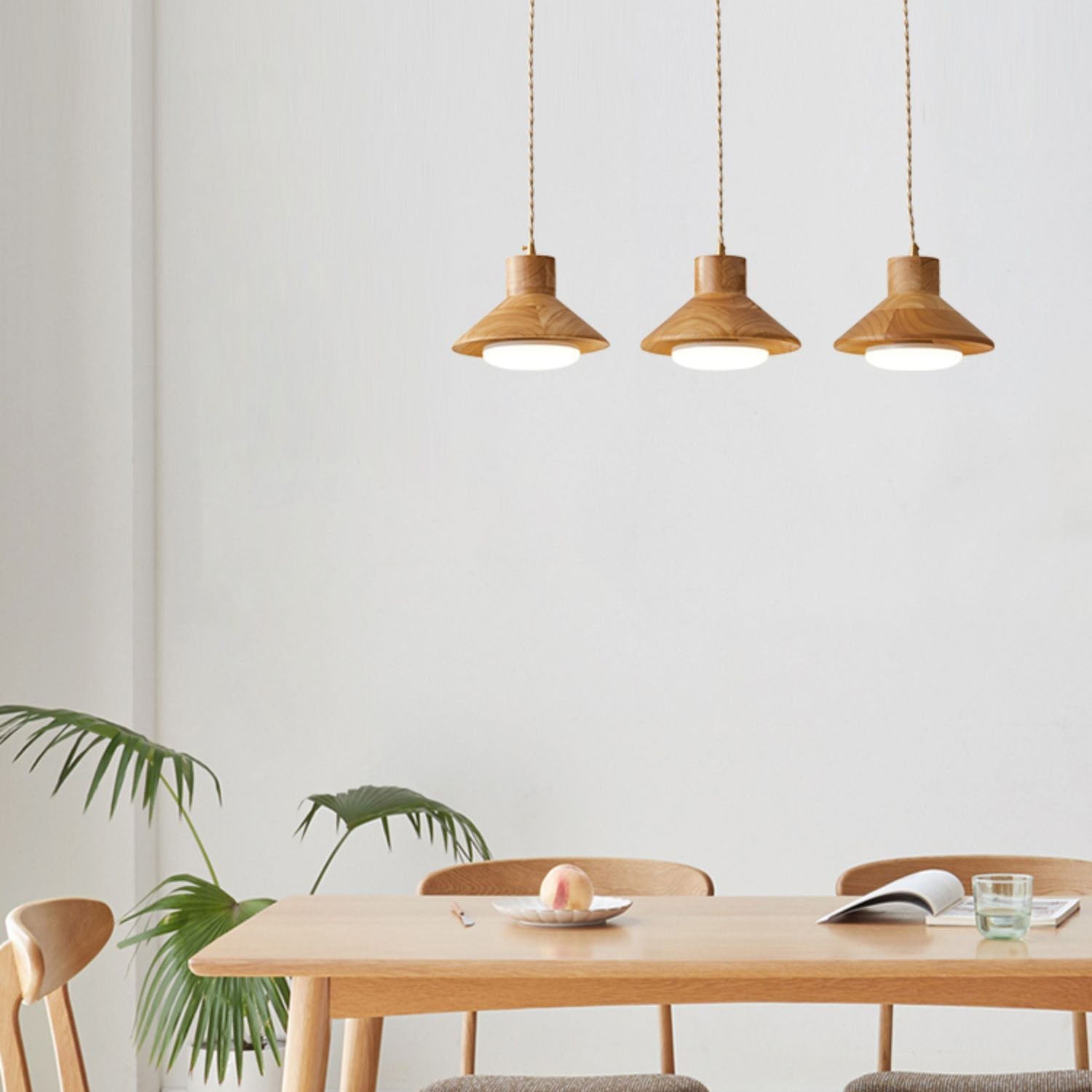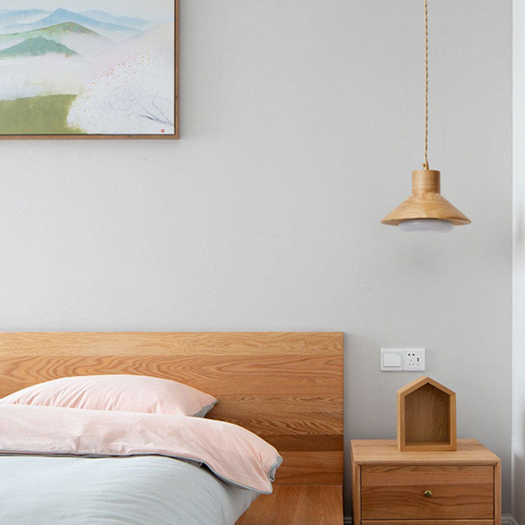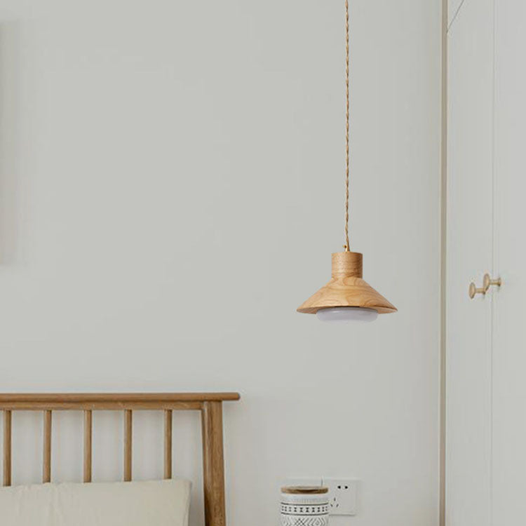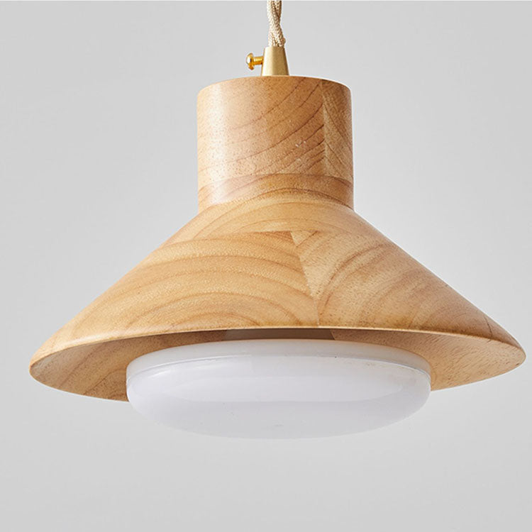 Traditional Japanese Bowl Conic Rubber Wood 1/2/3 Light Pendant Light Chandeliers For Dining Room