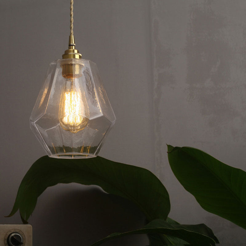 Traditional Japanese Brass Iron Glass Rhombic 1-Light Pendant Light For Bedside