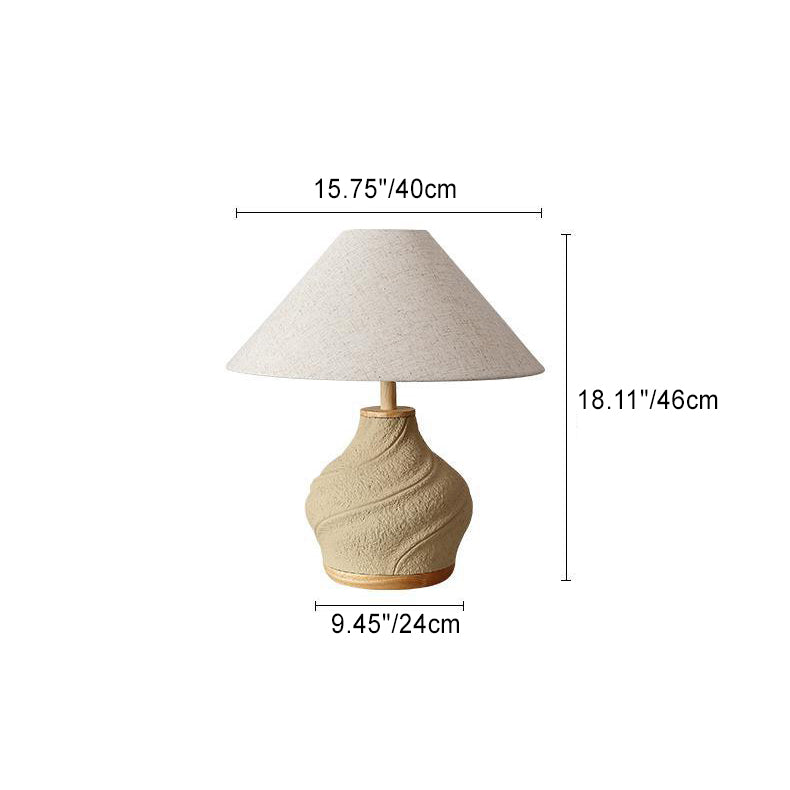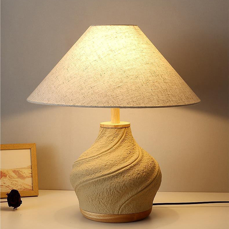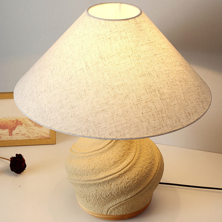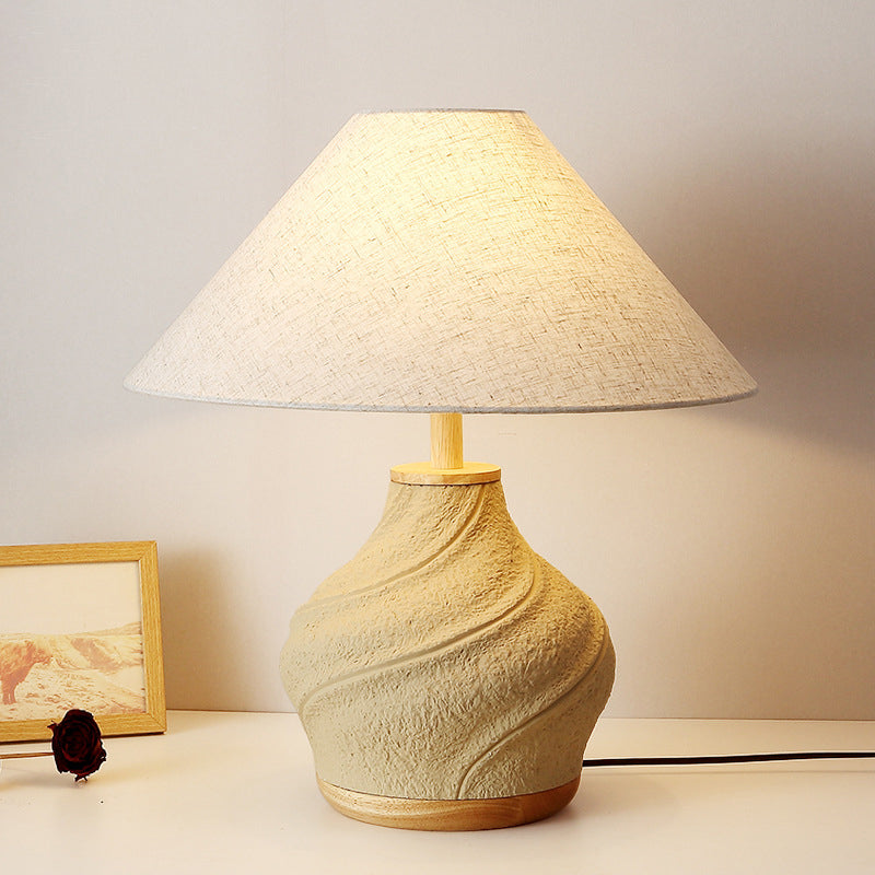 Traditional Japanese Cone Fabric Shade Concrete Vase Base 1-Light Table Lamp For Study