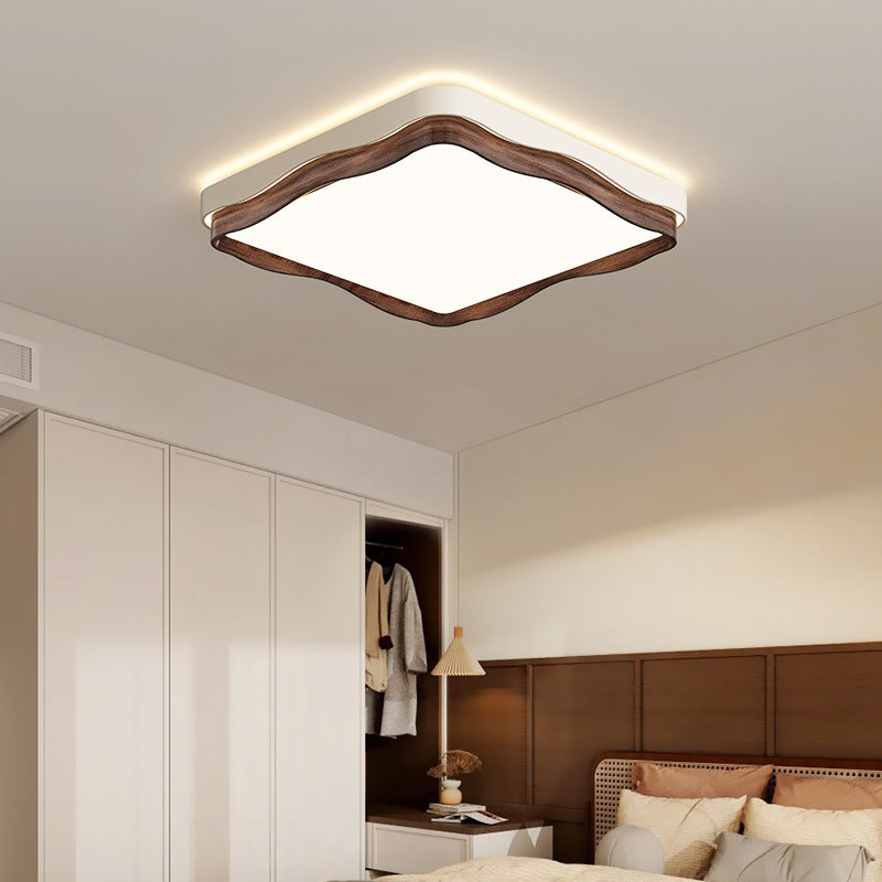 Traditional Japanese Corrugated Iron Imitation Wood Grain Acrylic LED Flush Mount Ceiling Light For Bedroom