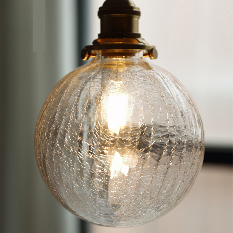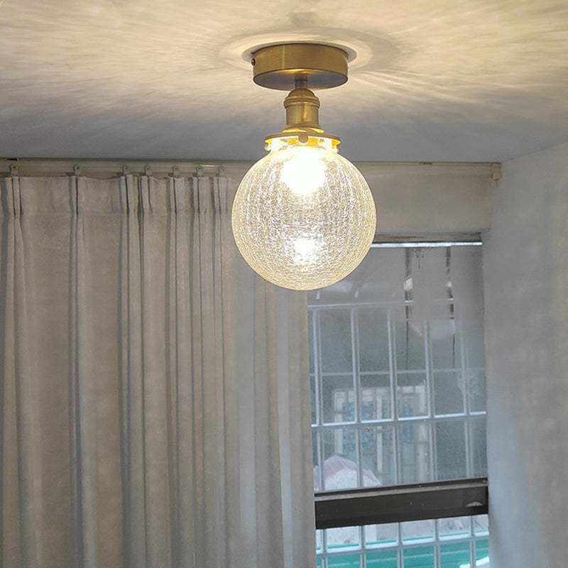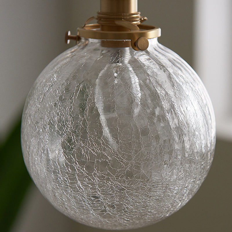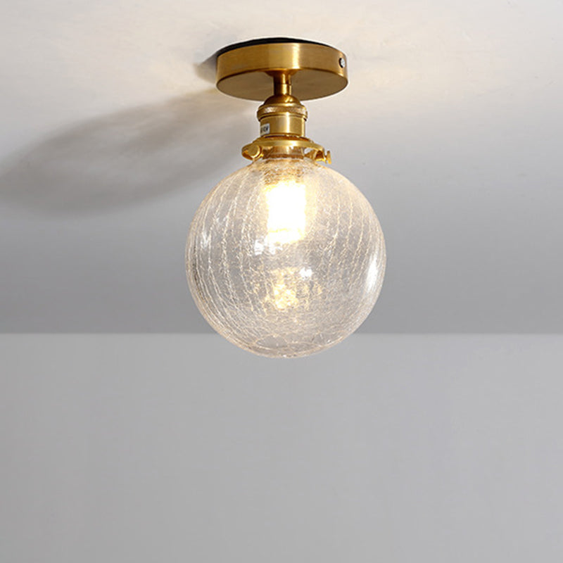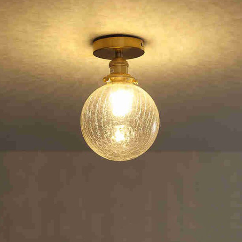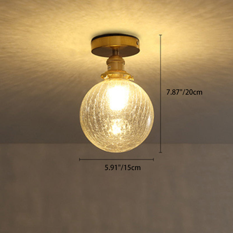 Traditional Japanese Crackled Orb Round Glass Brass 1-Light Semi-Flush Mount Ceiling Light For Living Room