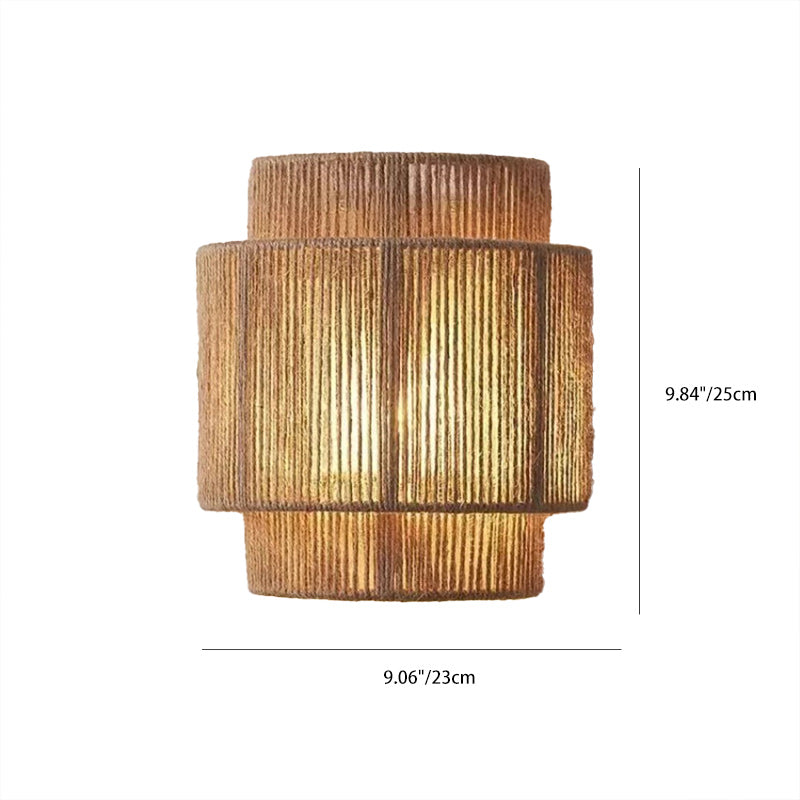 Traditional Japanese Cylinder Rattan 1-Light Wall Sconce Lamp For Living Room