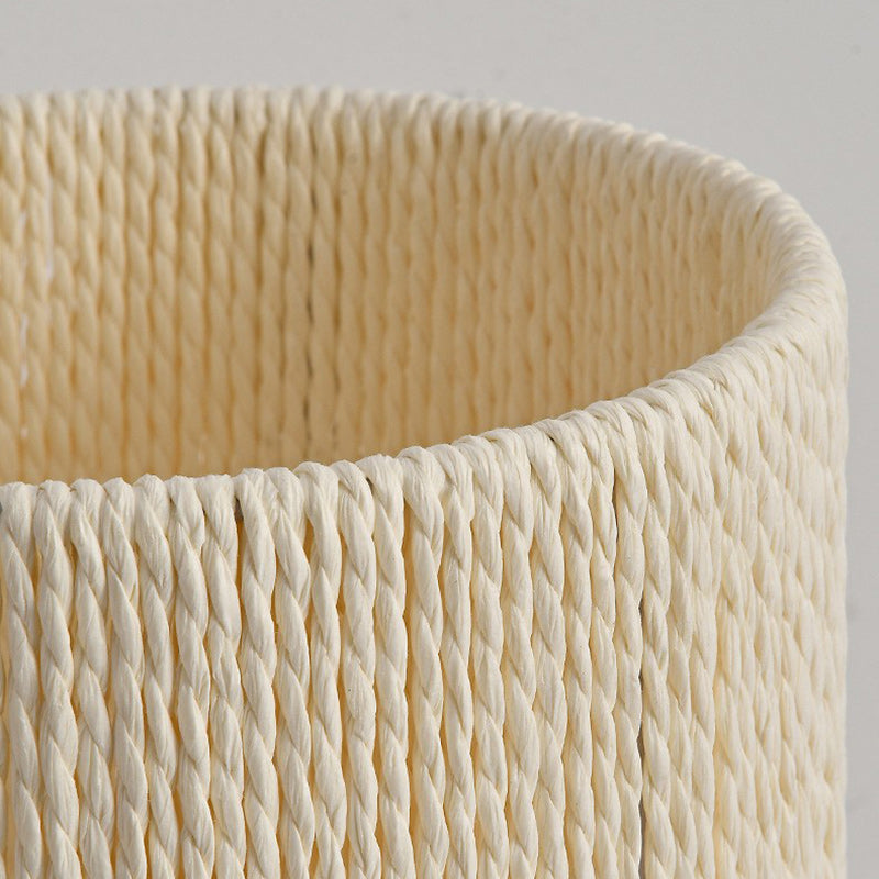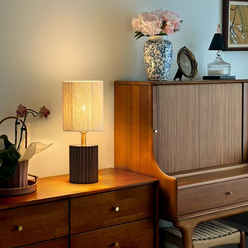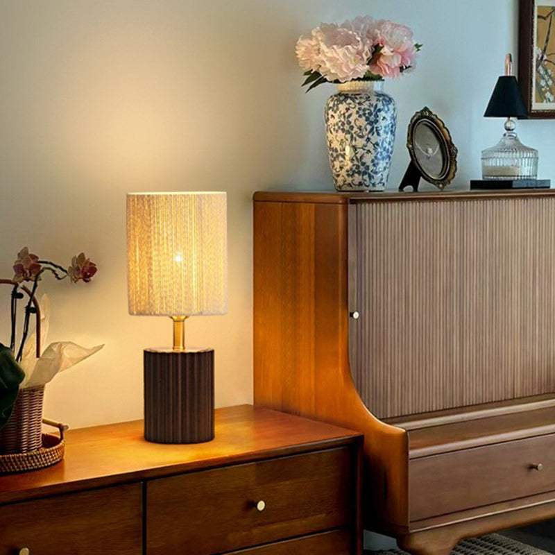 Traditional Japanese Cylinder Rubberwood Paper Rope 1-Light Table Lamp For Bedroom