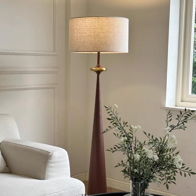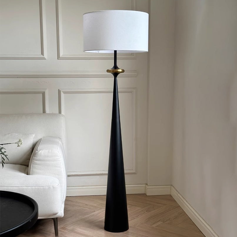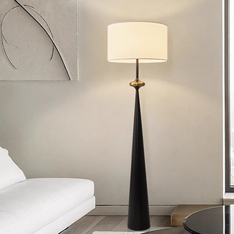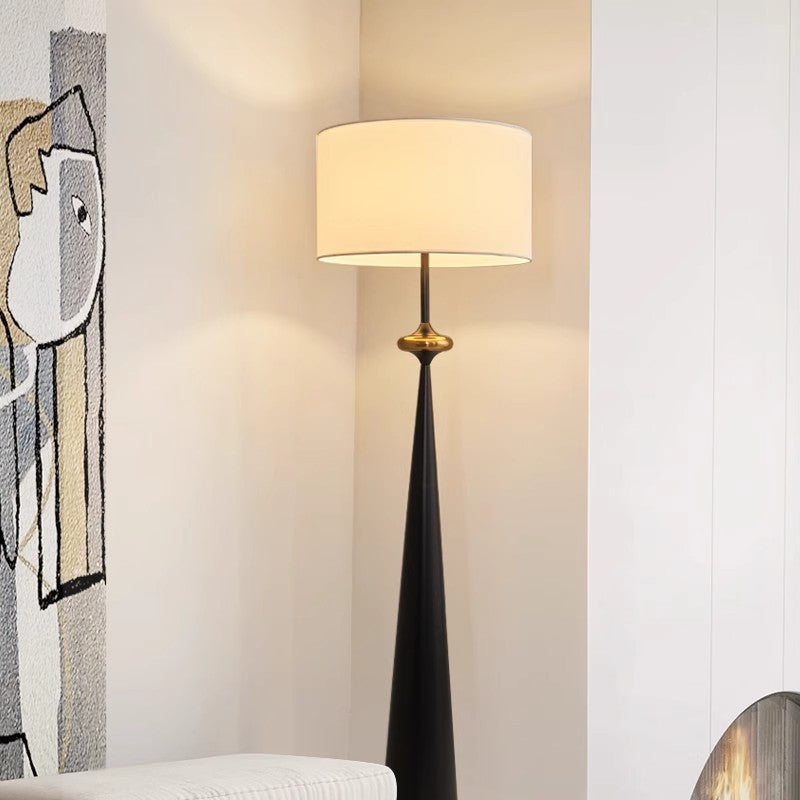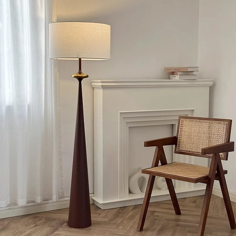 Traditional Japanese Cylindrical Conical Iron Fabric 1-Light Standing Floor Lamp For Living Room