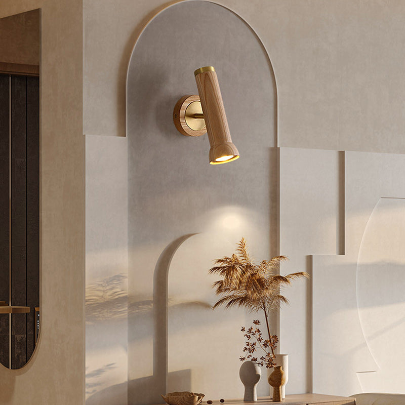 Traditional Japanese Cylindrical Flashlight Shape Copper Walnut Lampshade 1 - Light Wall Sconce Lamp For Living Room