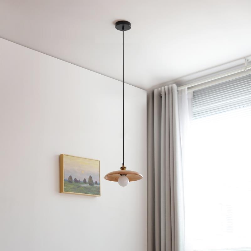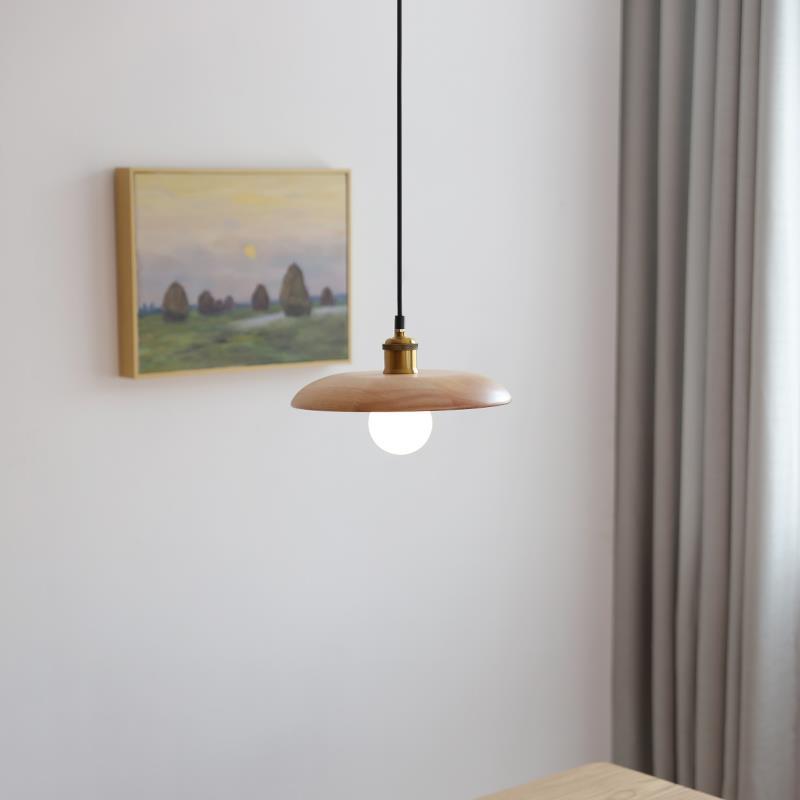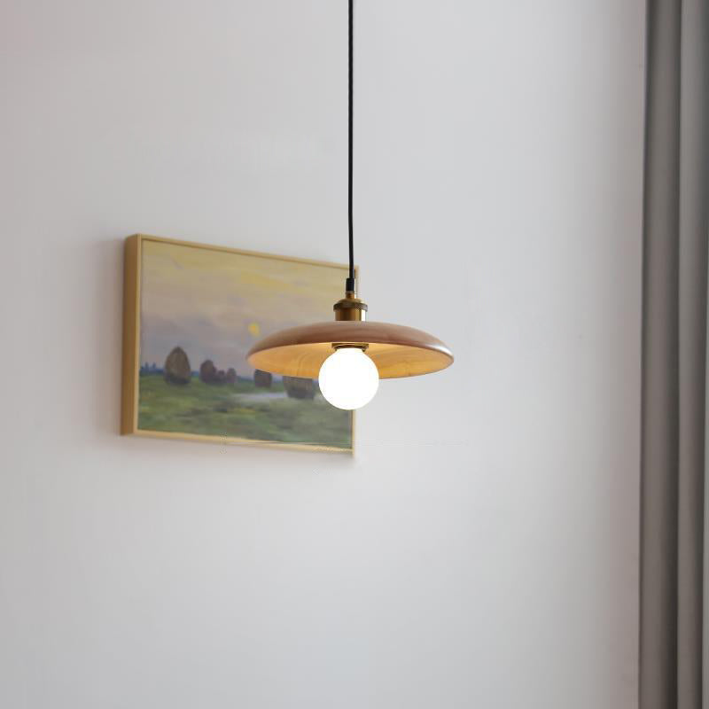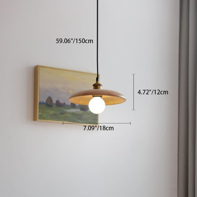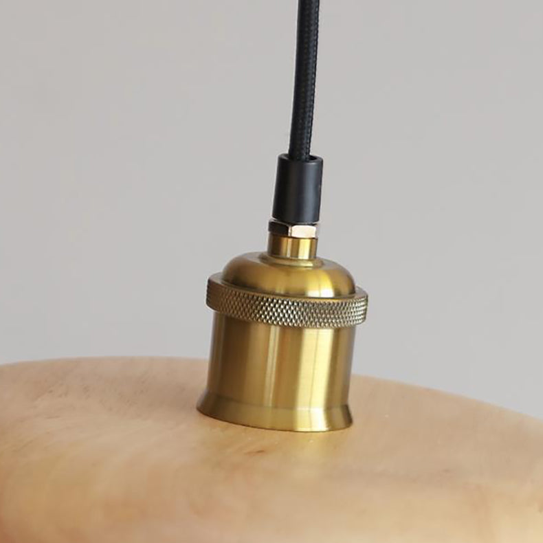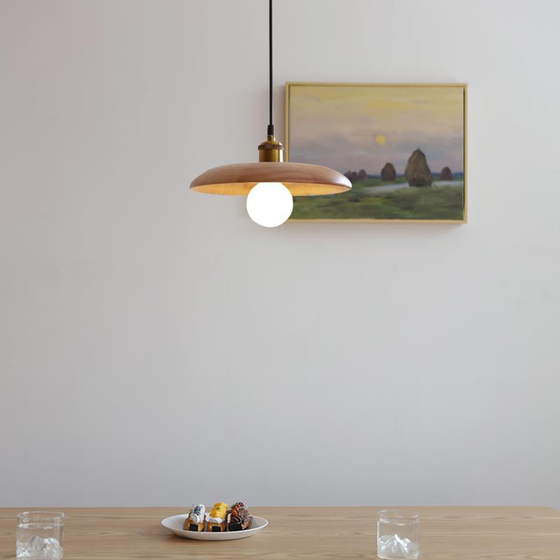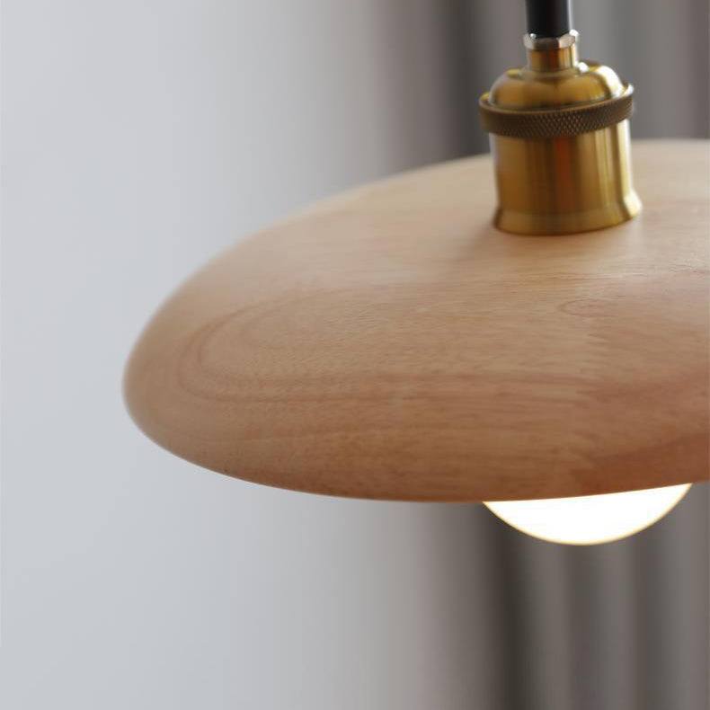 Traditional Japanese Disc Metal Original Wood 1-Light Pendant Light For Living Room