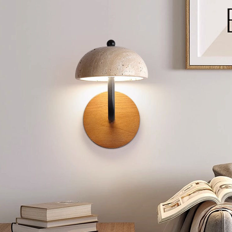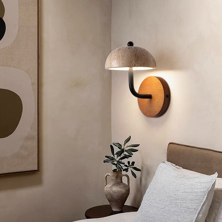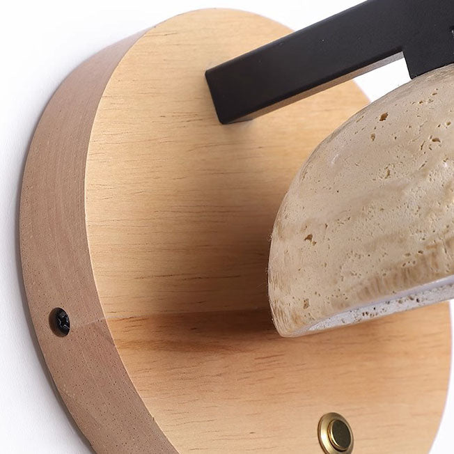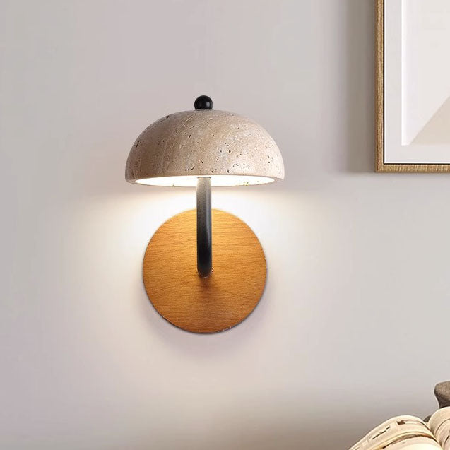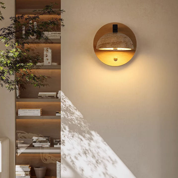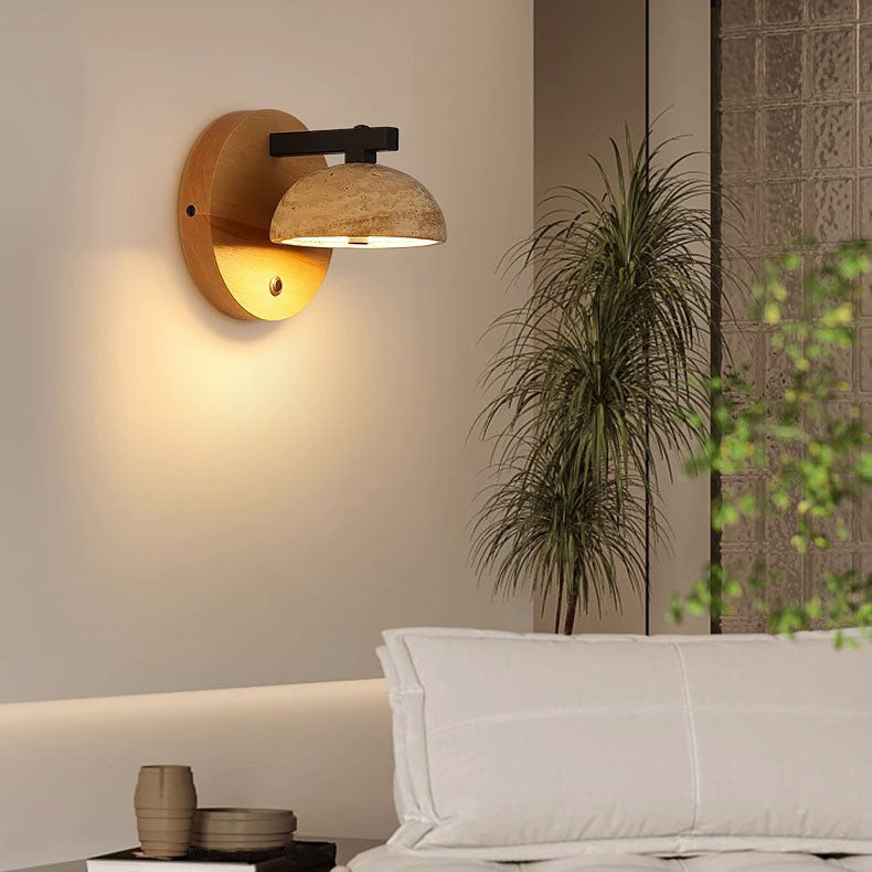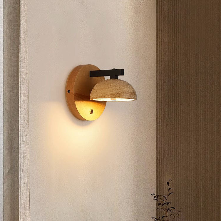 Traditional Japanese Dolomite Walnut Round Hemispherical LED Wall Sconce Lamp For Bedside