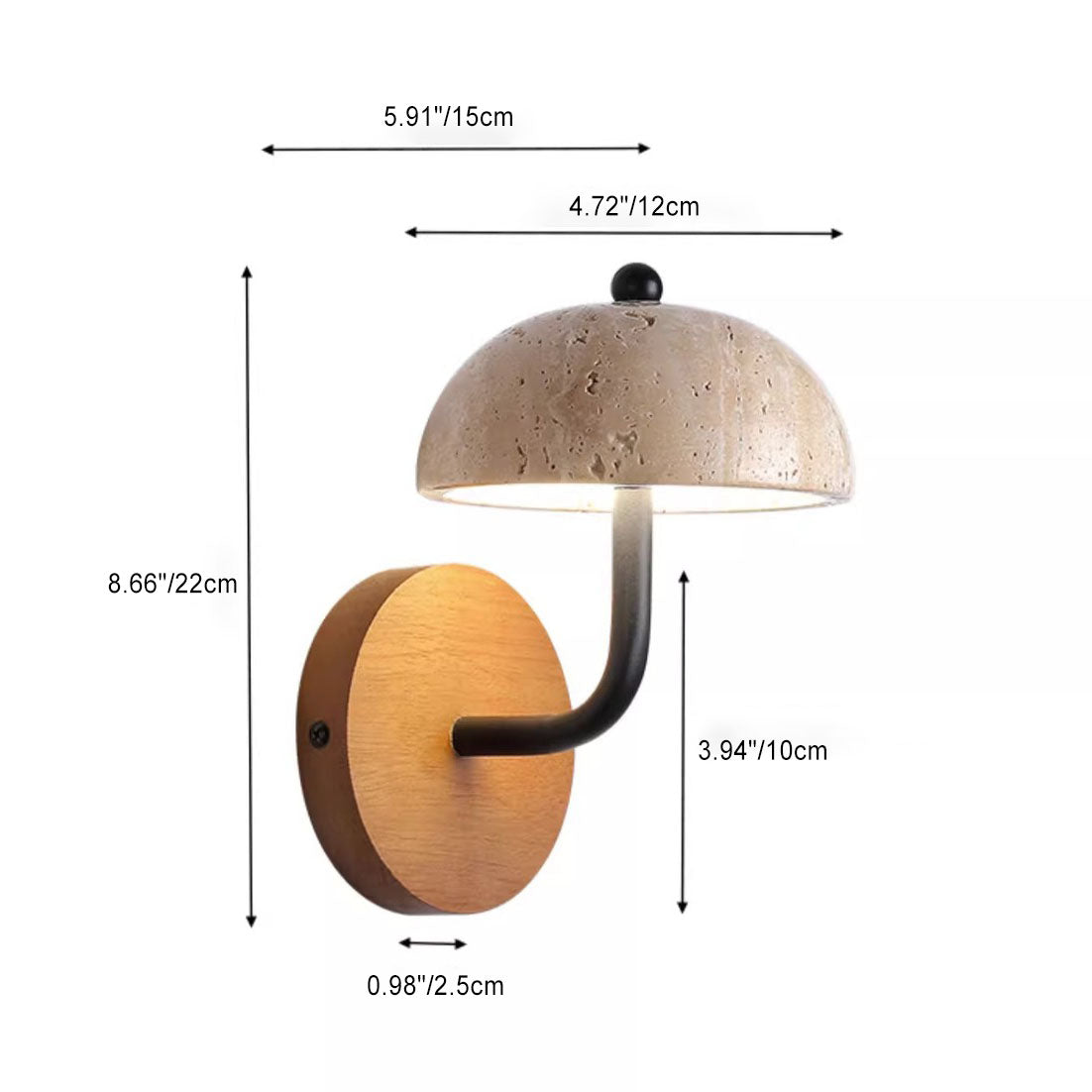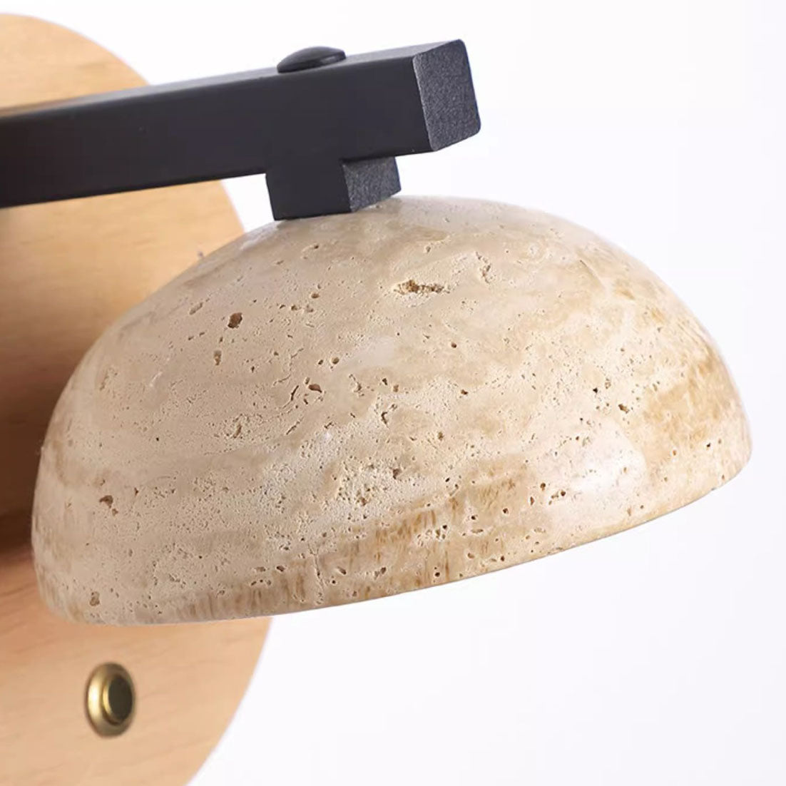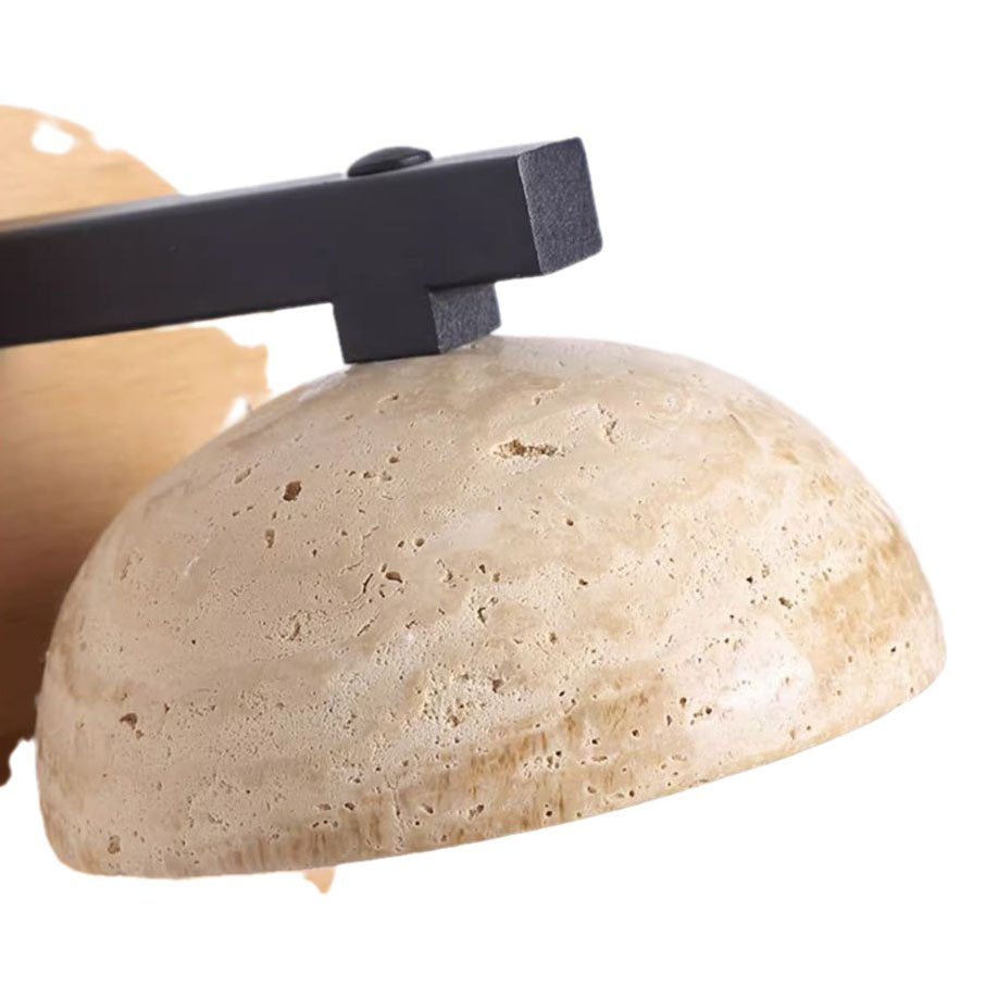 Traditional Japanese Dolomite Walnut Round Hemispherical LED Wall Sconce Lamp For Bedside