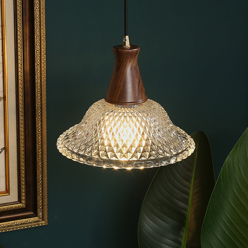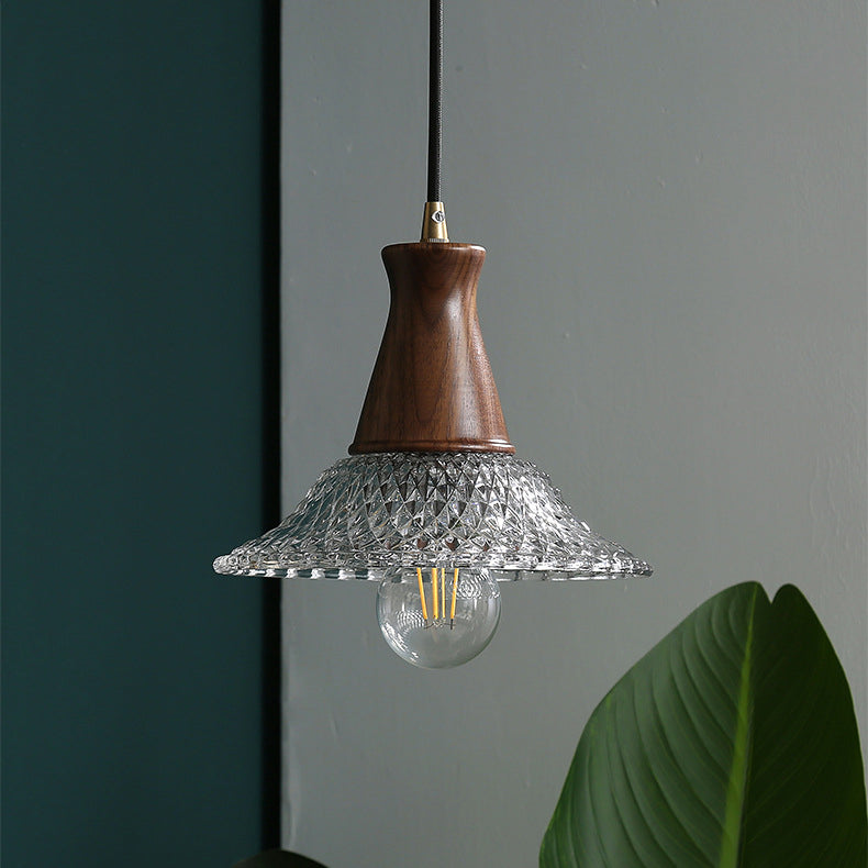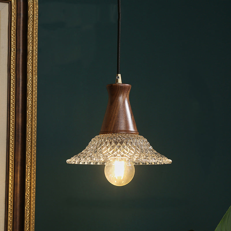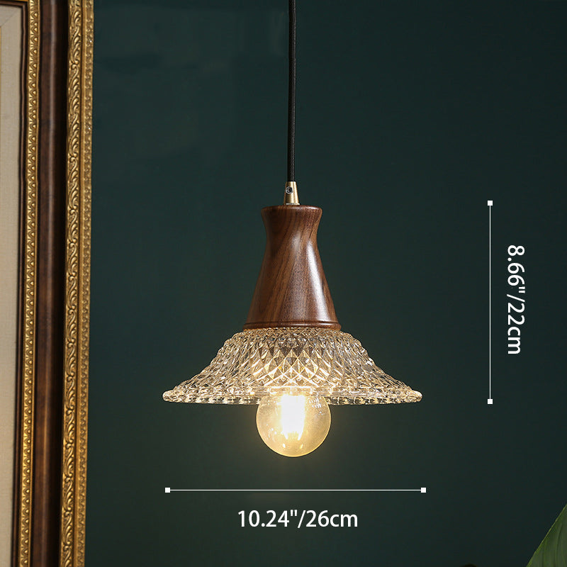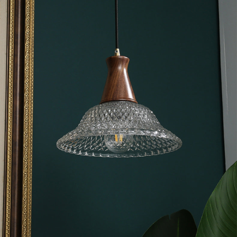 Traditional Japanese Dome Copper Wood Glass 1-Light Pendant Light For Living Room