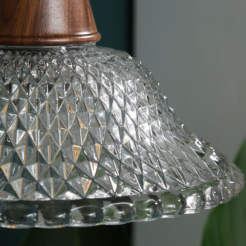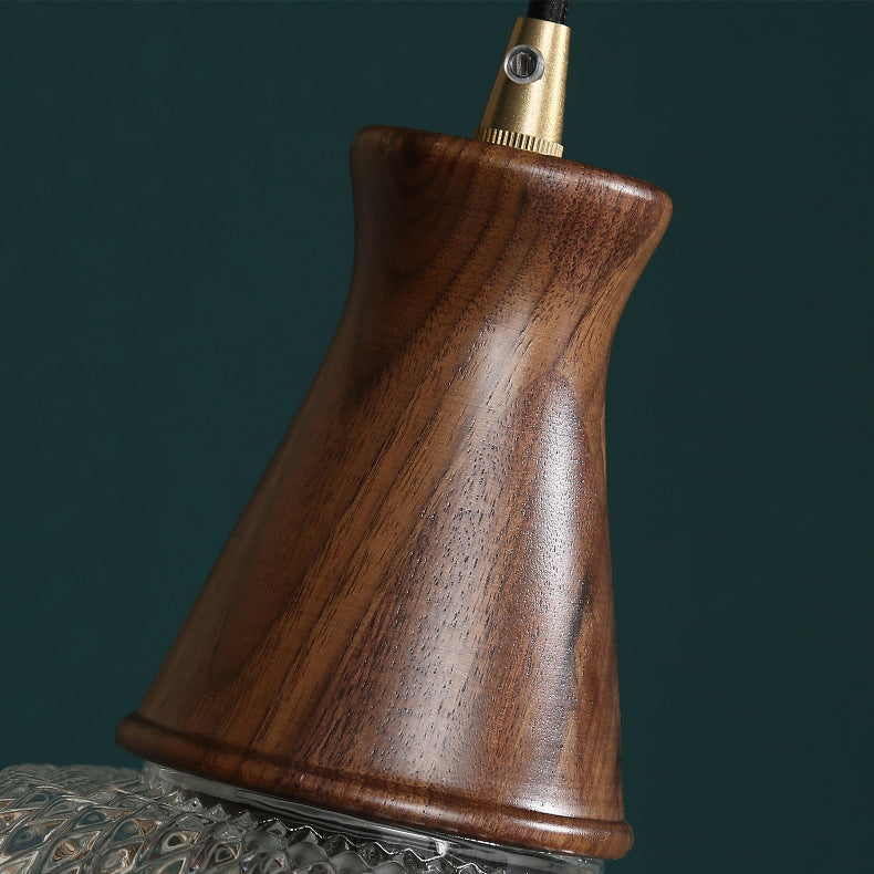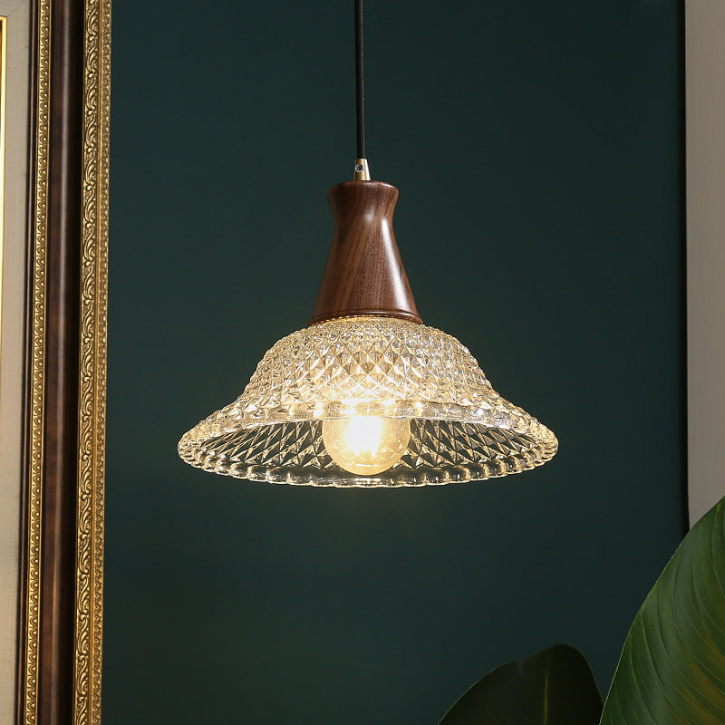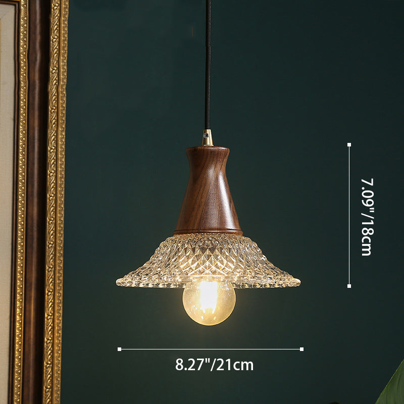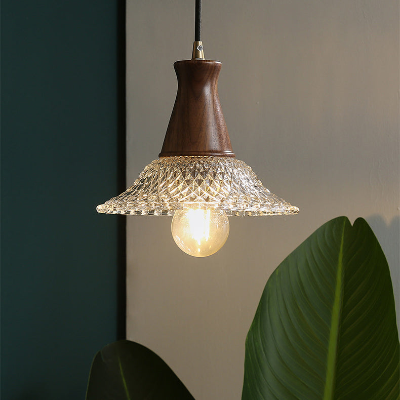Traditional Japanese Dome Copper Wood Glass 1-Light Pendant Light For Living Room