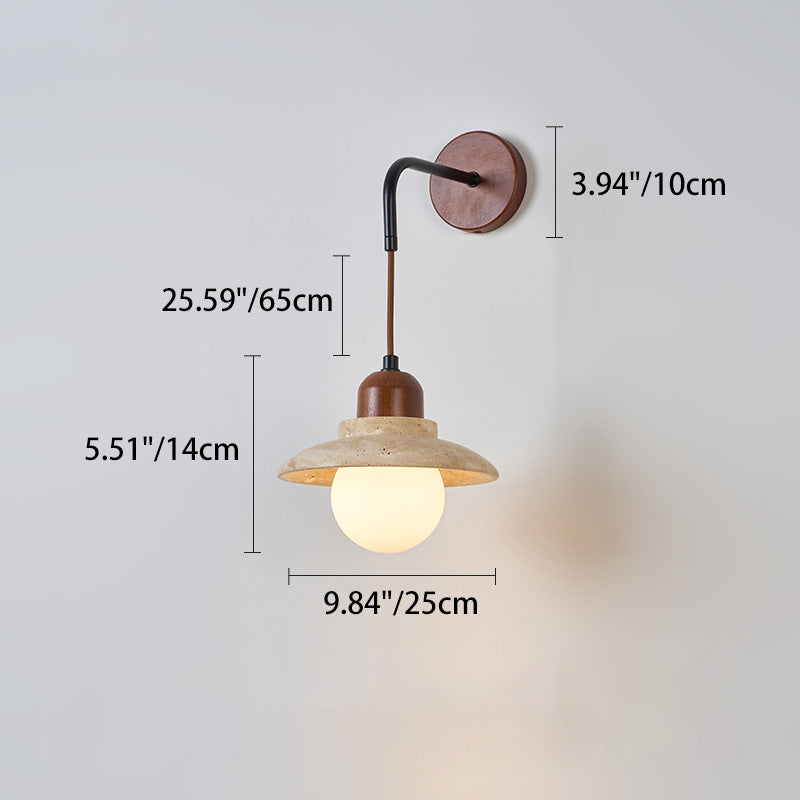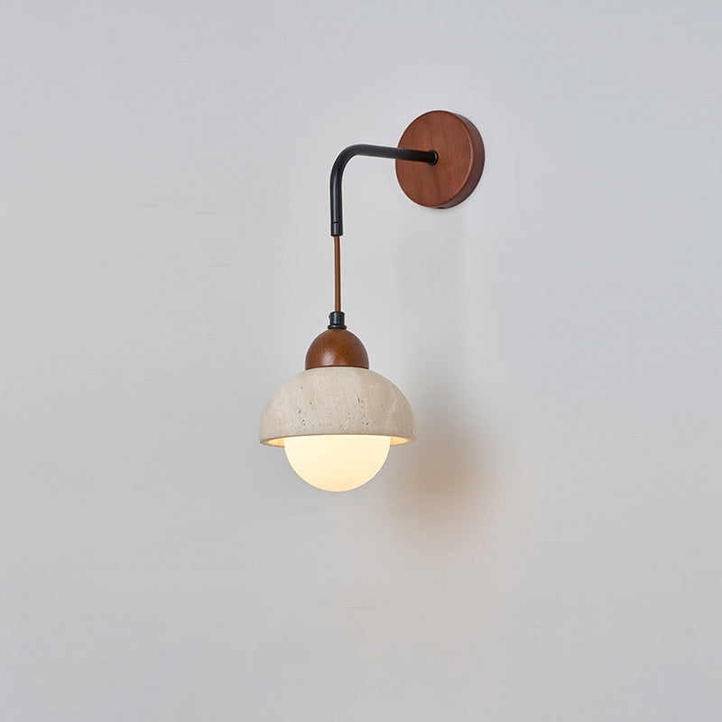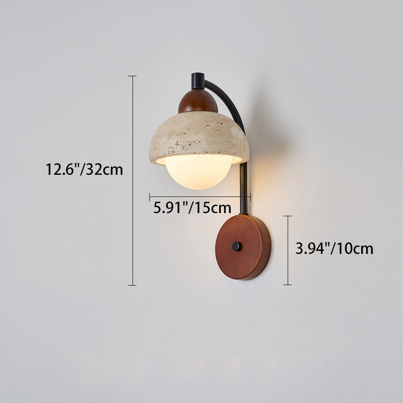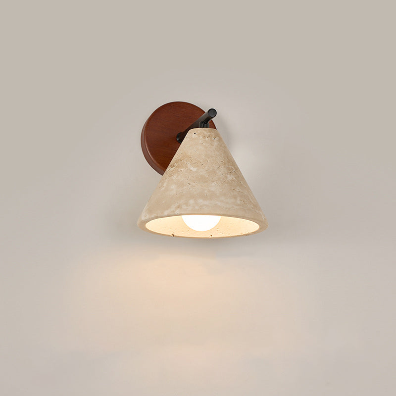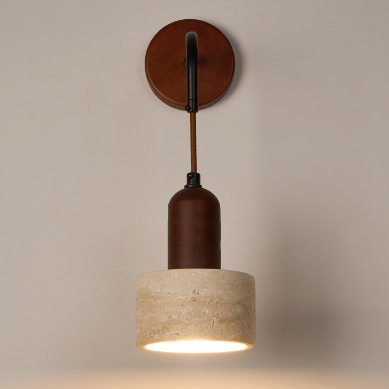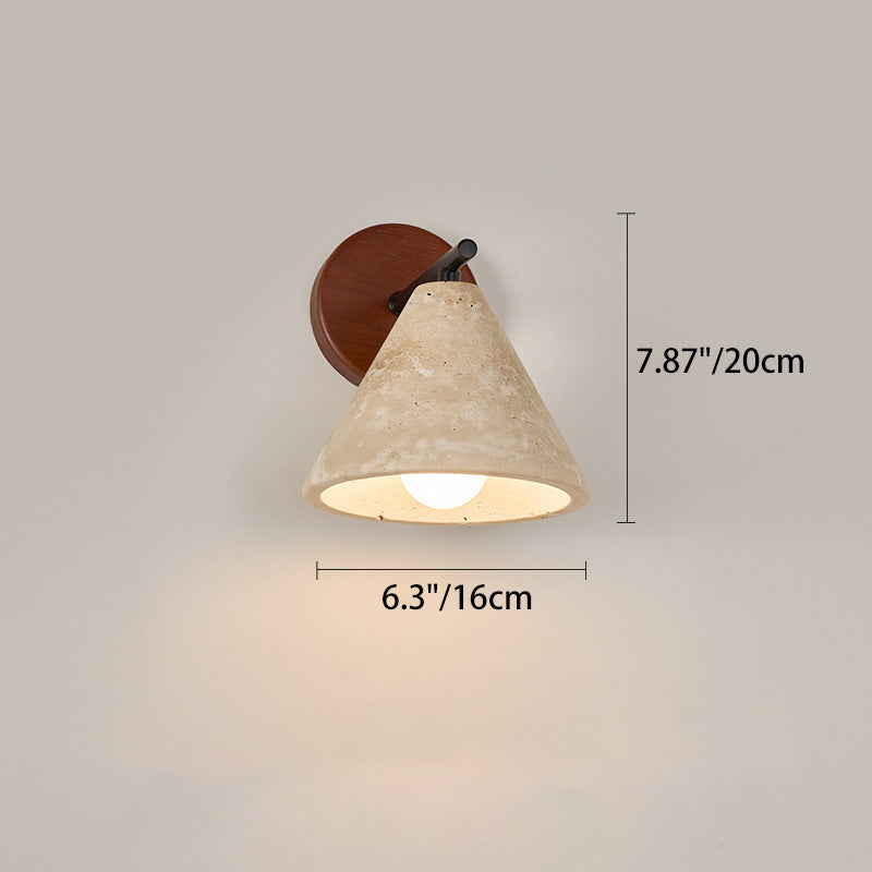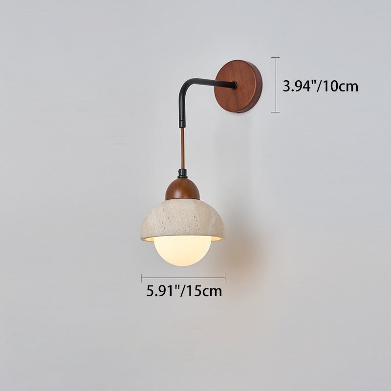 Traditional Japanese Dome Cylinder Cone Yellow Travertine Wood 1-Light Wall Sconce Lamp For Living Room