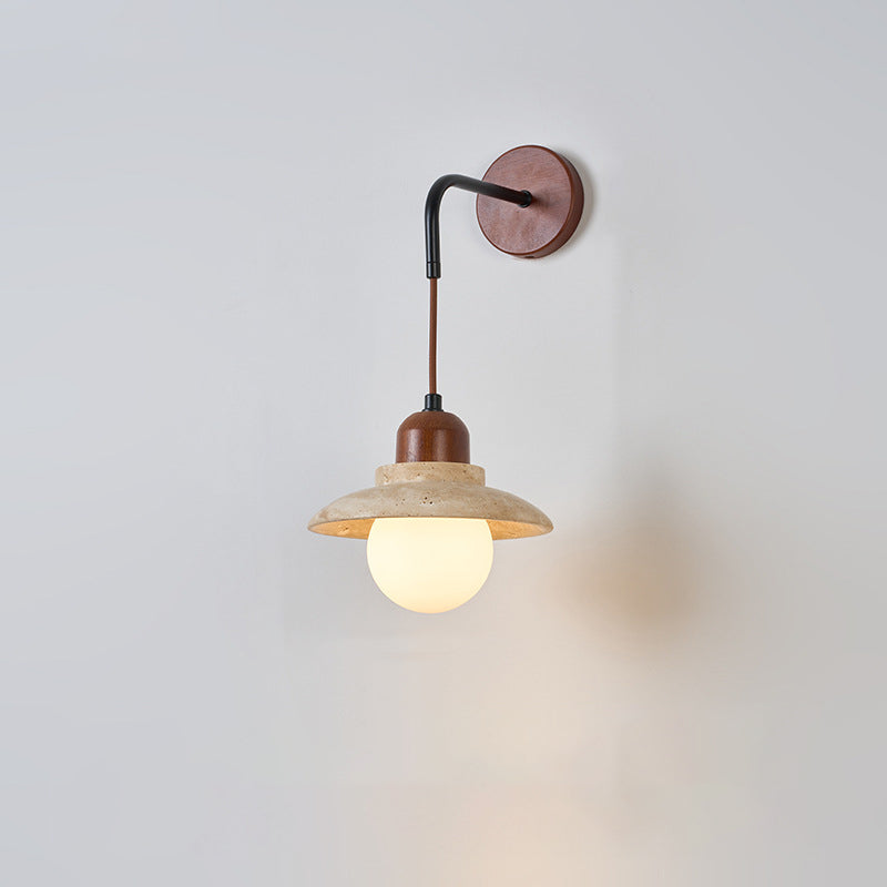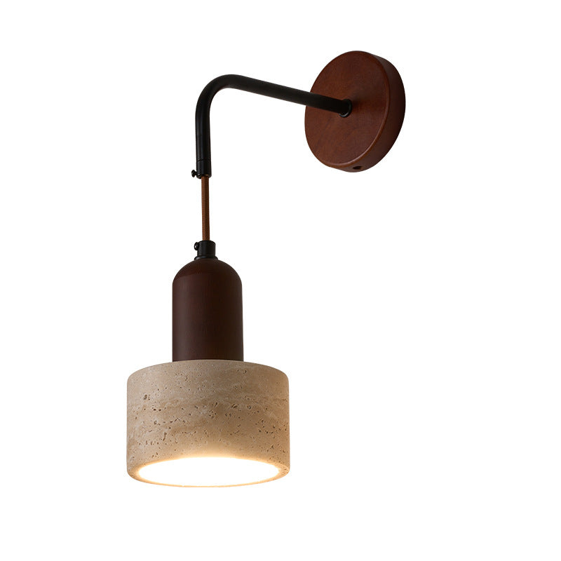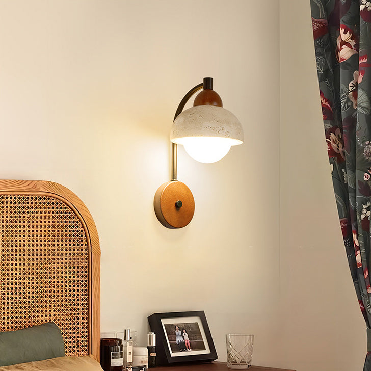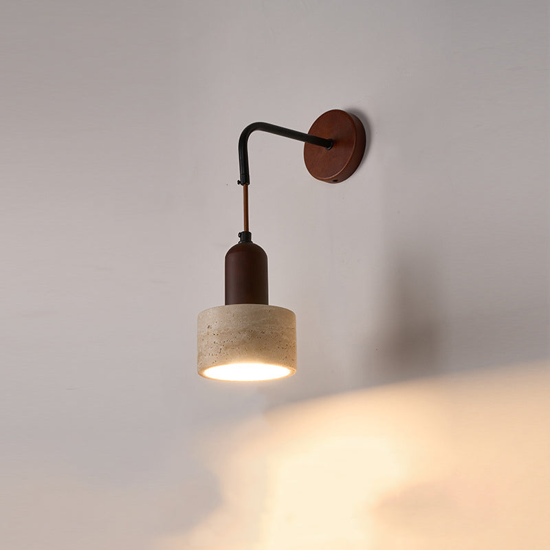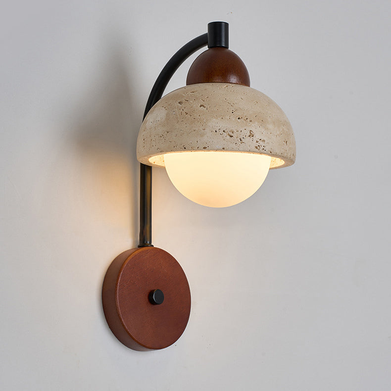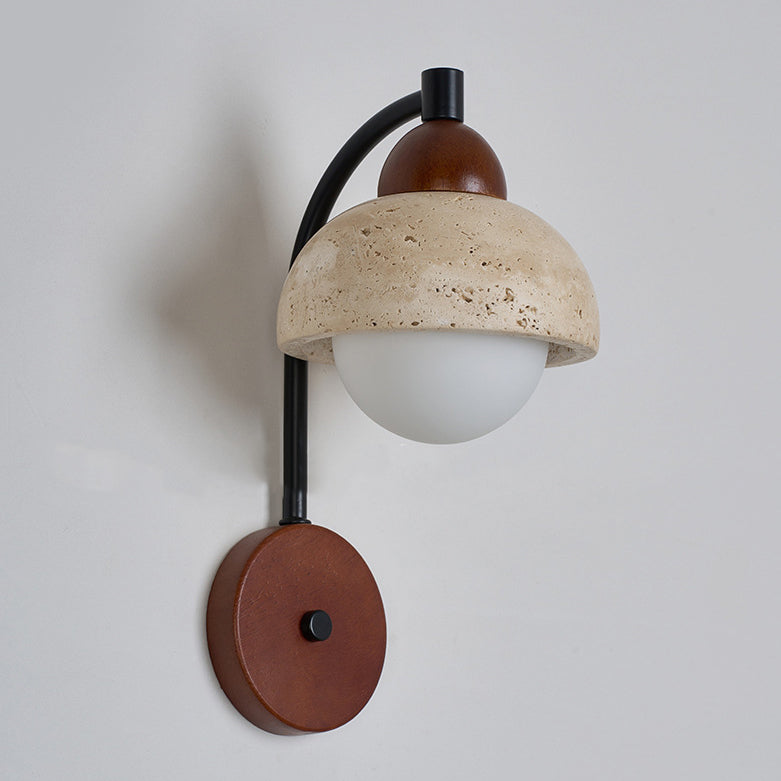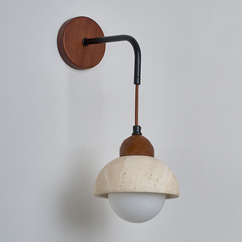 Traditional Japanese Dome Cylinder Cone Yellow Travertine Wood 1-Light Wall Sconce Lamp For Living Room