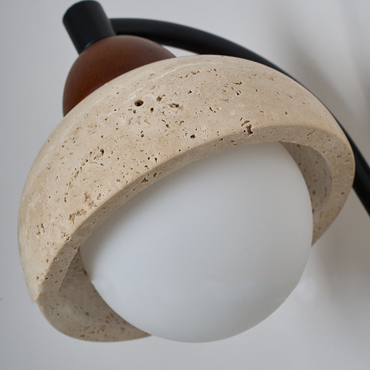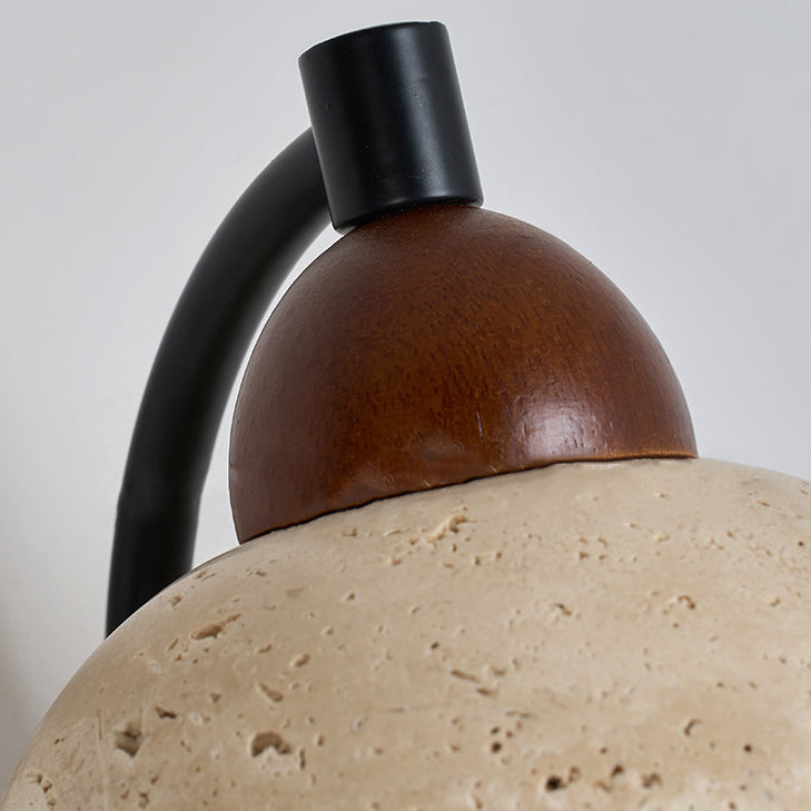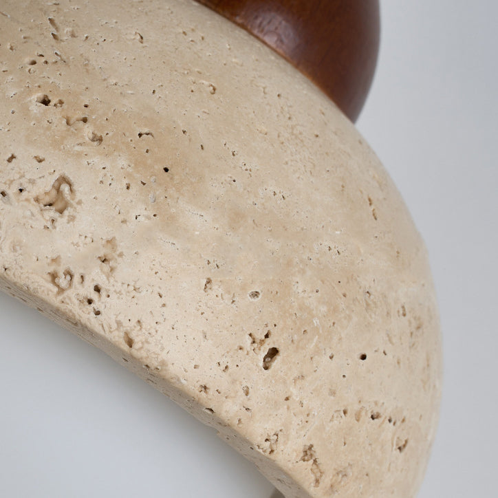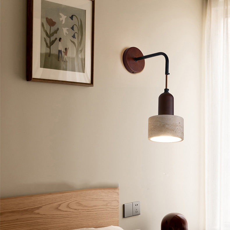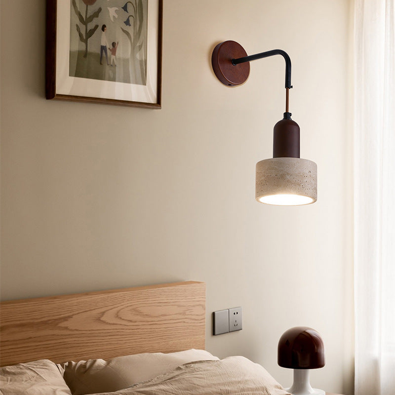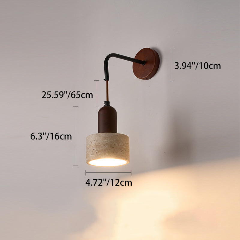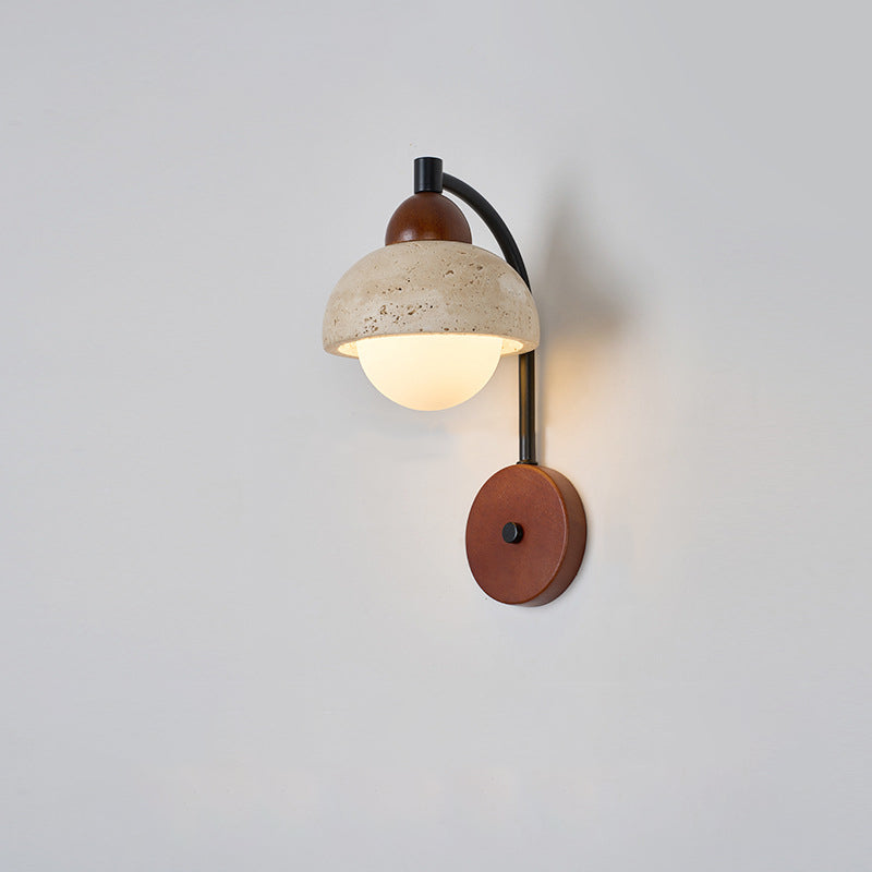 Traditional Japanese Dome Cylinder Cone Yellow Travertine Wood 1-Light Wall Sconce Lamp For Living Room