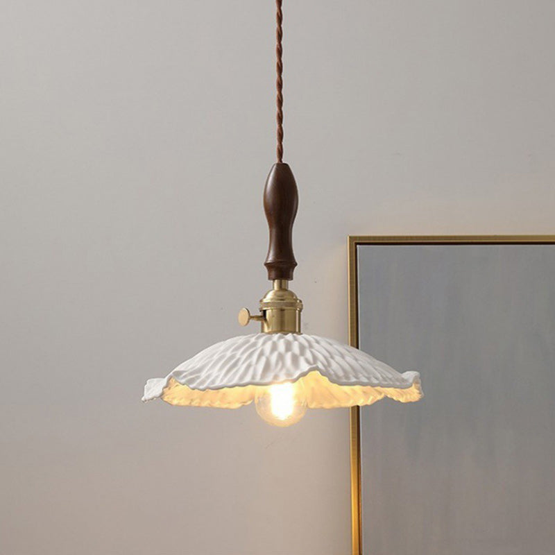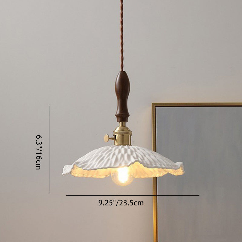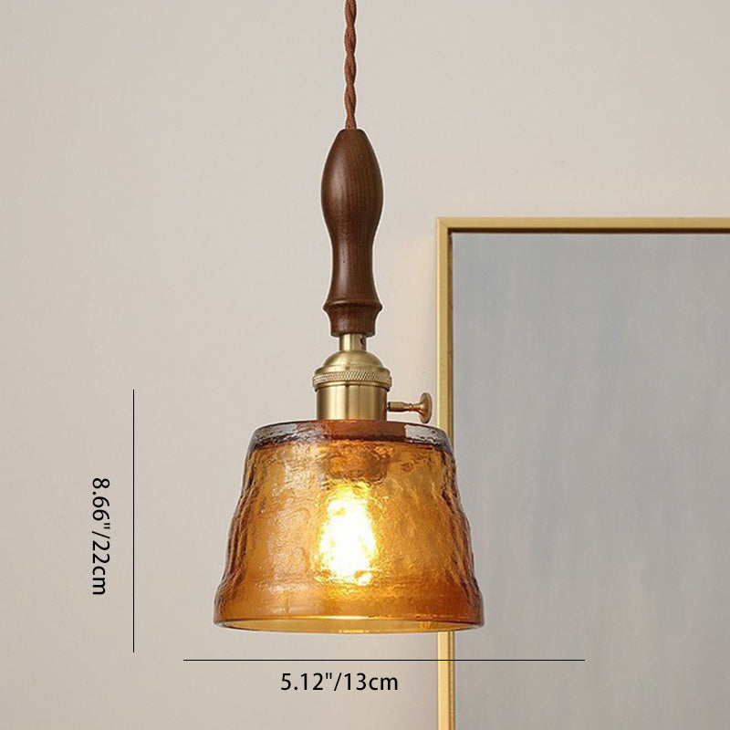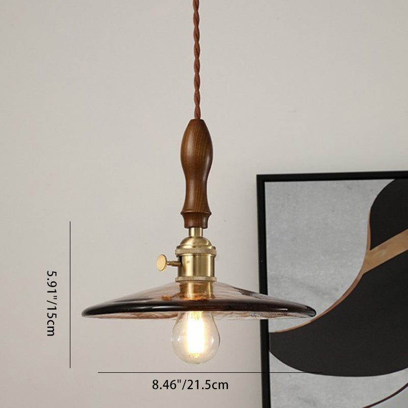 Traditional Japanese Dome Iron Wood Glass 1-Light Pendant Light For Living Room