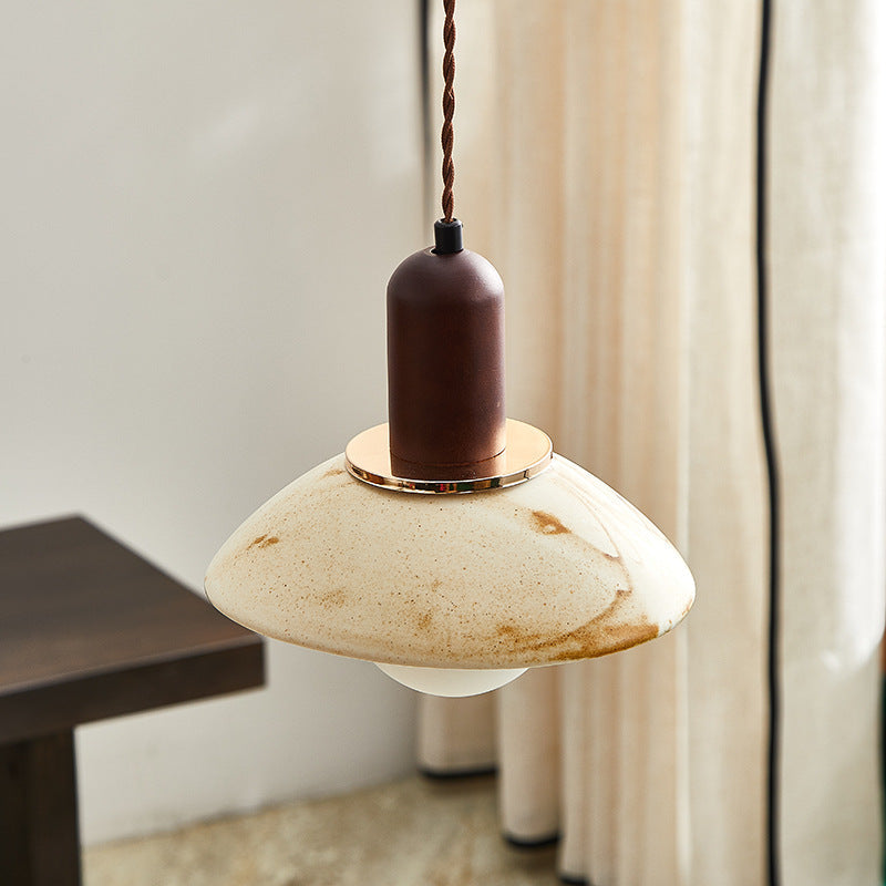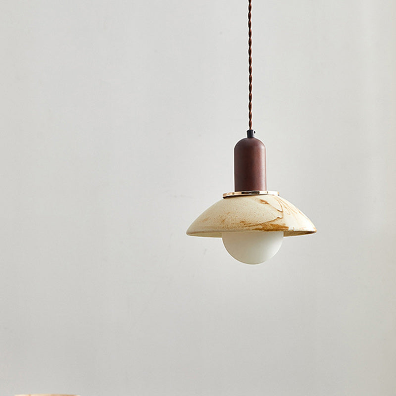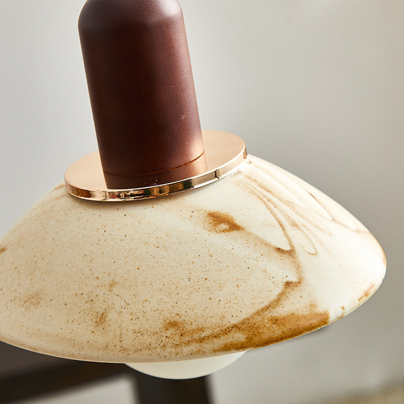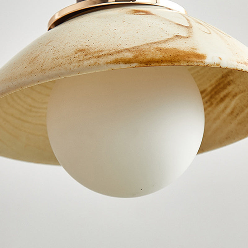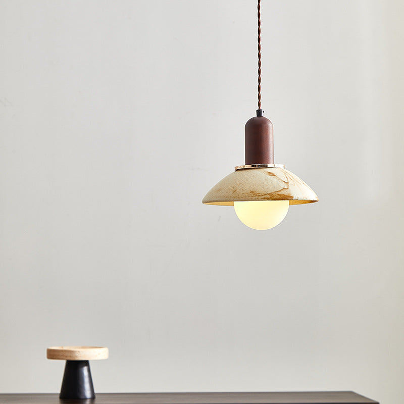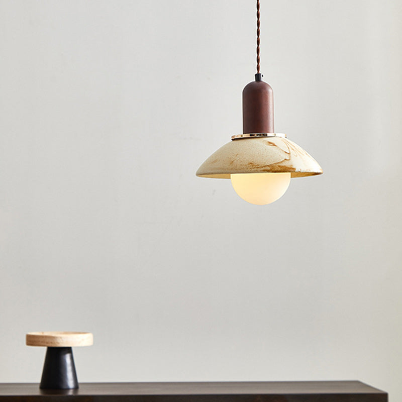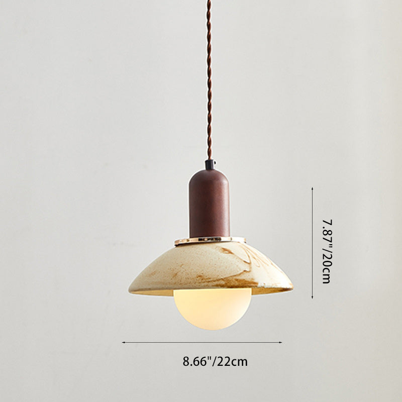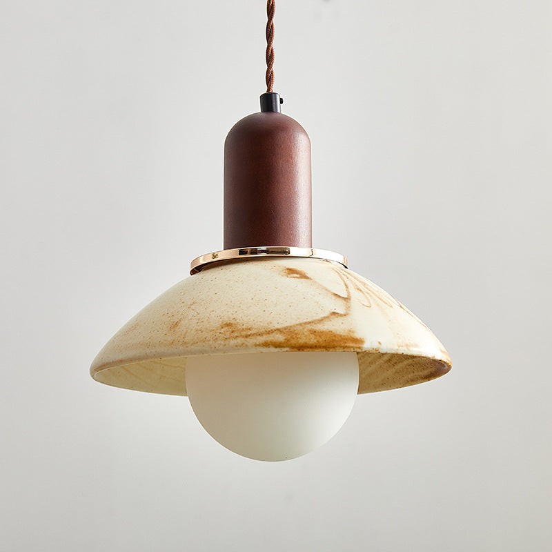 Traditional Japanese Dome Wood Ceramics 1-Light Pendant Light For Living Room