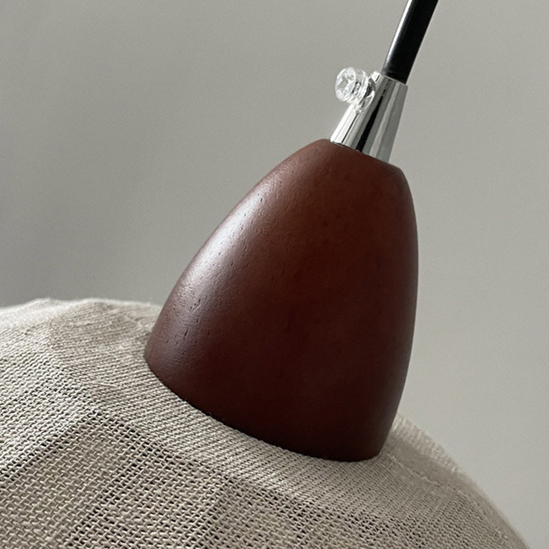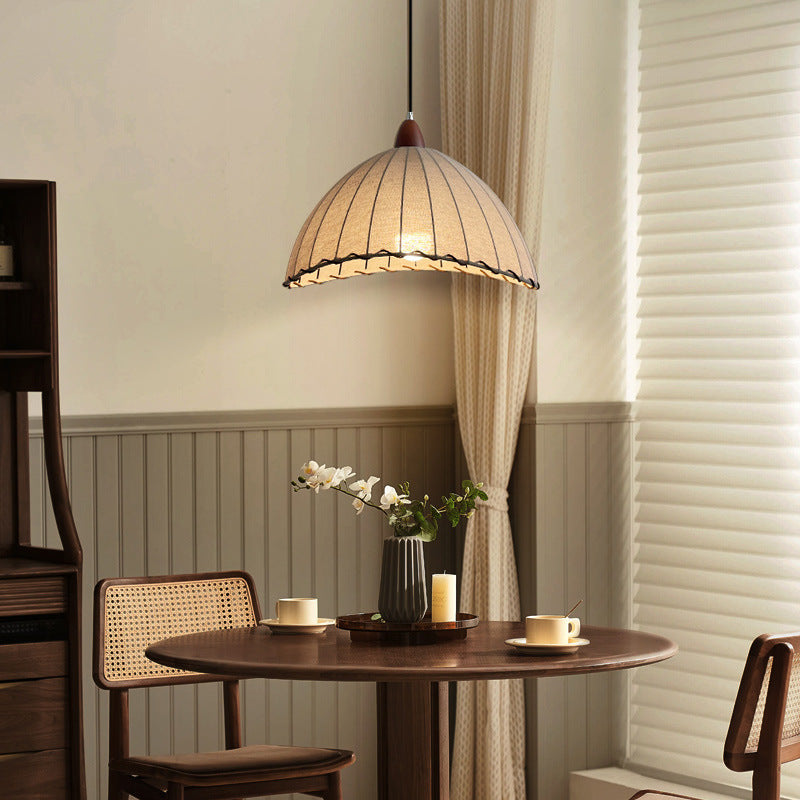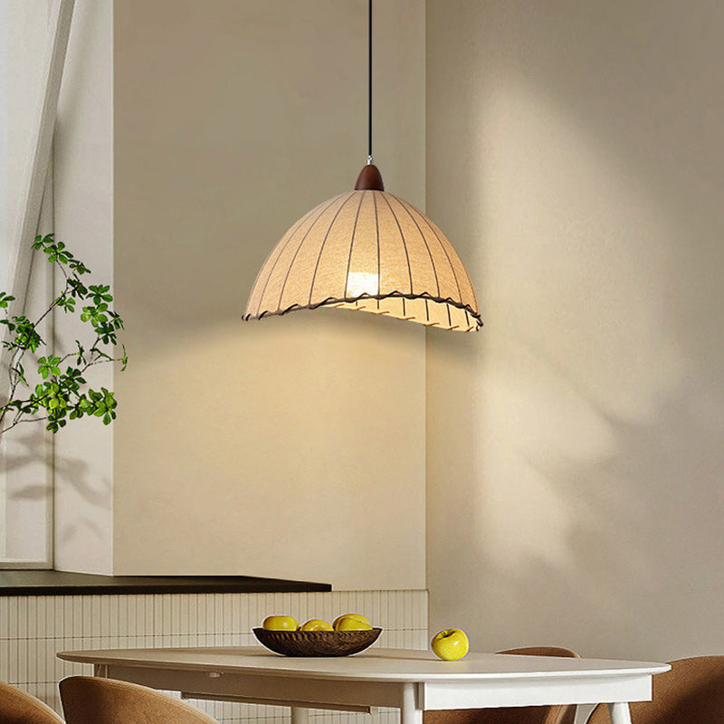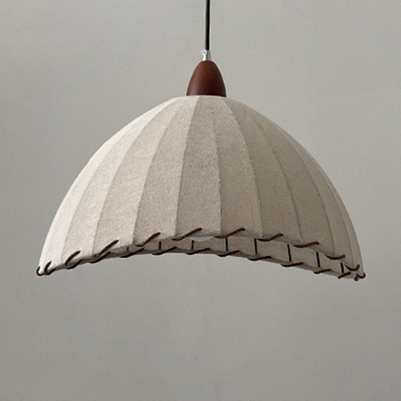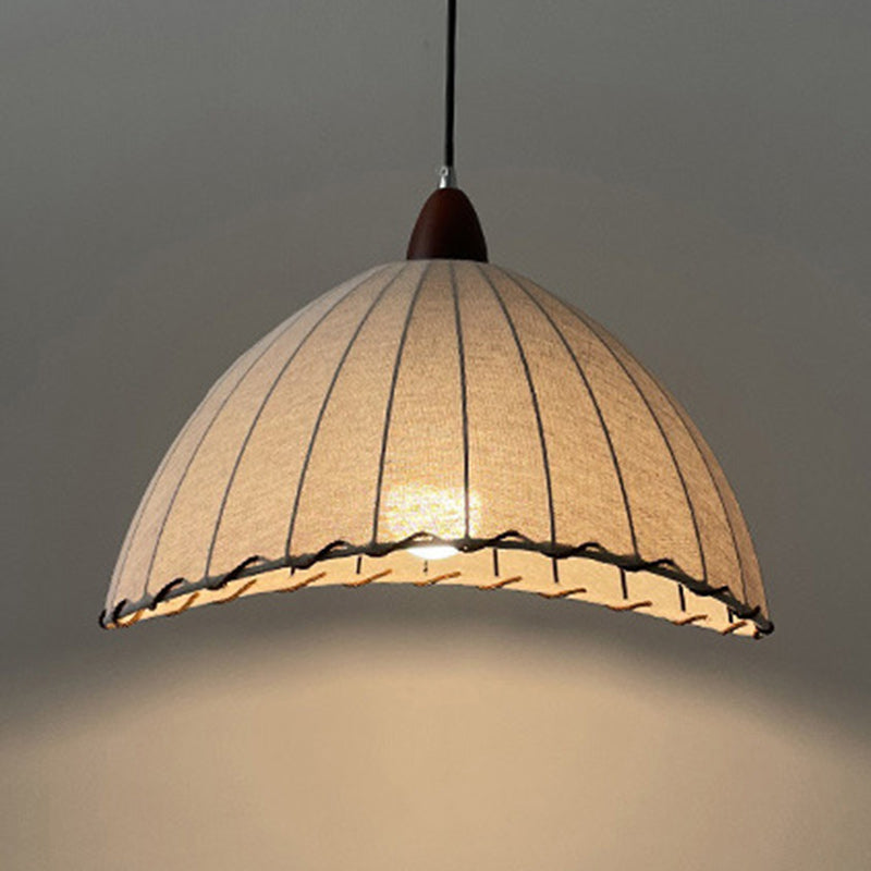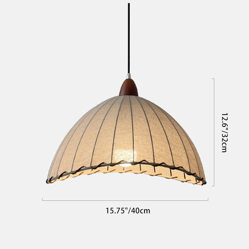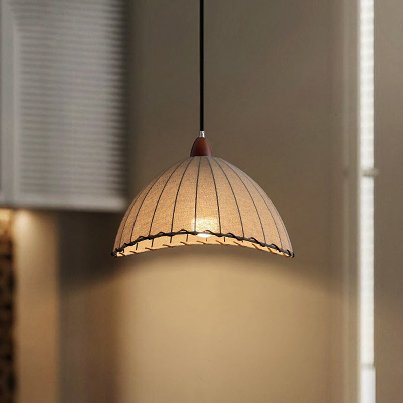 Traditional Japanese Dome Wood Fabric 1-Light Pendant Light For Living Room