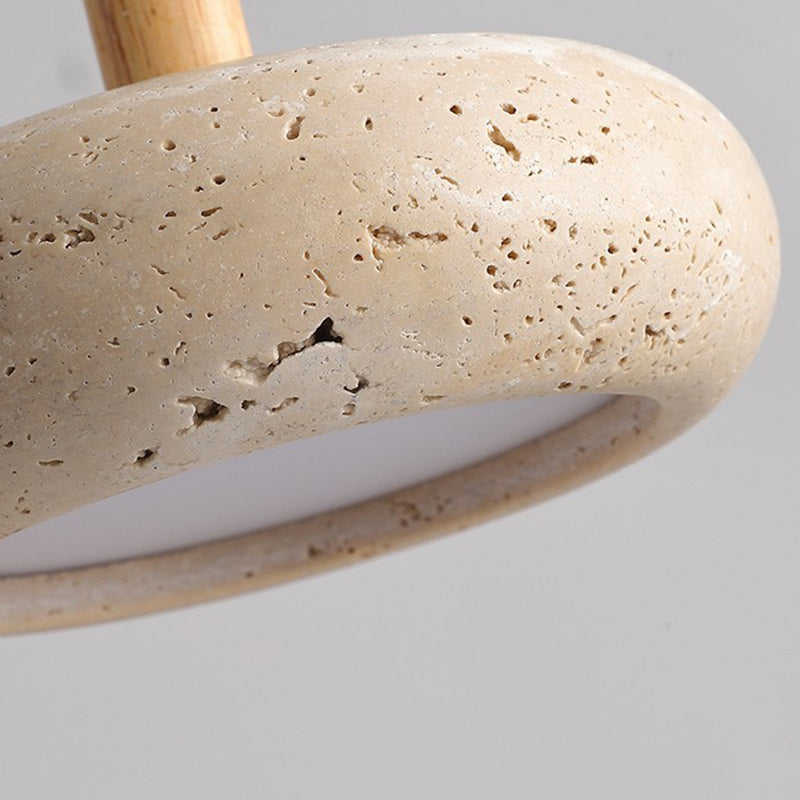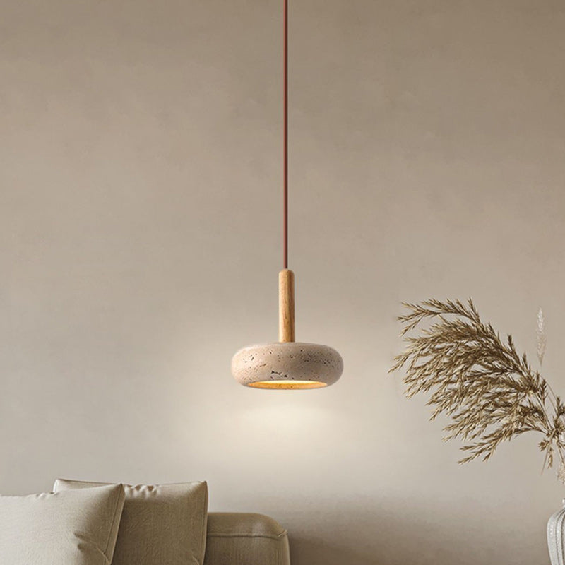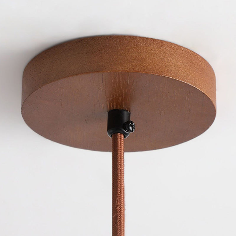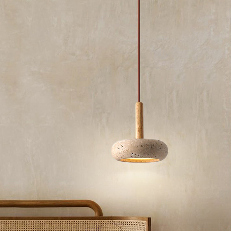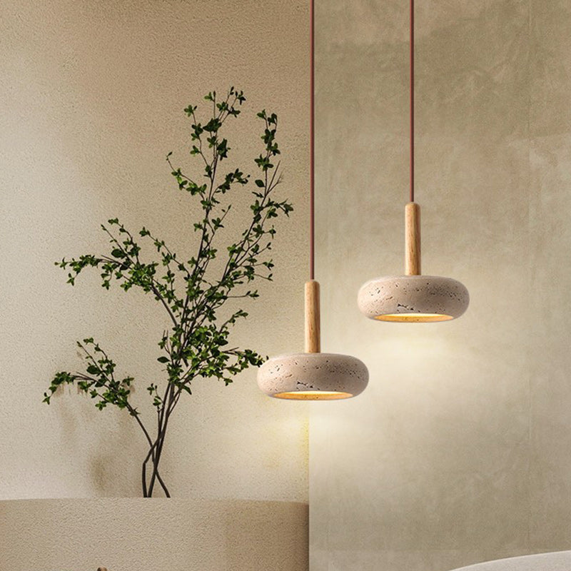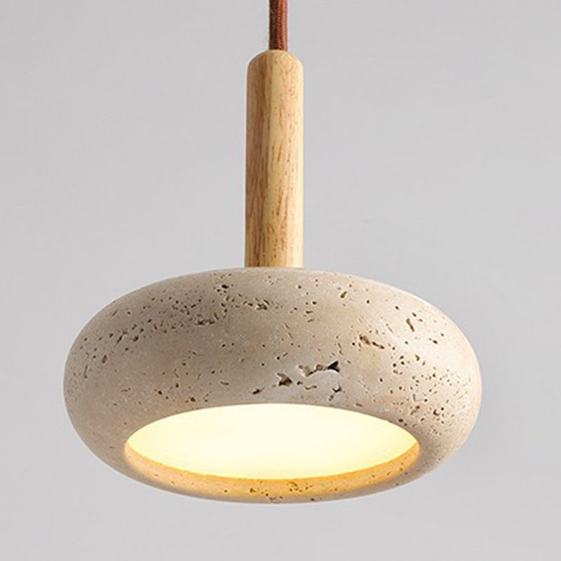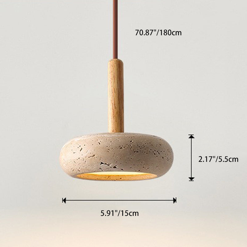 Traditional Japanese Dome Wood Stone LED Pendant Light For Living Room