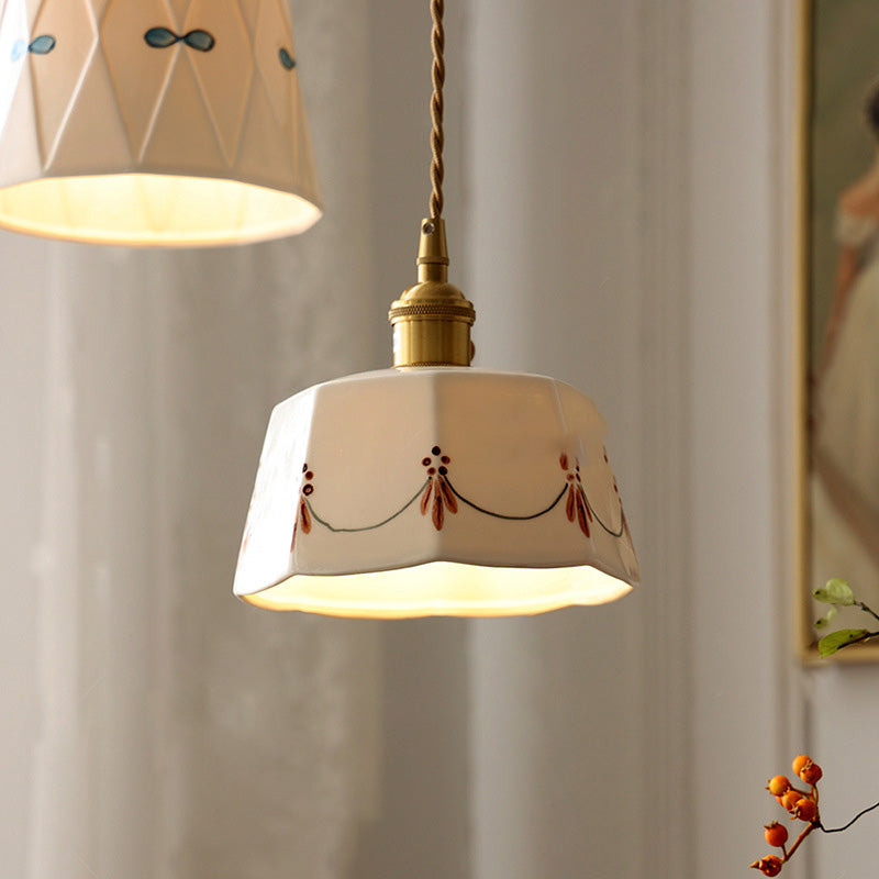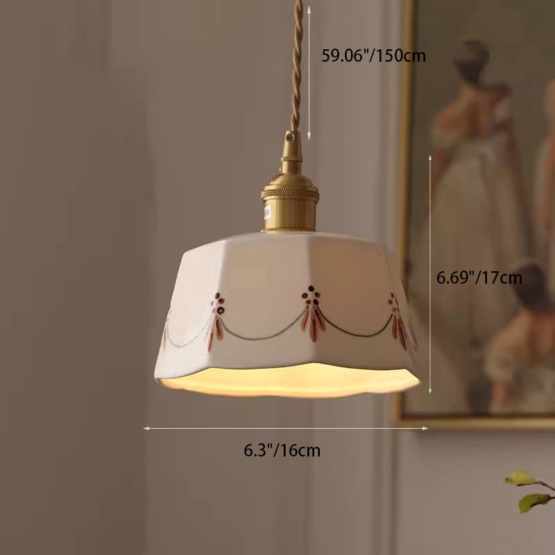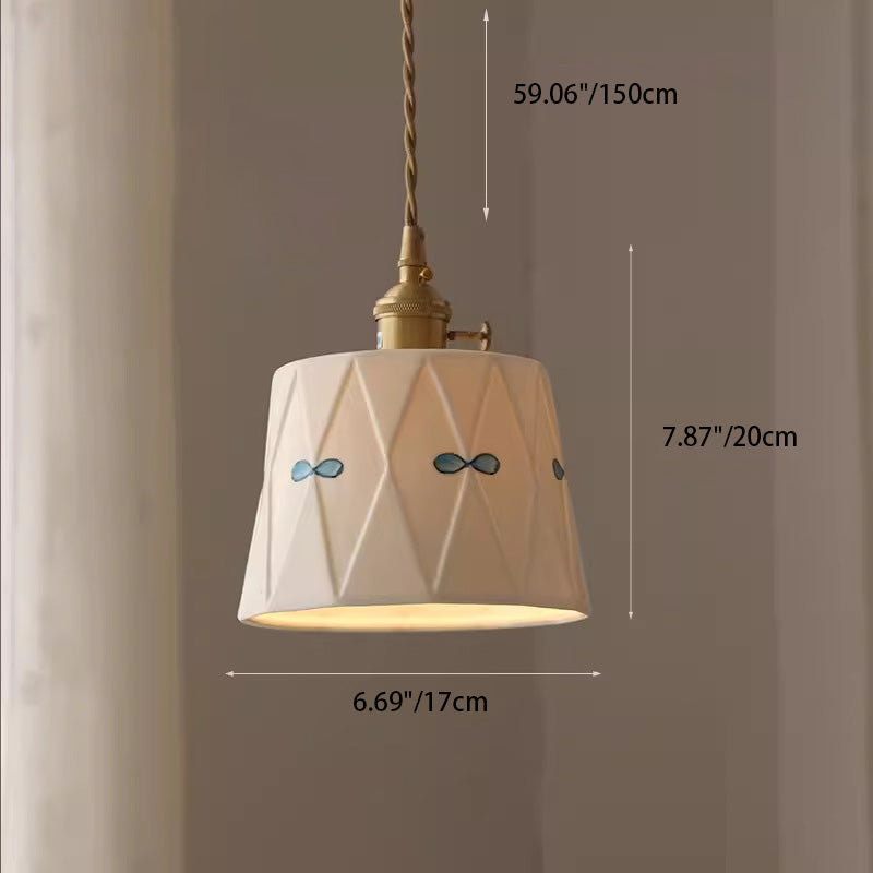 Traditional Japanese Drum Ceramics Copper 1-Light Pendant Light For Living Room