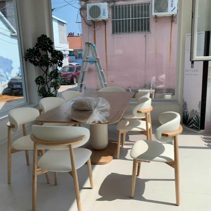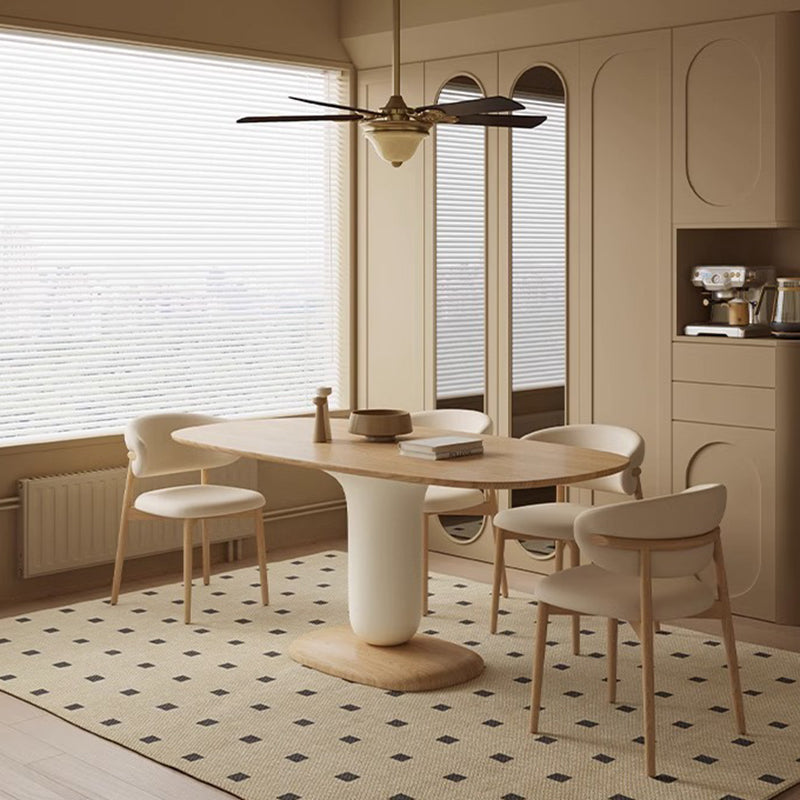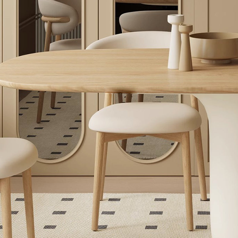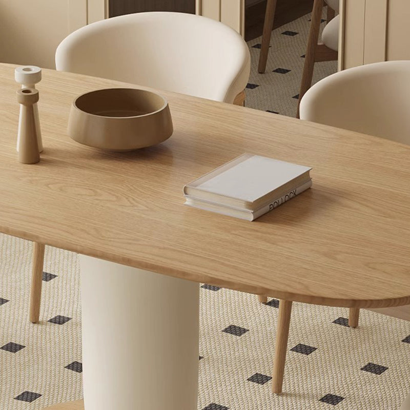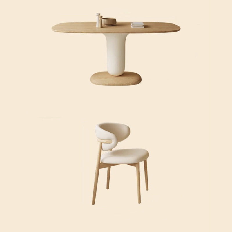 Traditional Japanese Elliptical Ash Wood Oaken Faux Leather Dining Table & Chair Set For 4/6 Seats