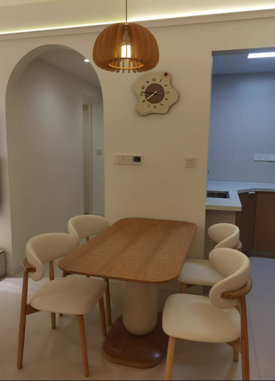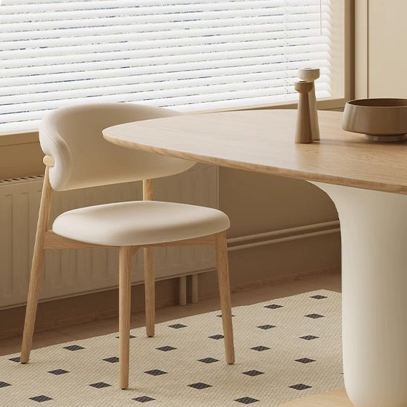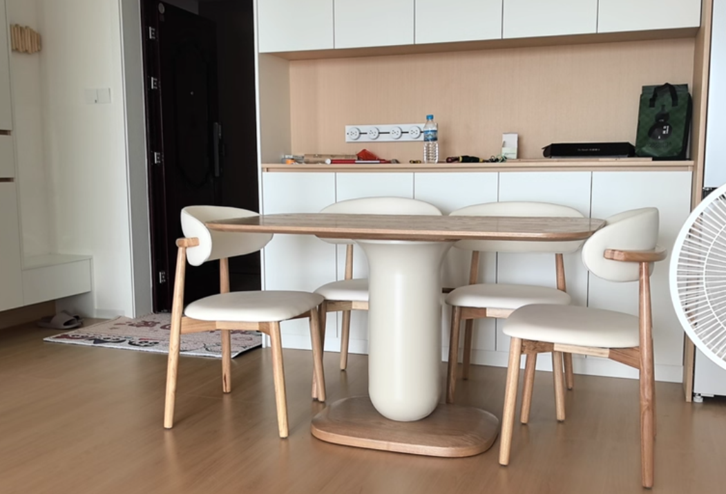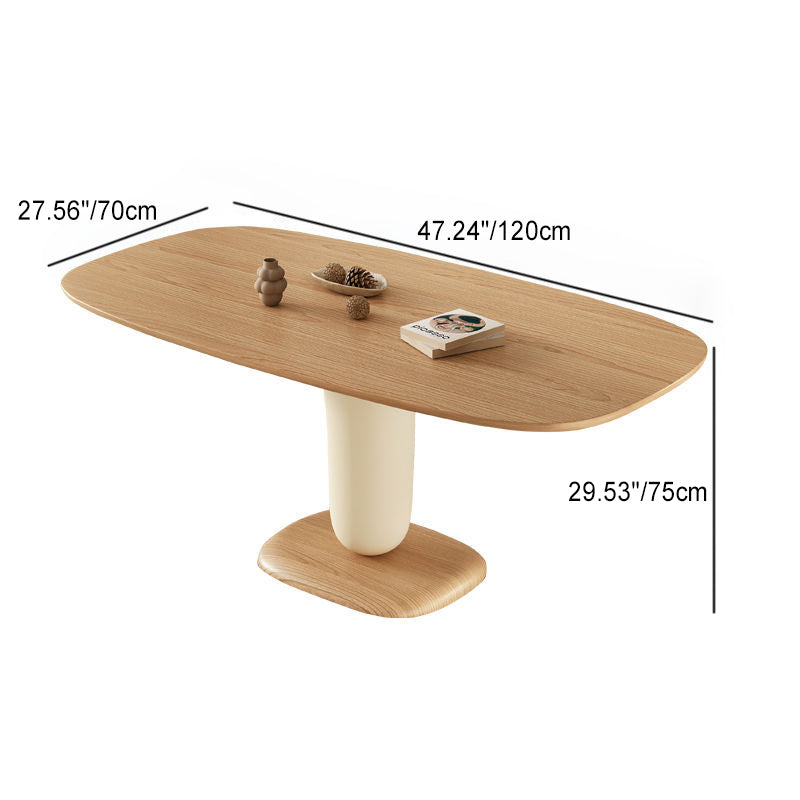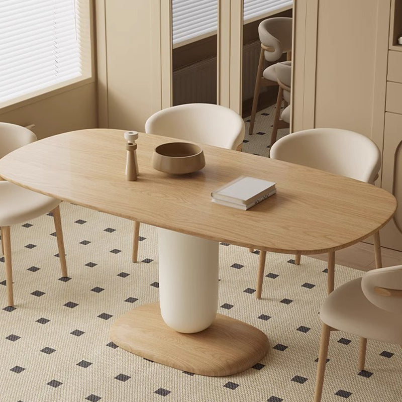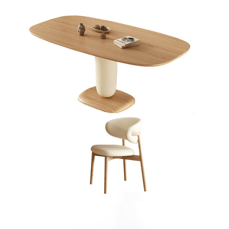 Traditional Japanese Elliptical Ash Wood Oaken Faux Leather Dining Table & Chair Set For 4/6 Seats