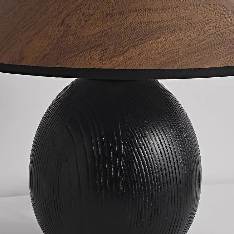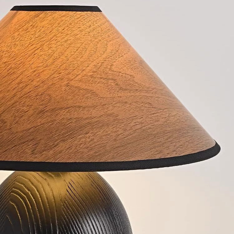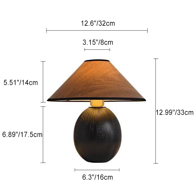 Traditional Japanese Fabric Ash Wood Conic Elliptical 1-Light Table Lamp For Bedside