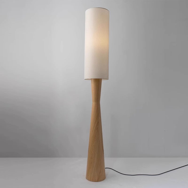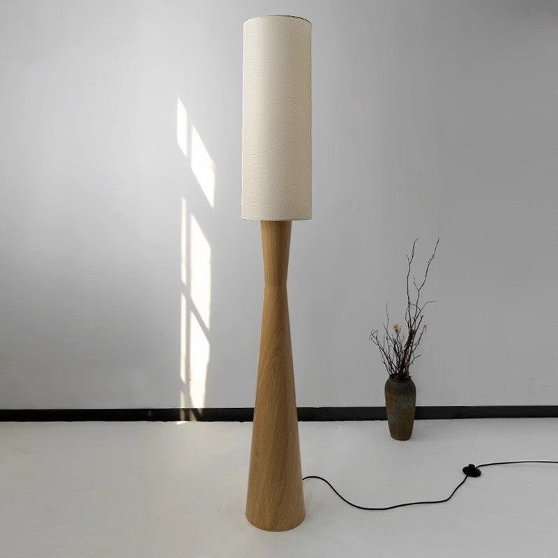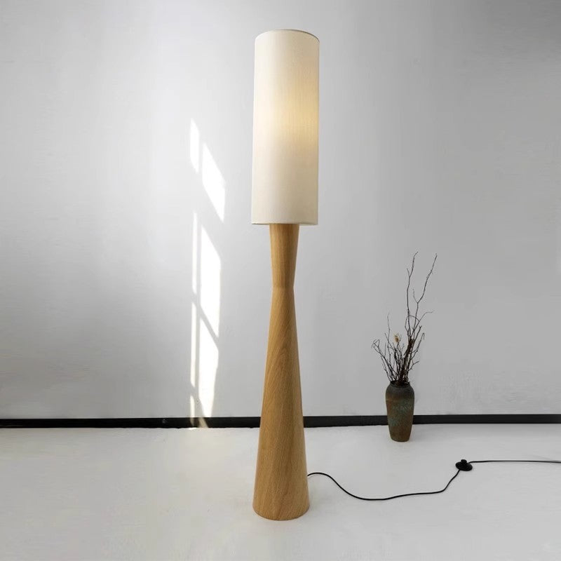 Traditional Japanese Fabric Cylinder Shade Iron Column 1-Light Standing Floor Lamp For Bedroom