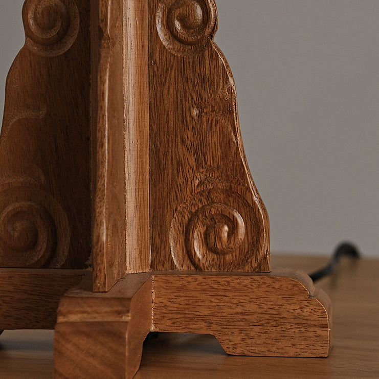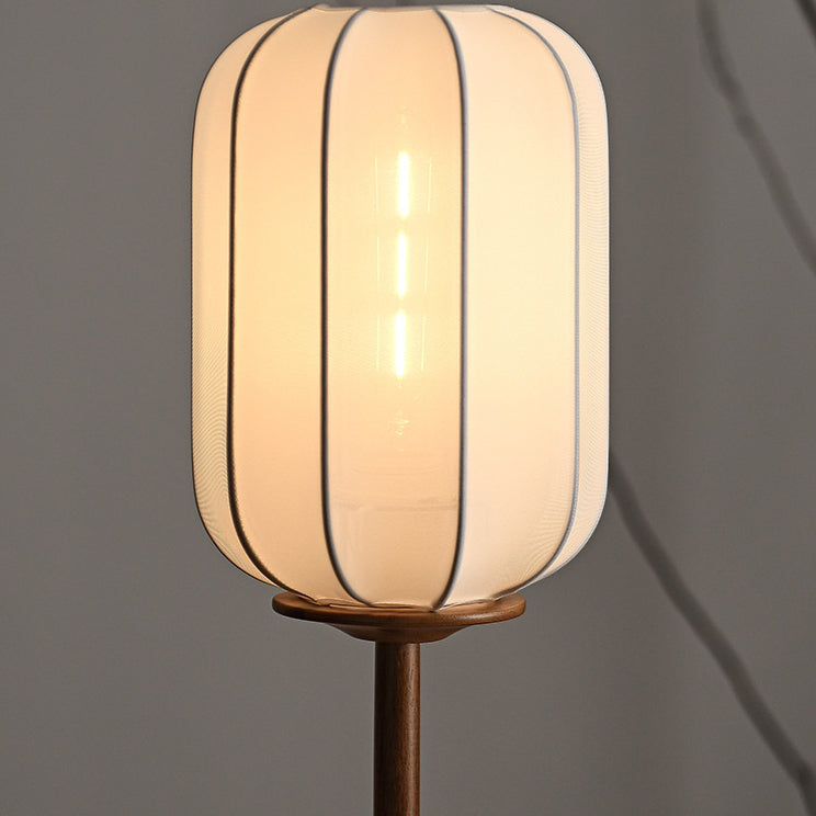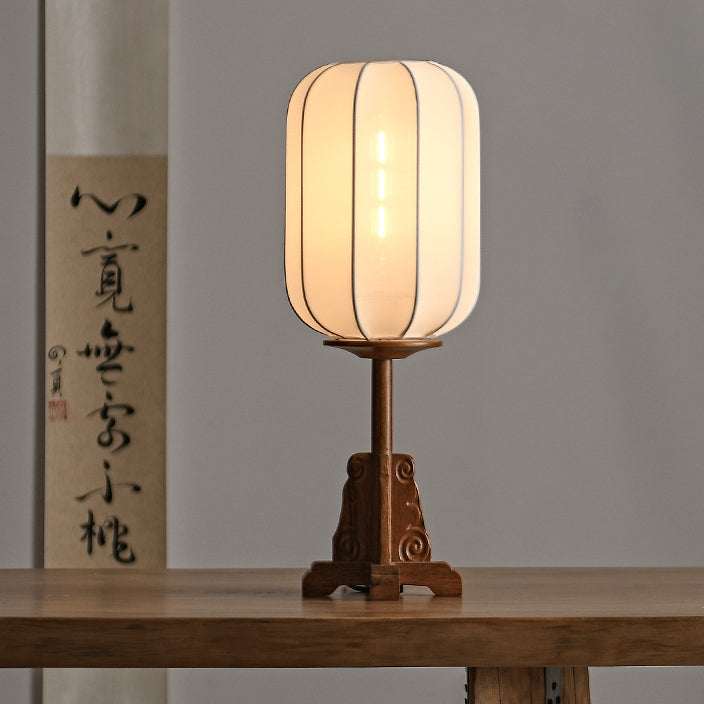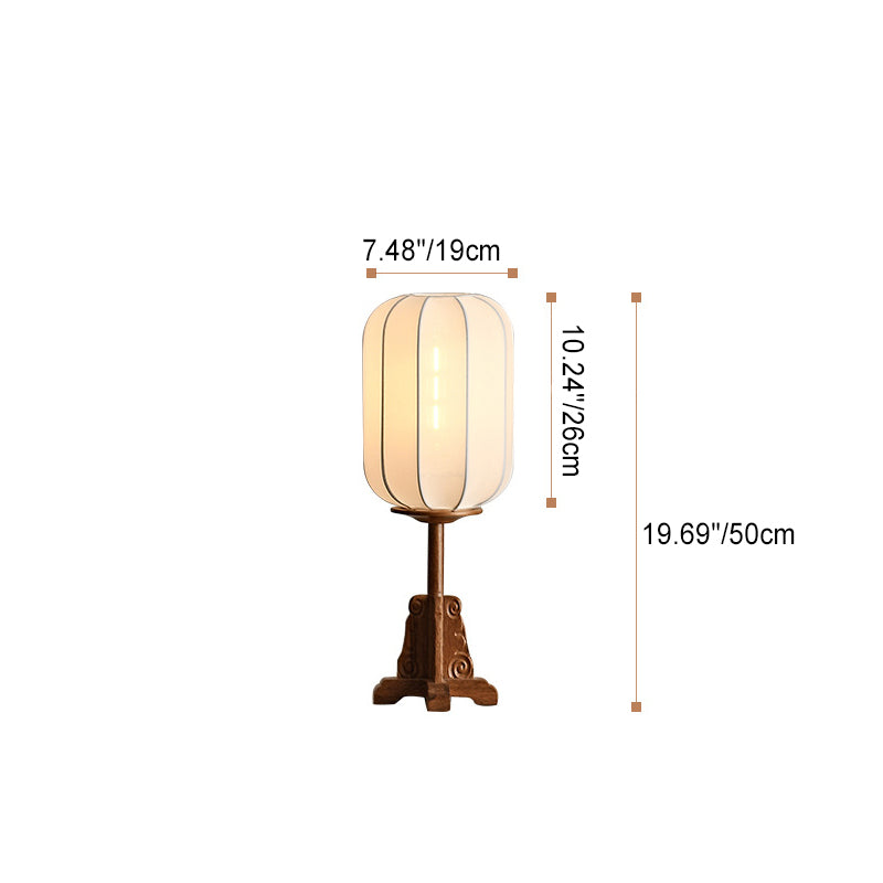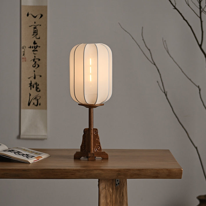 Traditional Japanese Fabric Cylinder Shade Wood Base 1-Light Table Lamp For Bedroom