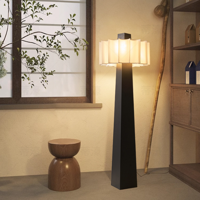 Traditional Japanese Fabric Lampshade Hardware Iron 4 - Light Standing Floor Lamp For Living Room