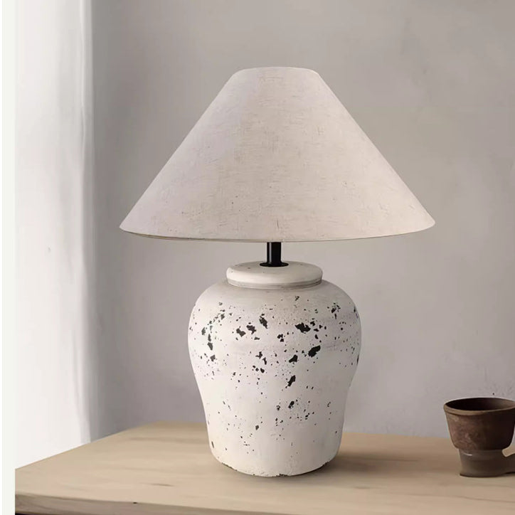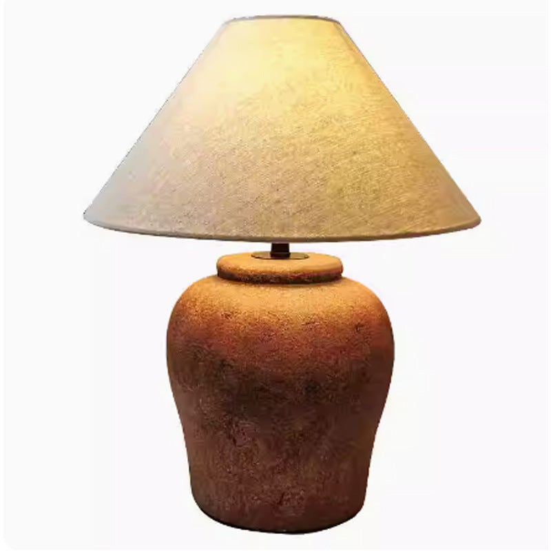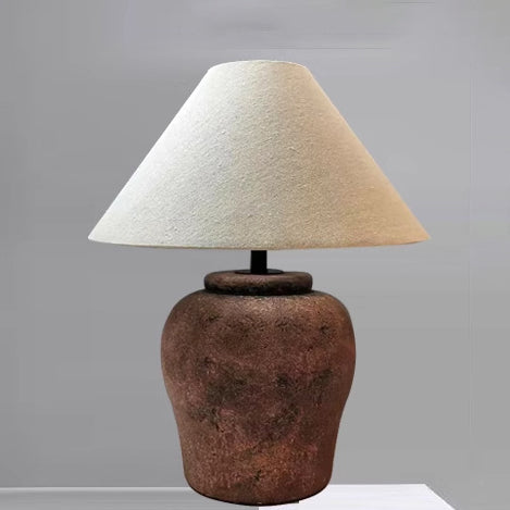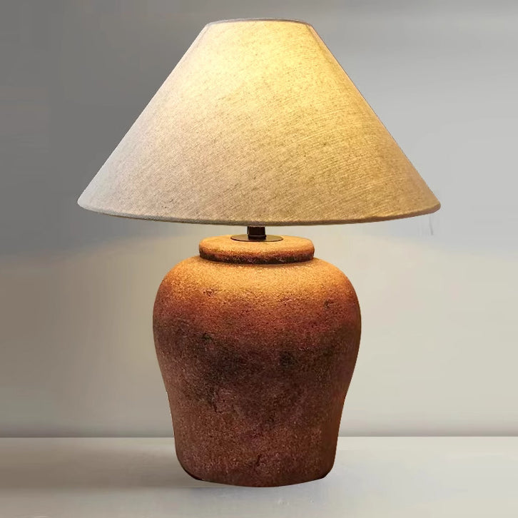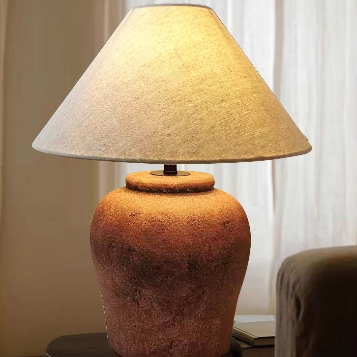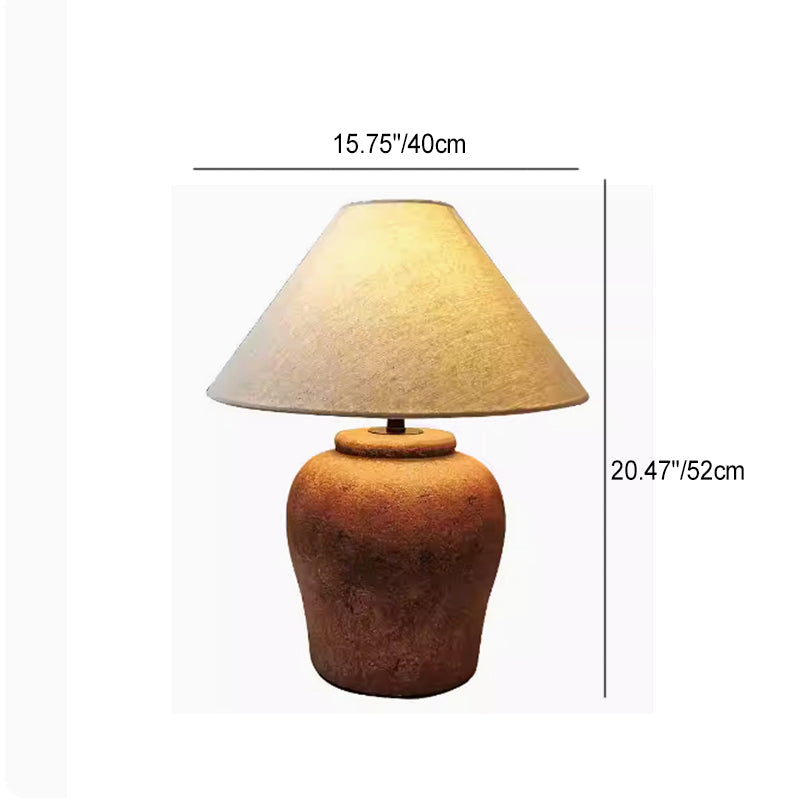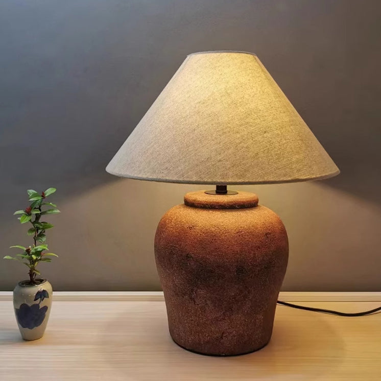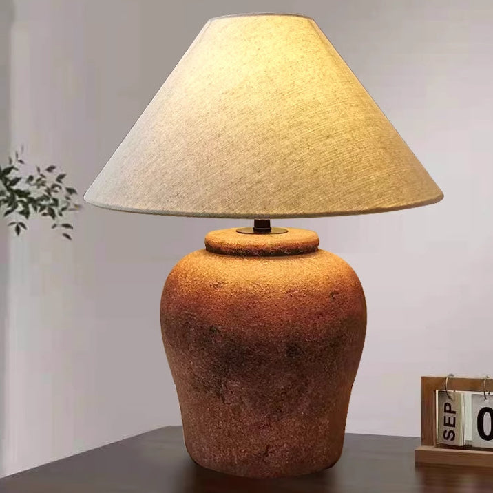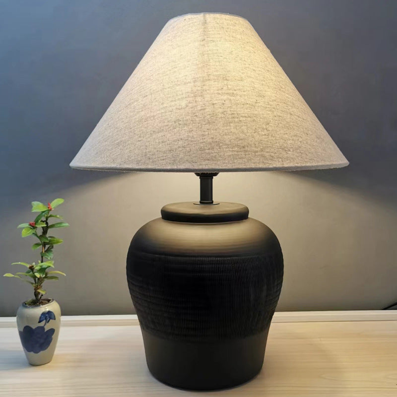 Traditional Japanese Frustum Cone Ceramic Fabric 1-Light Table Lamp For Bedroom