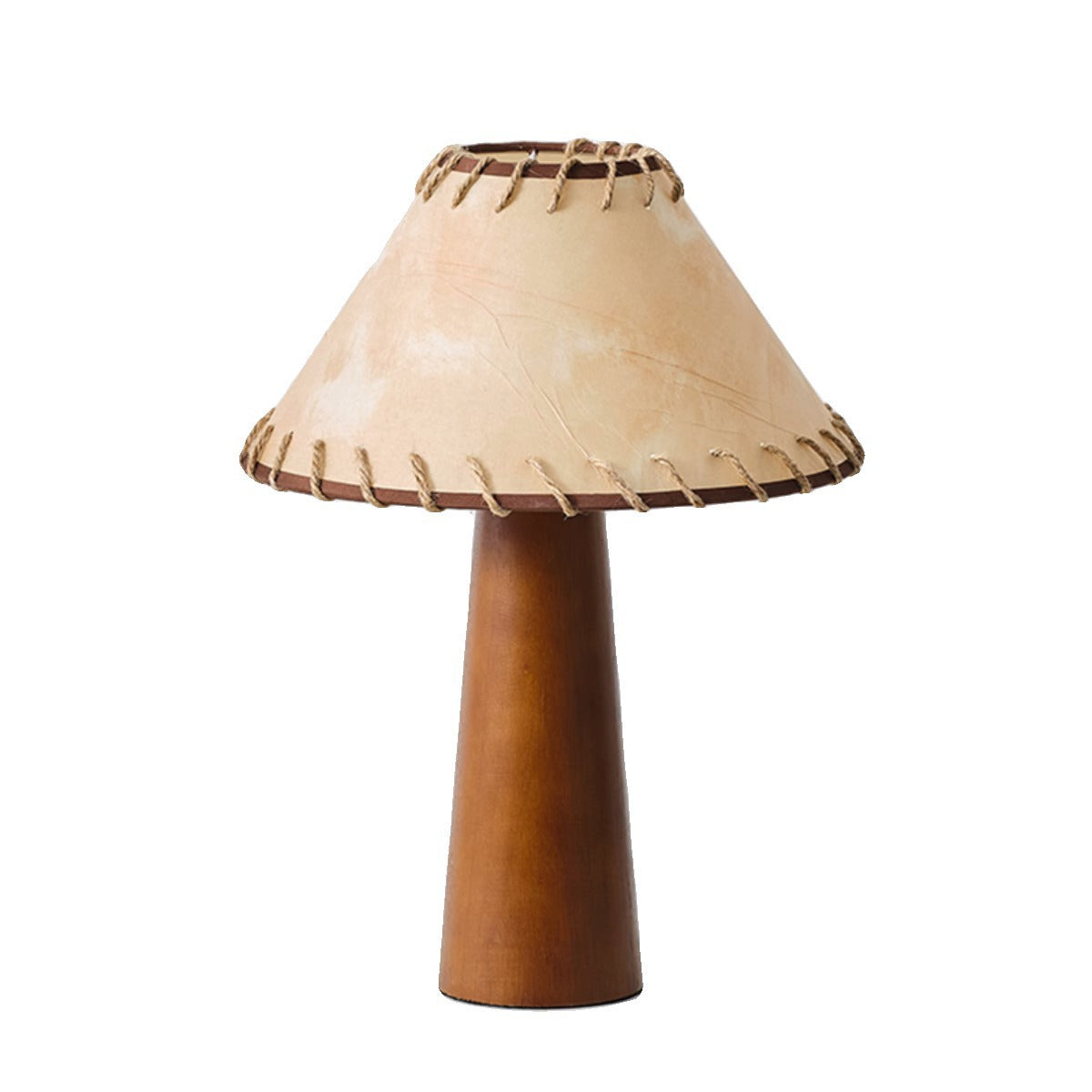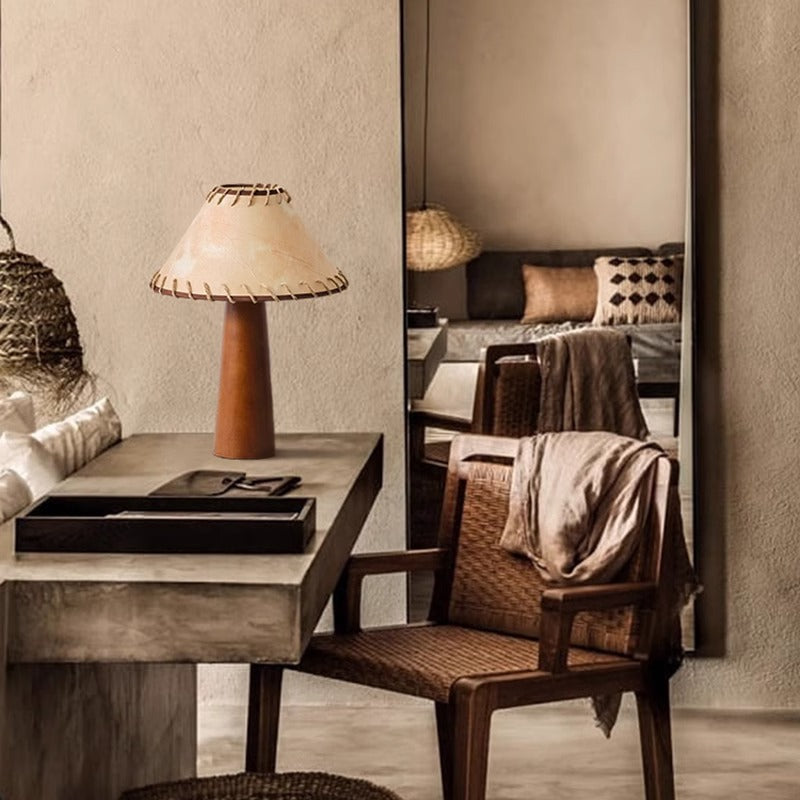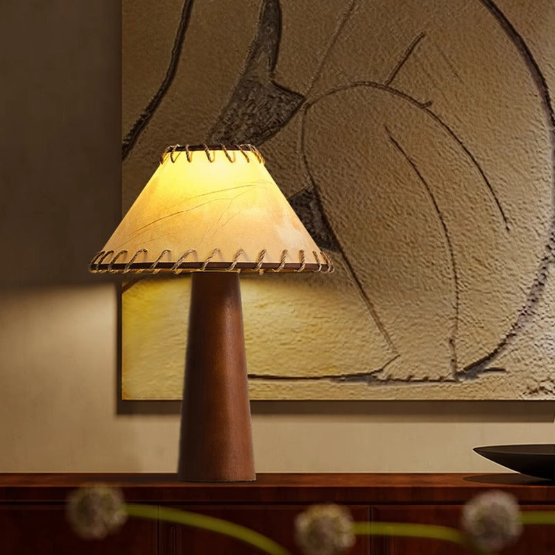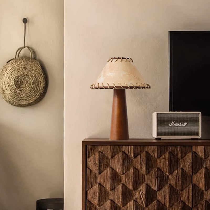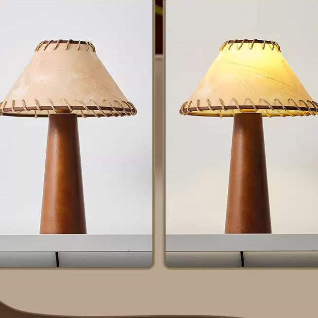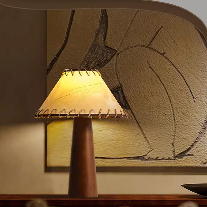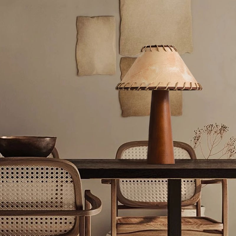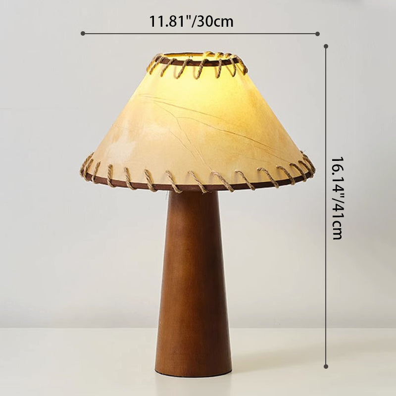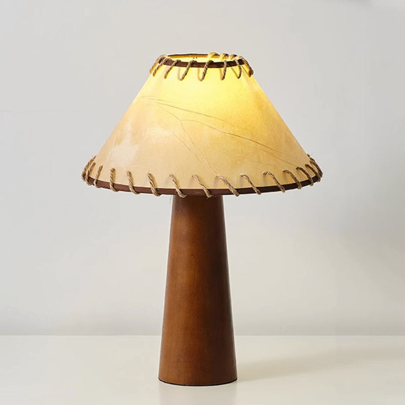 Traditional Japanese Frustum Cone Rubberwood Handmade Paper 1-Light Table Lamp For Bedroom