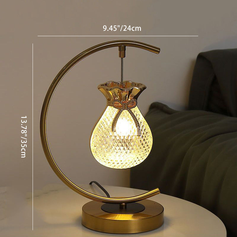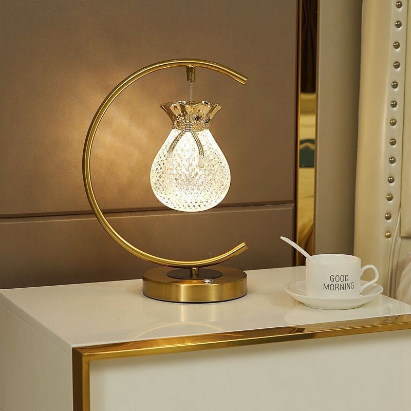 Traditional Japanese Fukubukuro Circle Metal Acrylic LED Table Lamp For Bedroom