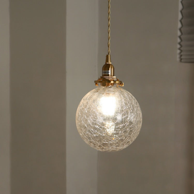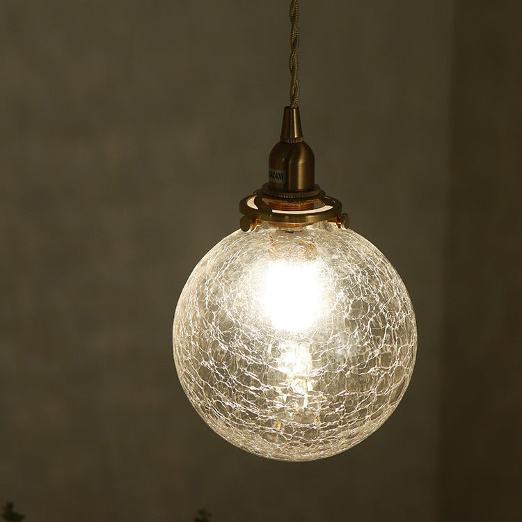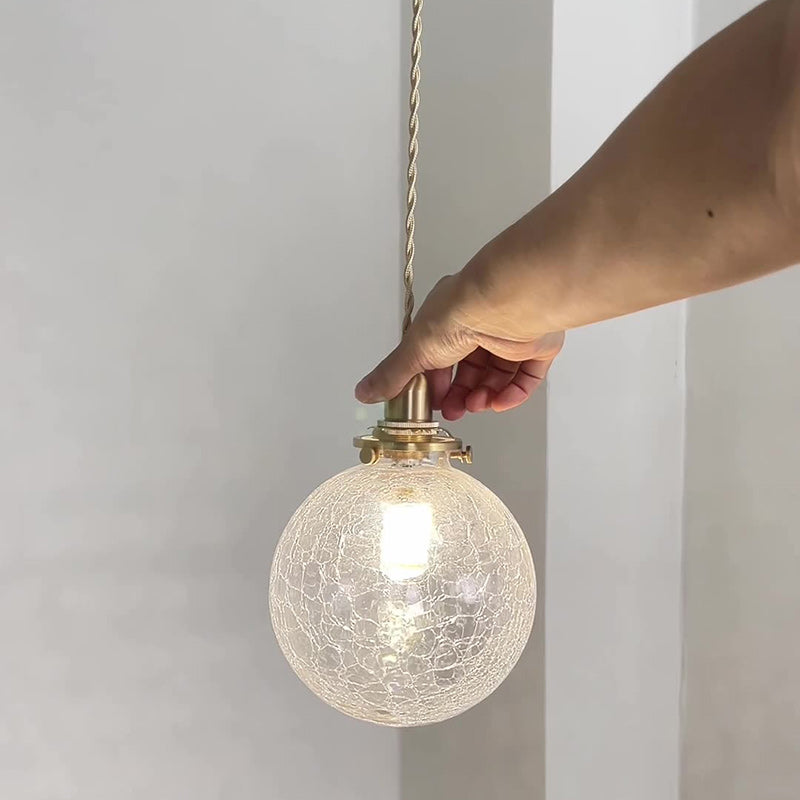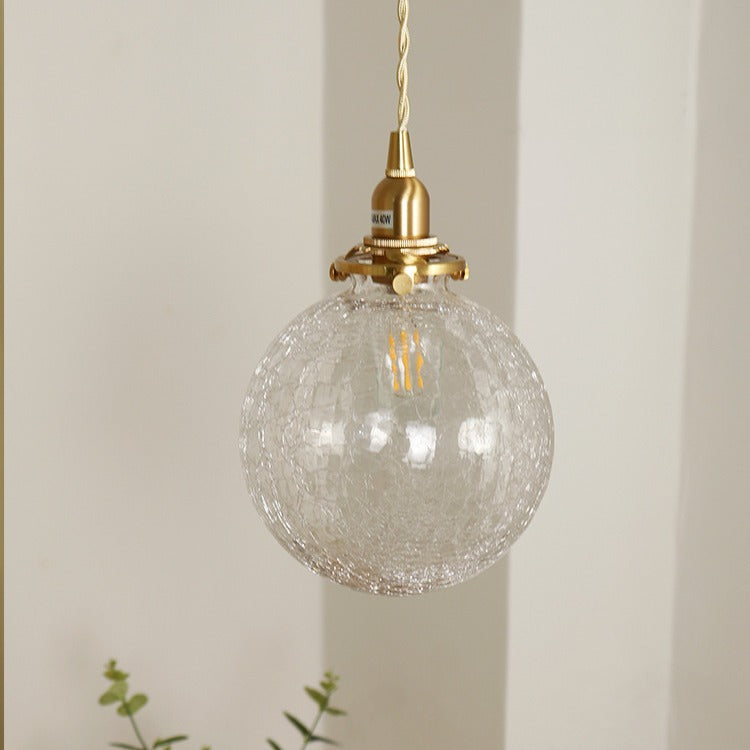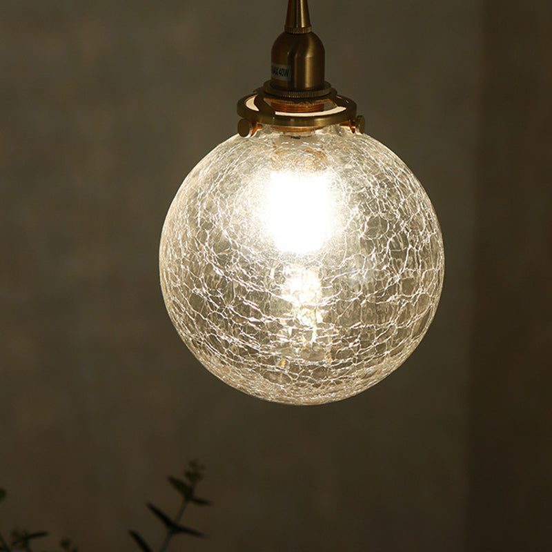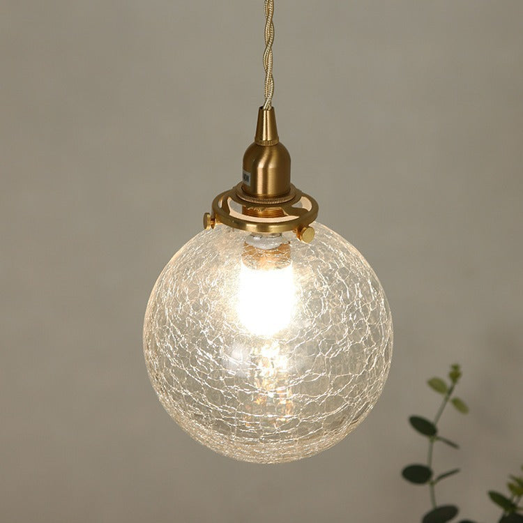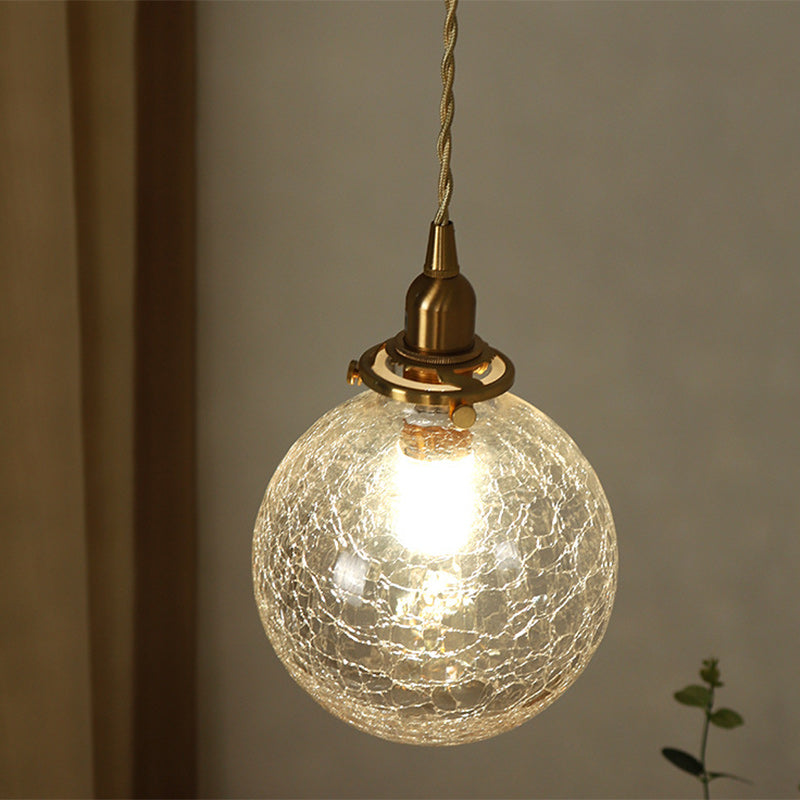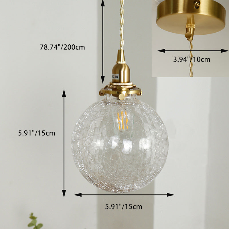 Traditional Japanese Globe Copper Glass 1-Light Pendant Light For Living Room