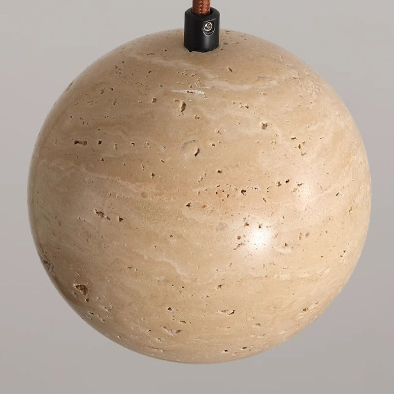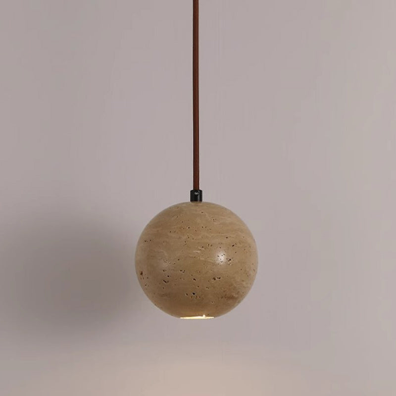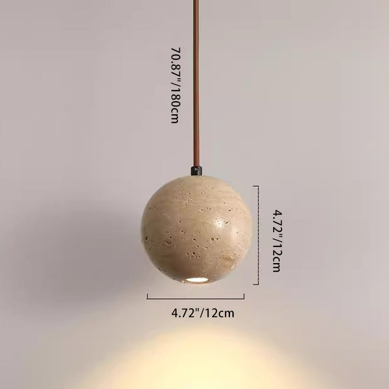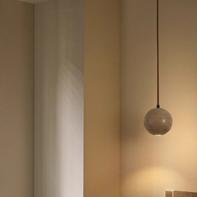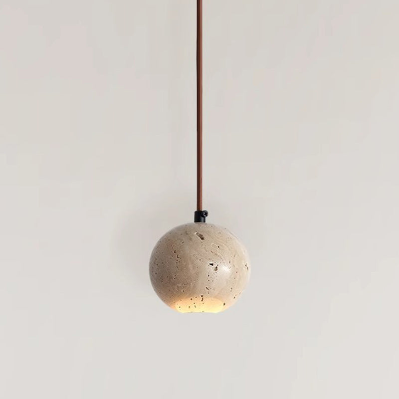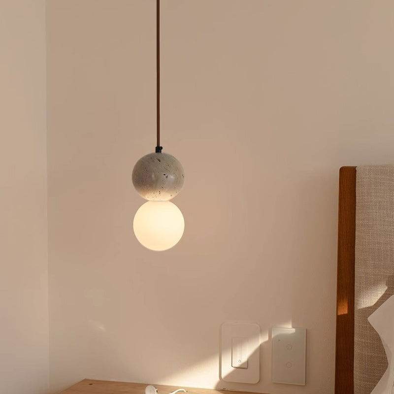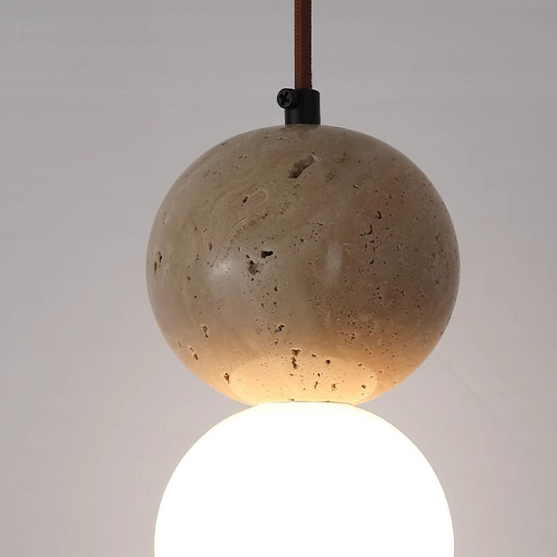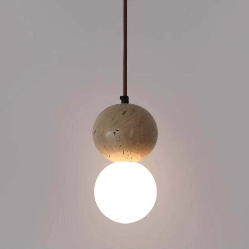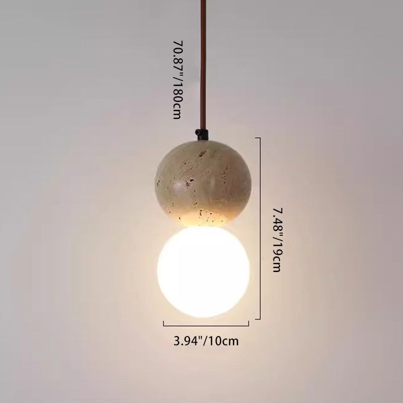 Traditional Japanese Globe Stone Wood Glass 1-Light Pendant Light For Living Room