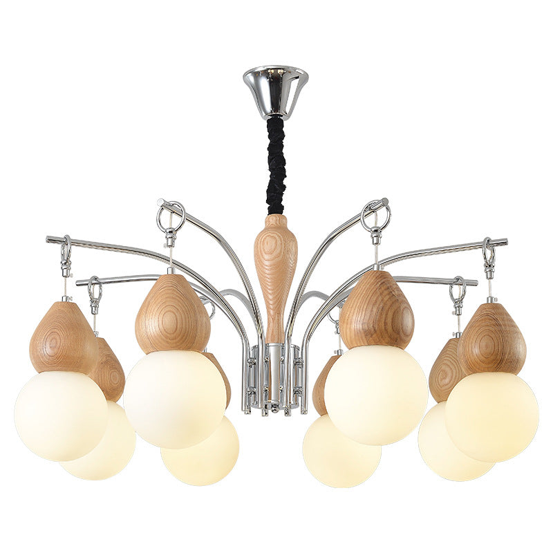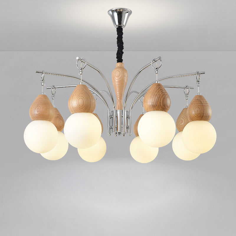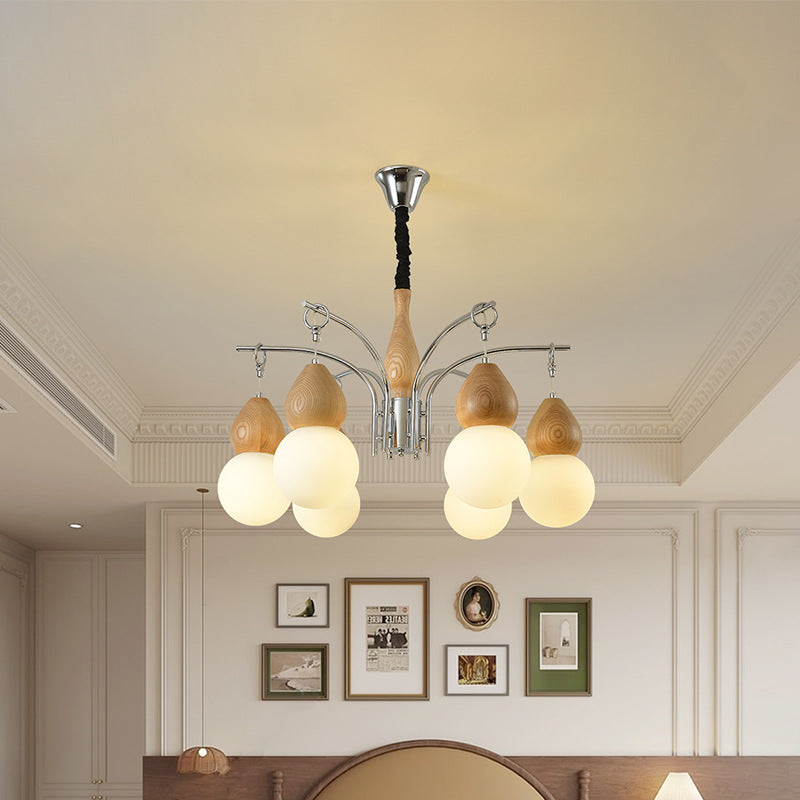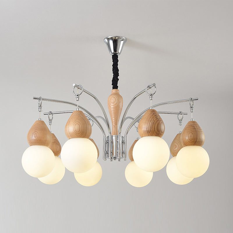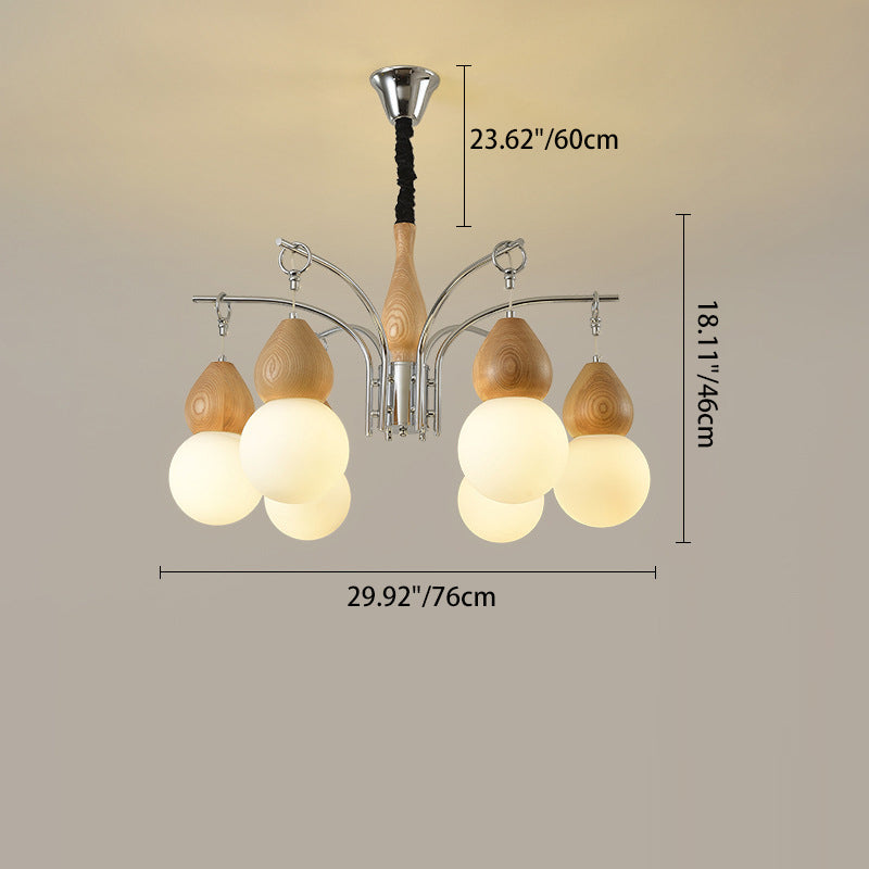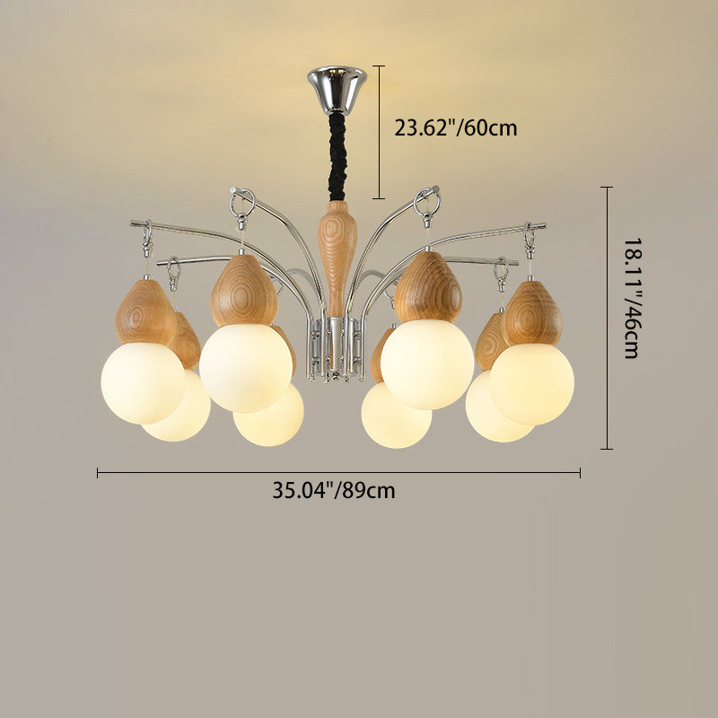 Traditional Japanese Glass Iron & Wood Gourd Sputnik 6/8-Light Chandelier For Living Room